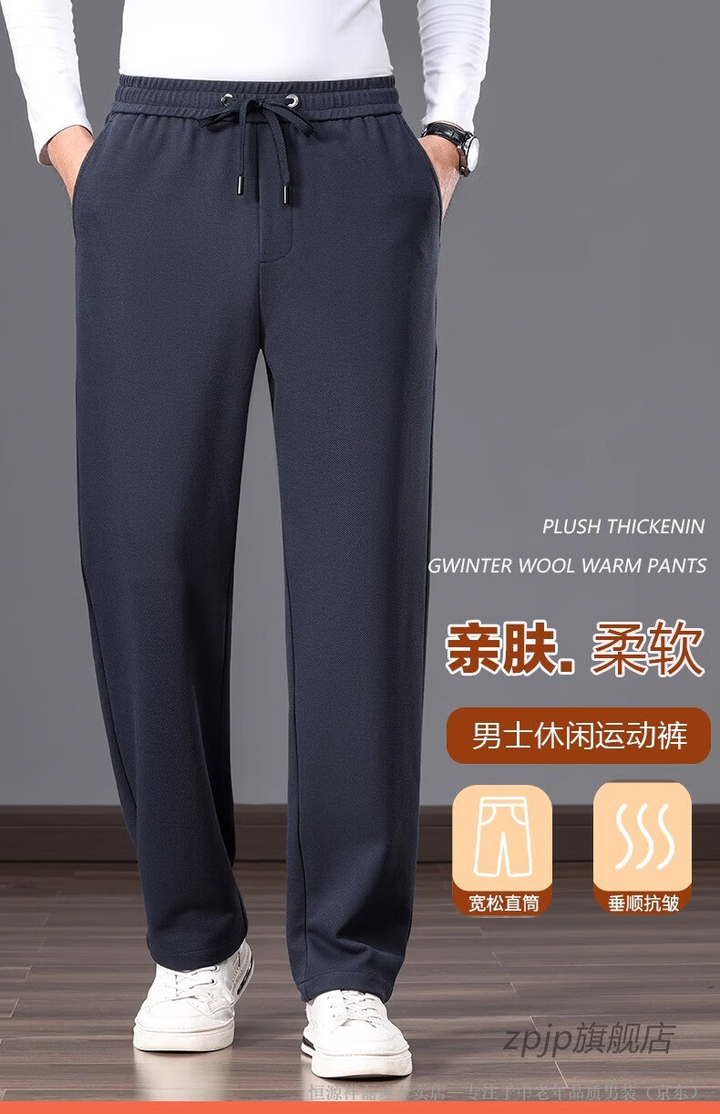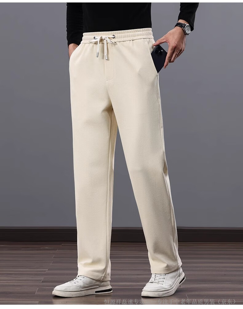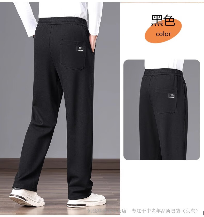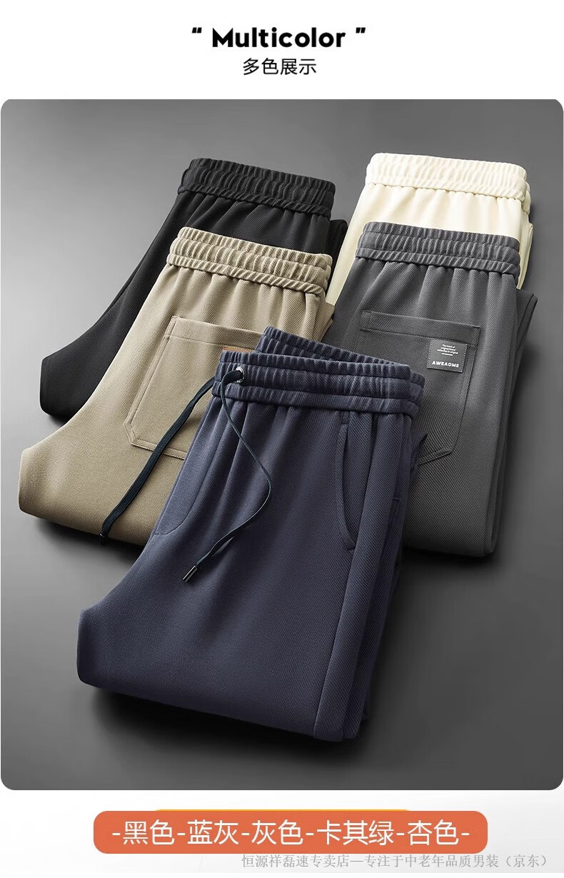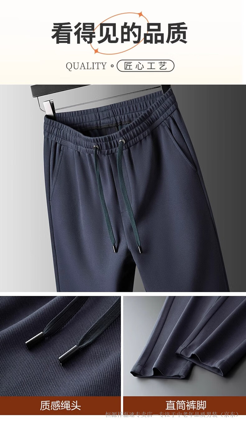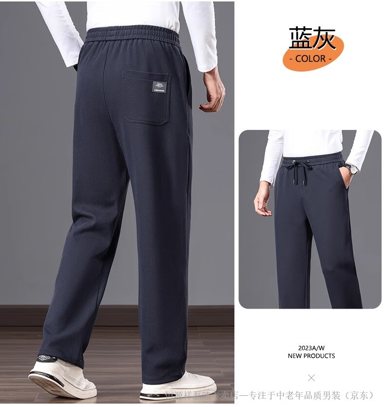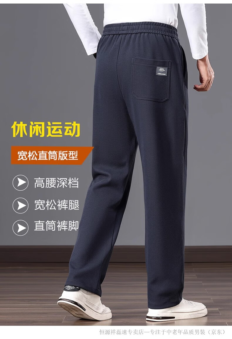 Hengyuanxiang middle-aged dad's new men's sports pants loose straight sweatpants men's casual pants elastic waist pants autumn and winter men's pants pure cotton spring and autumn blue M 105-120Jin Jin equals 0.5 kg