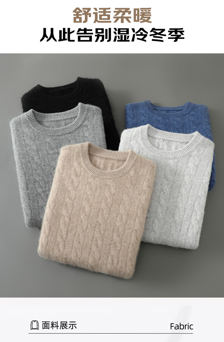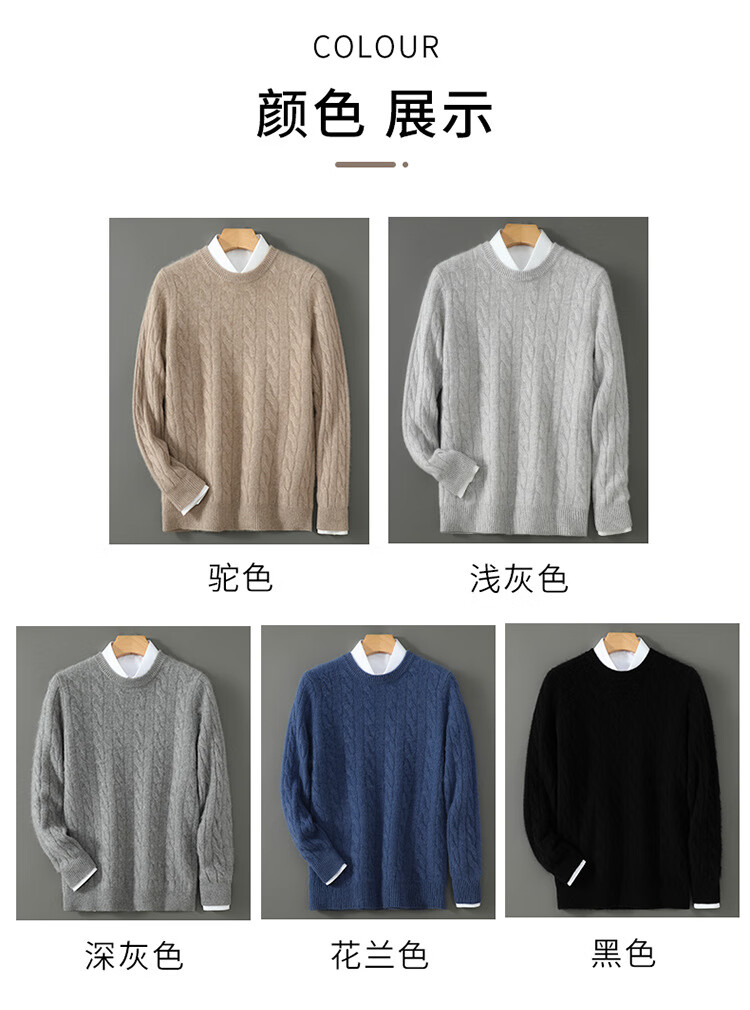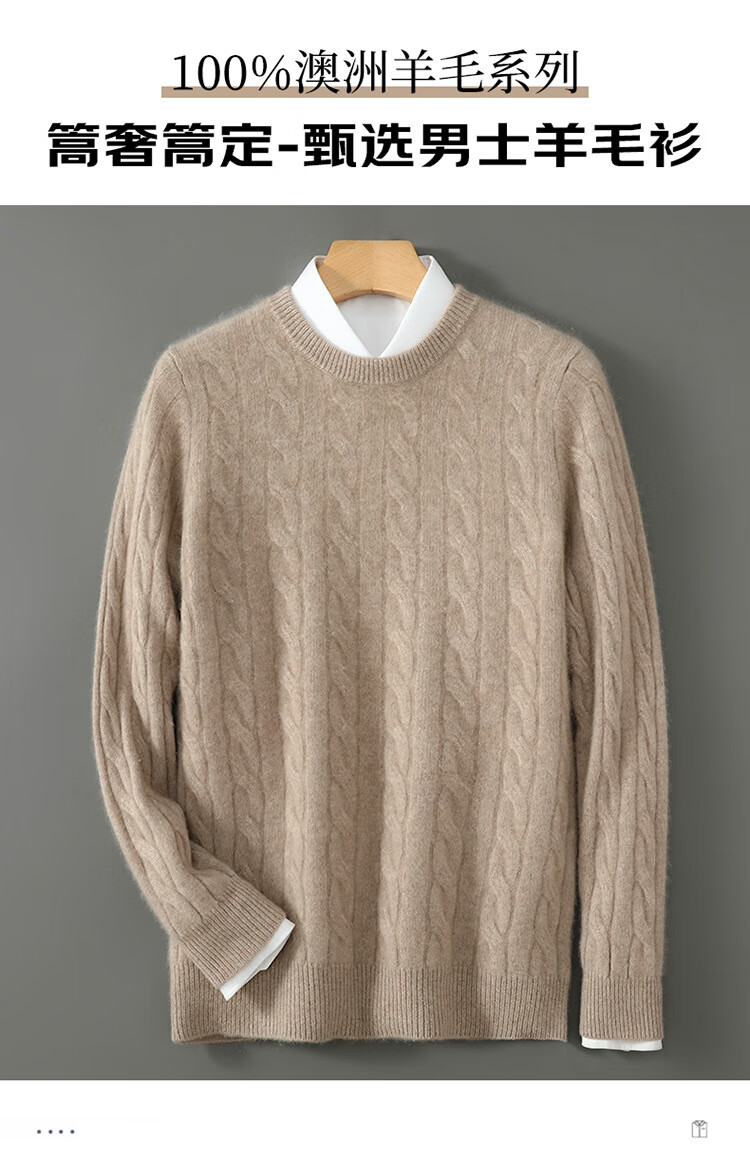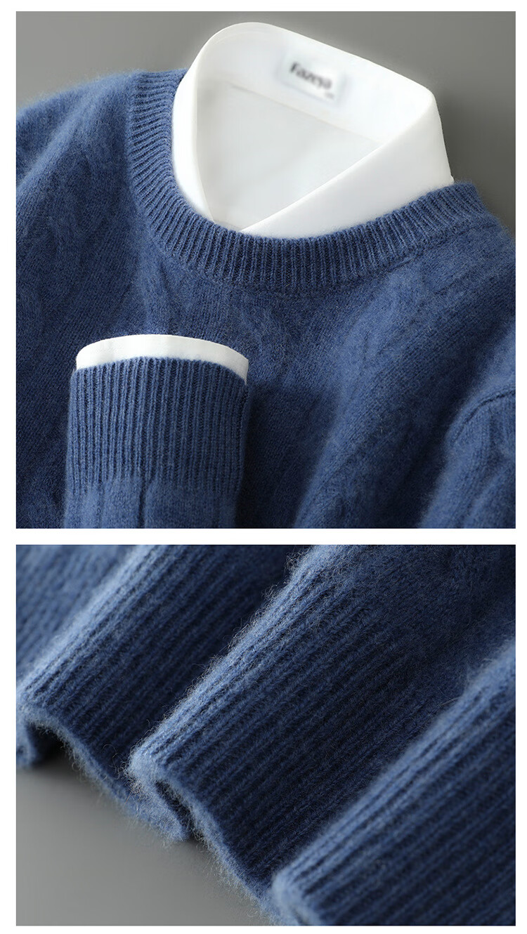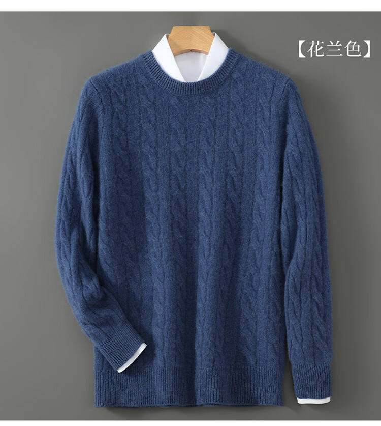 ROMON double-strand seven-needle thickened 100% pure wool sweater men's jacquard round neck autumn and winter loose bottoming sweater sweater floral blue L