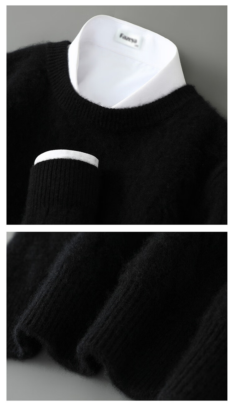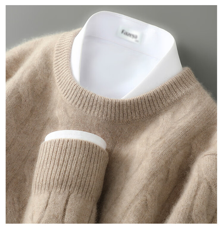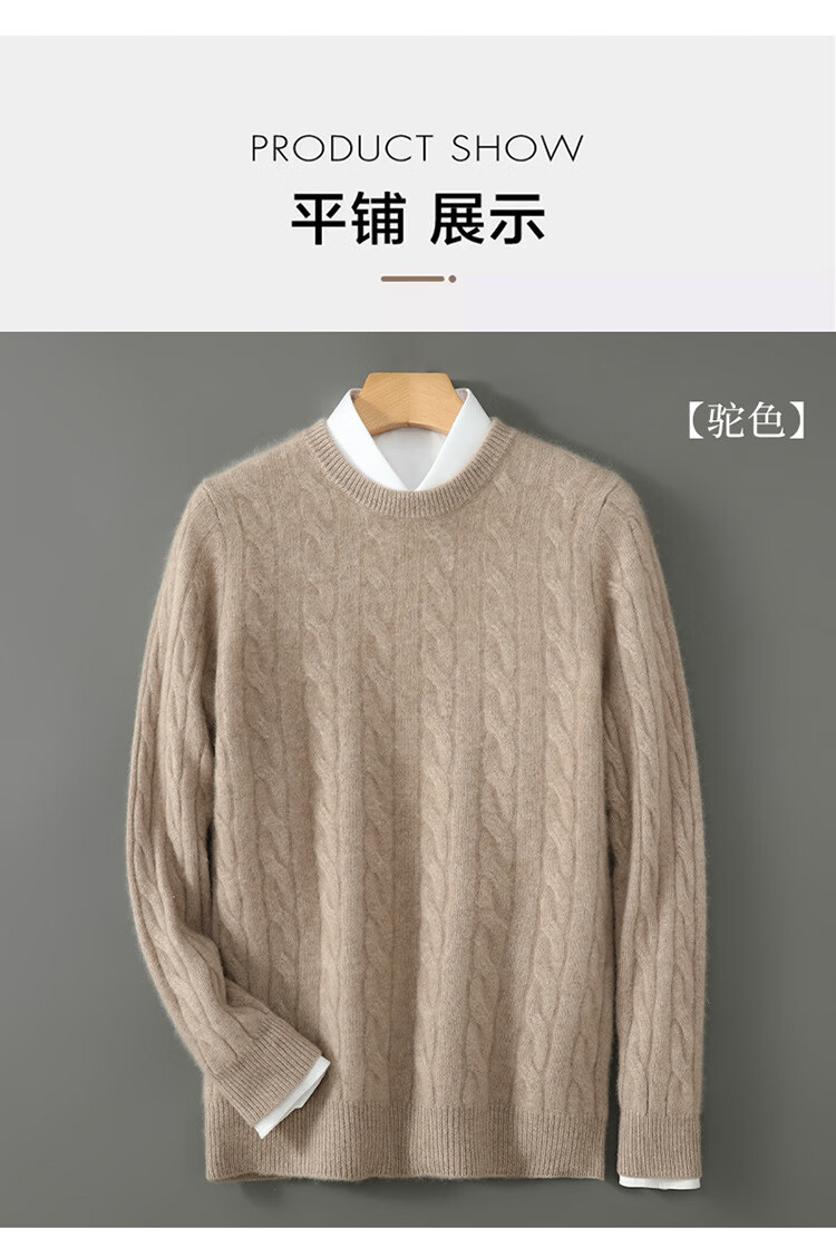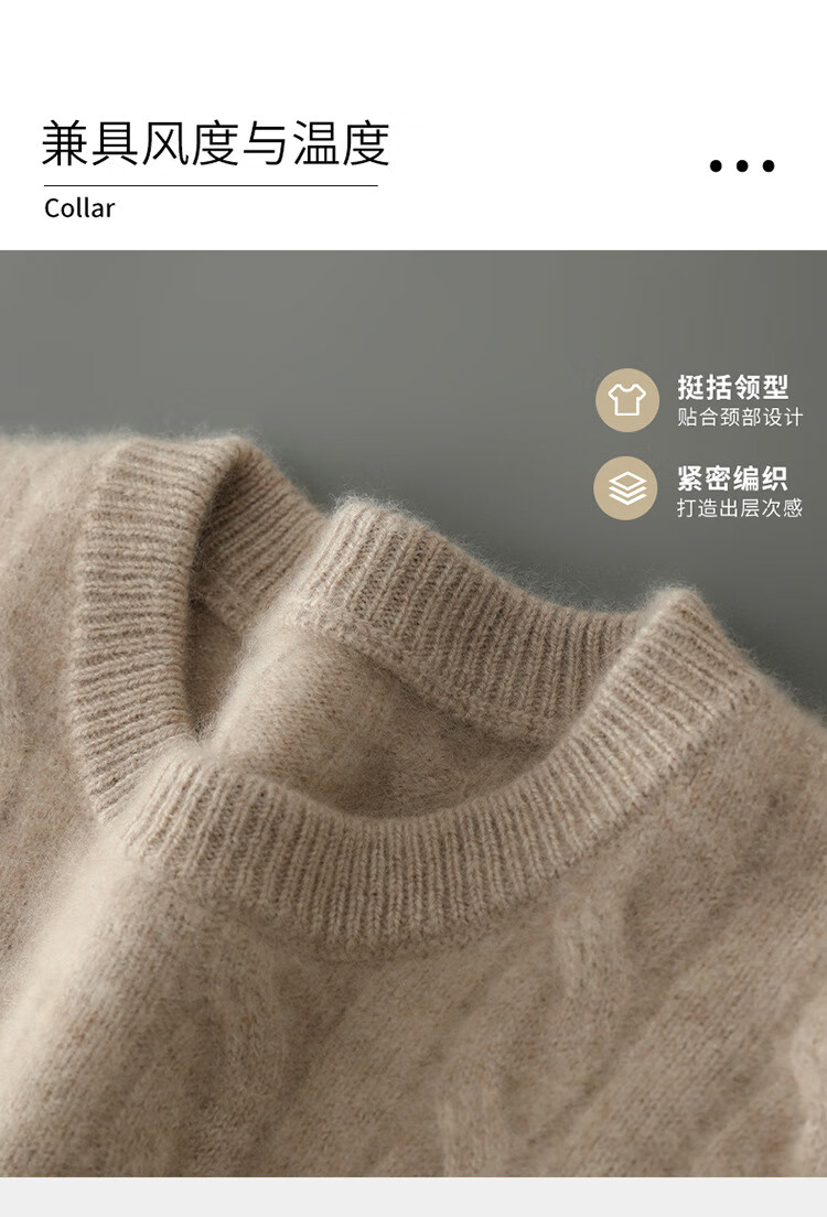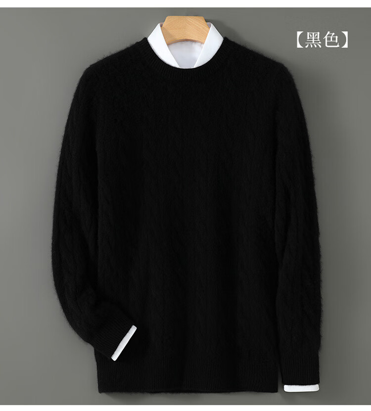 ROMON double-strand seven-needle thickened 100% pure wool sweater men's jacquard round neck autumn and winter loose bottoming sweater sweater floral blue L