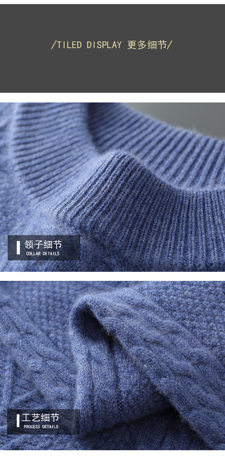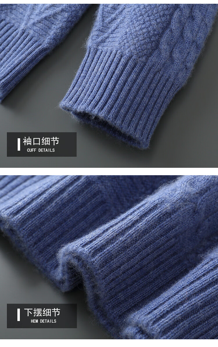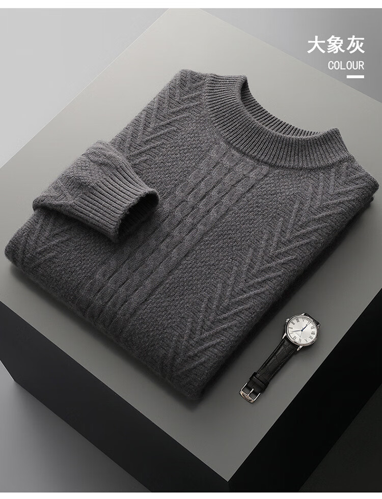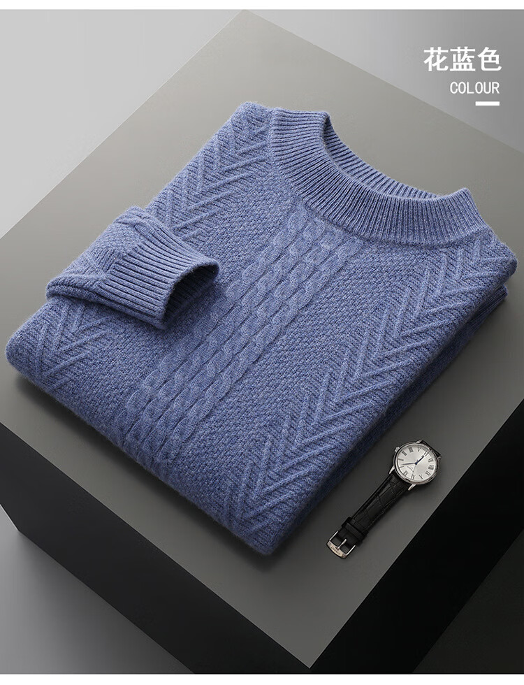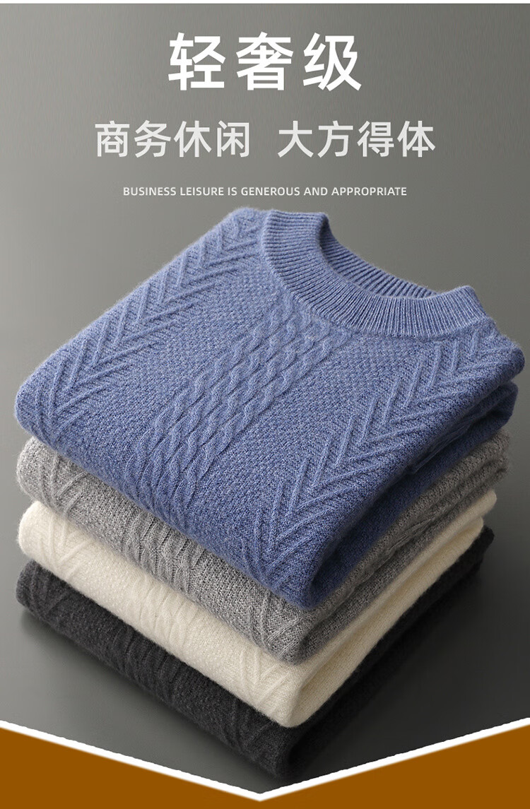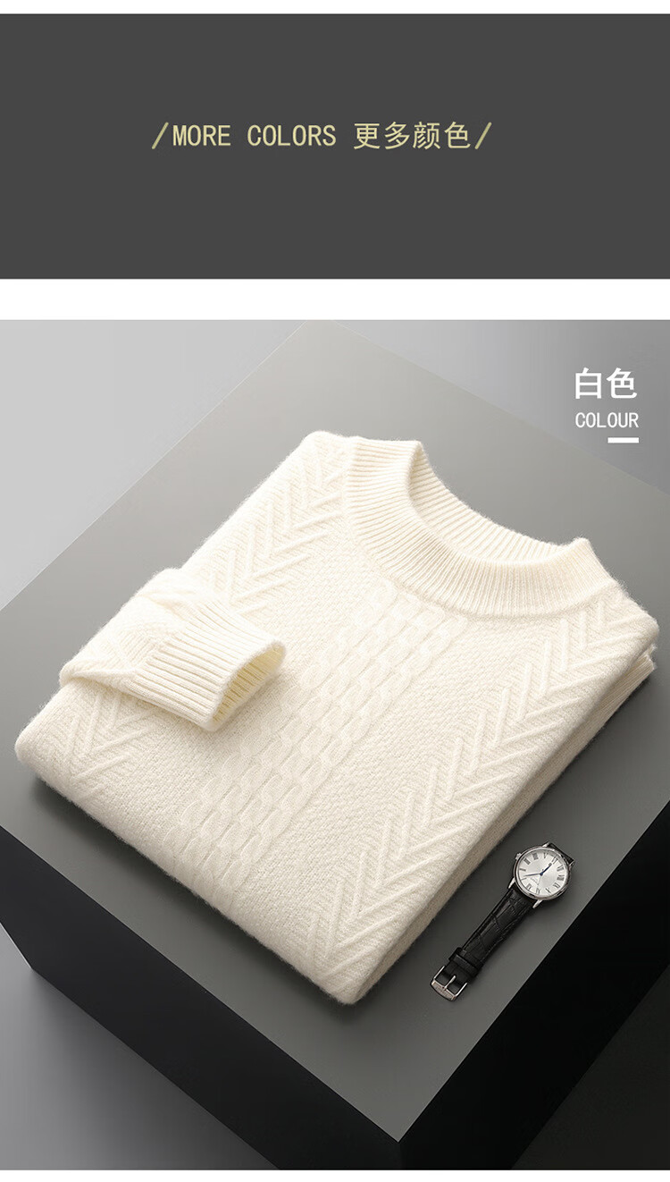 ROMON 100% pure wool sweater double-ply thickened men's round neck knitted sweater business casual pullover inner twisted pattern bottoming shirt white XL