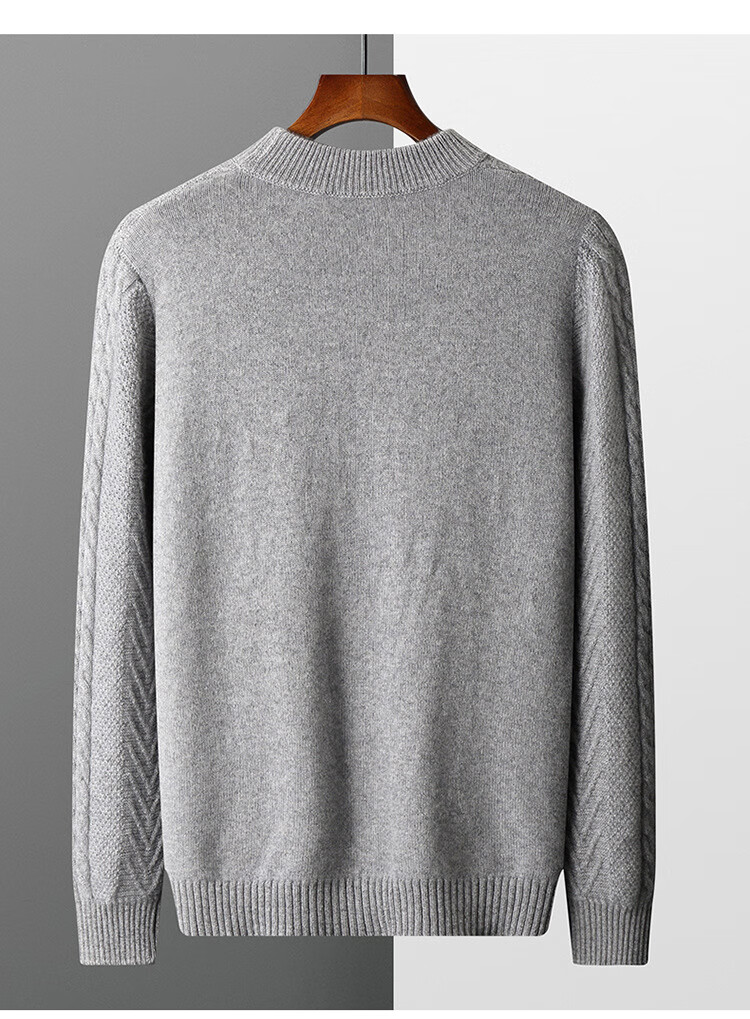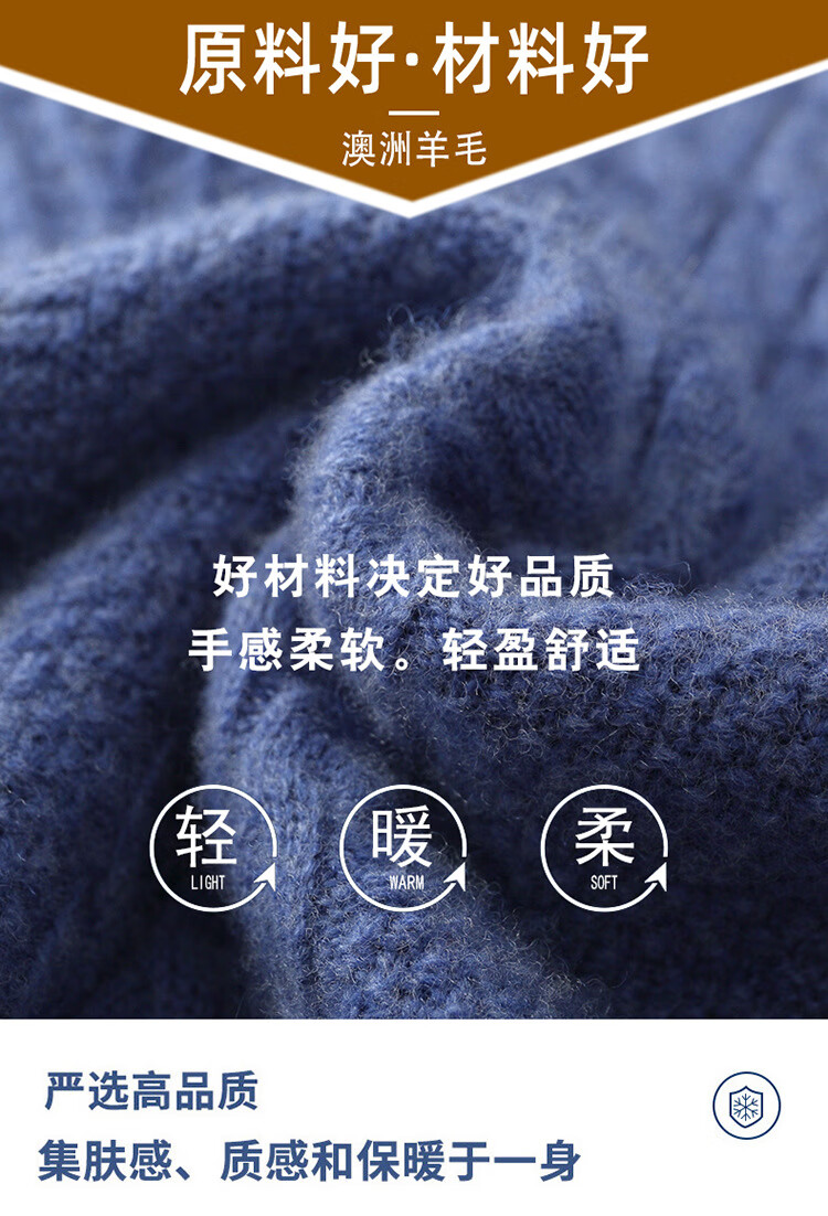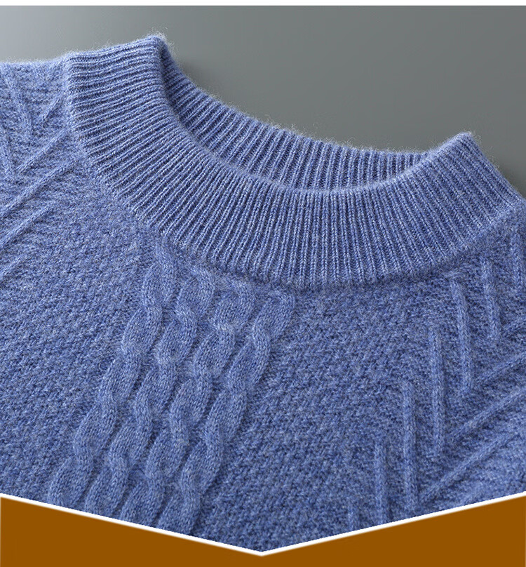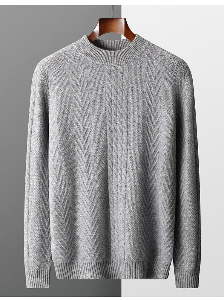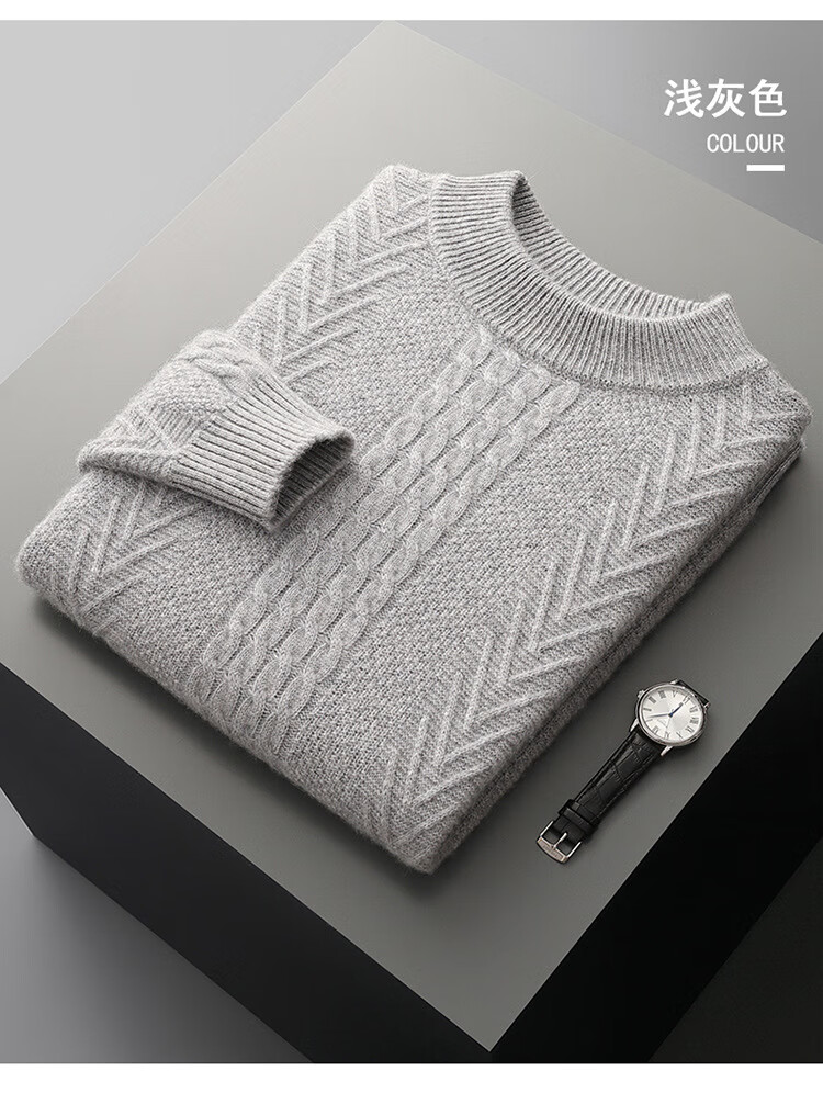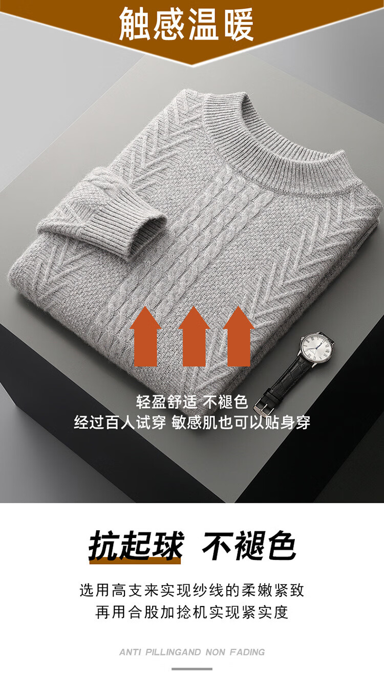 ROMON 100% pure wool sweater double-ply thickened men's round neck knitted sweater business casual pullover inner twisted pattern bottoming shirt white XL