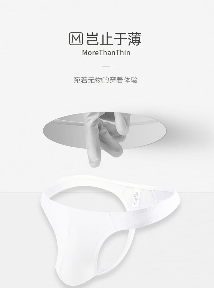Low-waisted buttocks men's GAY small 0-large thong ice silk white silky thin breathable sexy briefs white M
