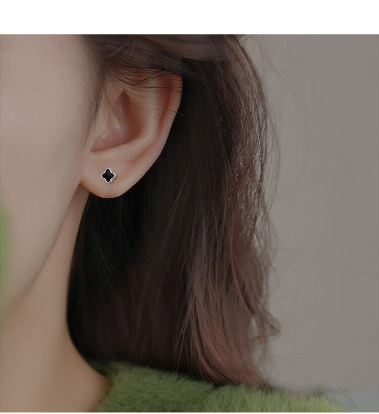 999 pure silver love four-leaf clover earrings, high-end and versatile sterling silver earrings, Chinese Valentine's Day gift for girlfriend, round earrings + brand gift box + certificate