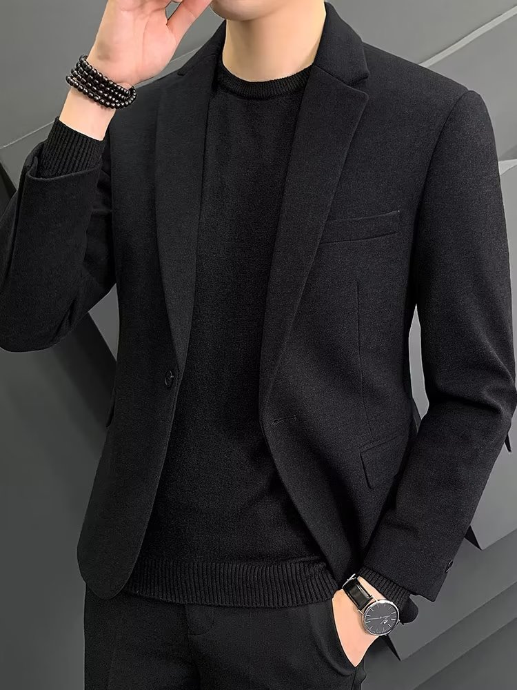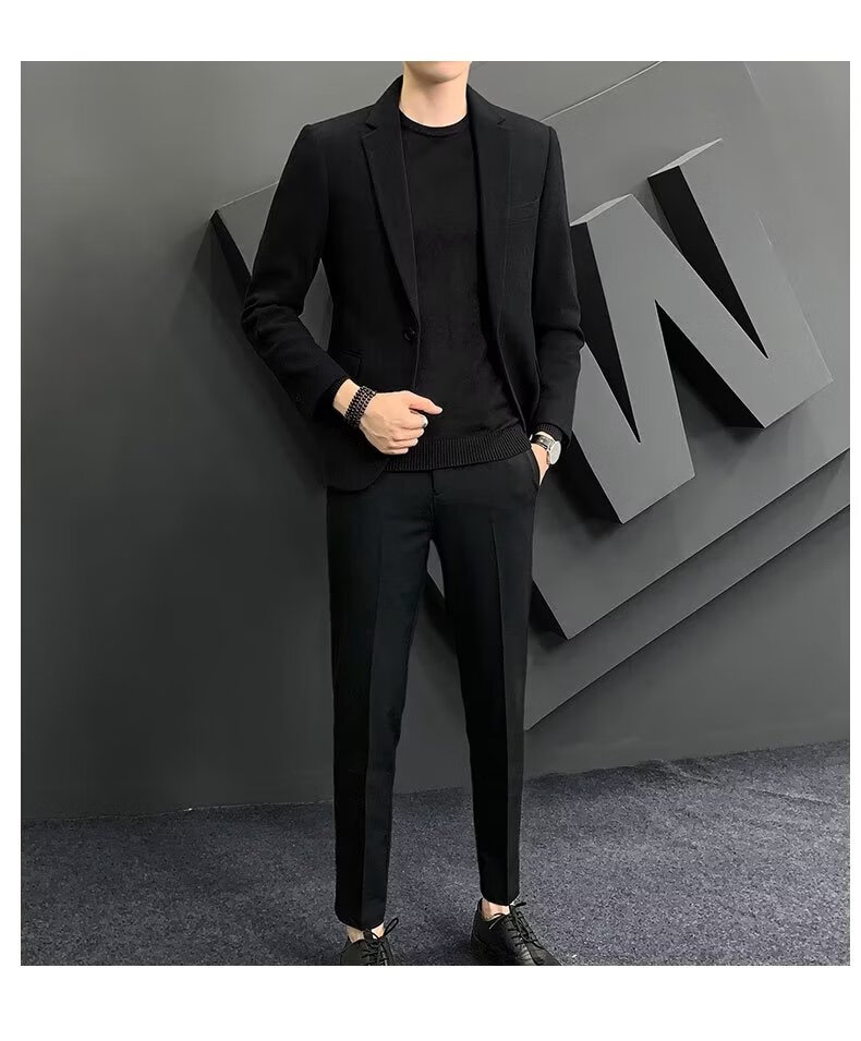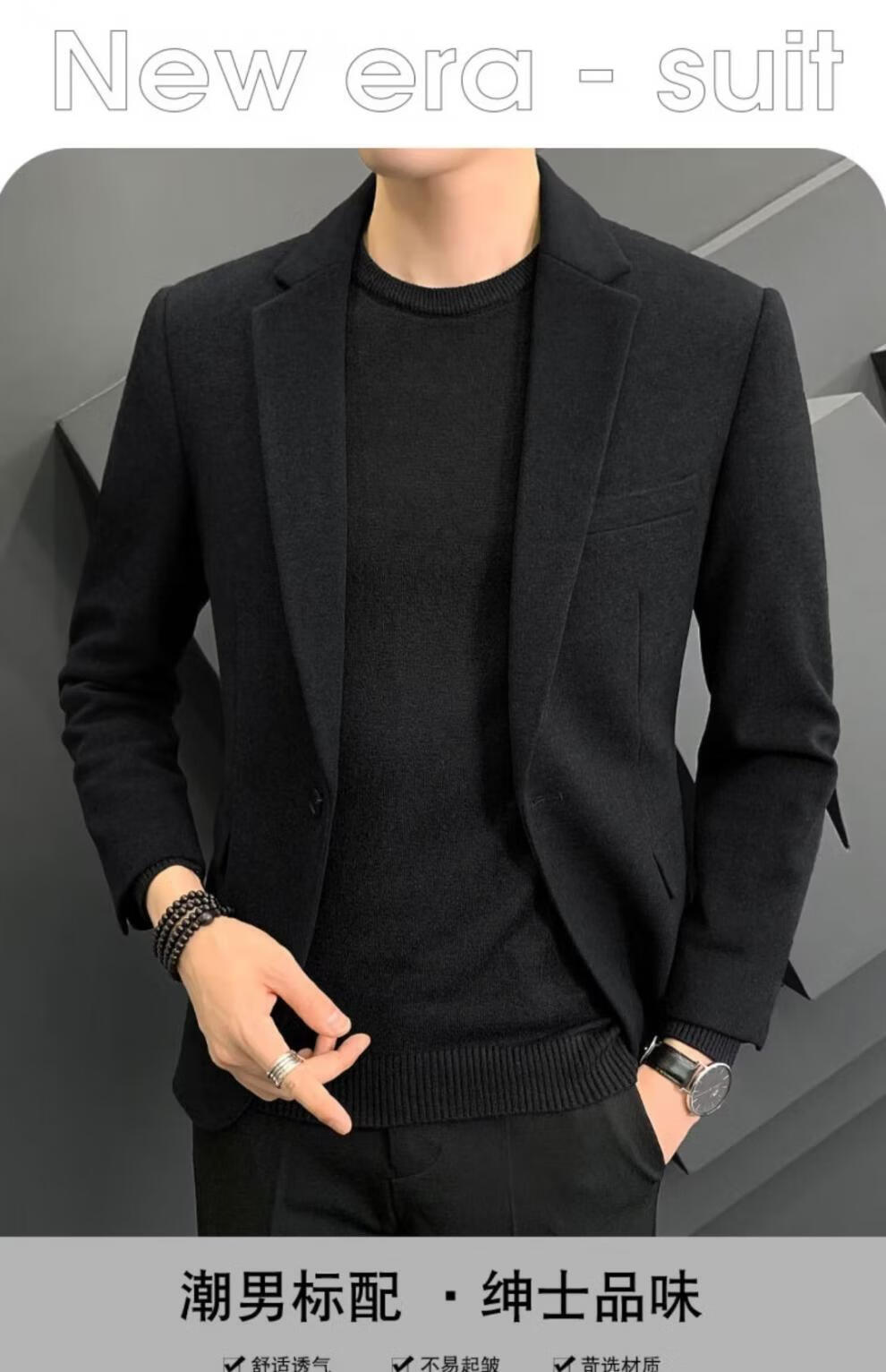Playboy (PLAYBOY) woolen suit men's winter retro light mature style gray suit two-piece thick high-quality business jacket top black two-piece suit thick suit + trousers S 90-105Jin Jin equals 0.5 kg