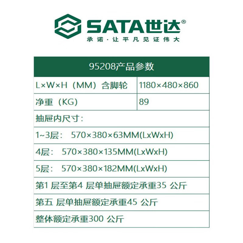 SATA Tools-Auto Maintenance and Auto Repair Five-Drawer Wheeled Tool Trolley 95208 SATA SATA Tools-Auto Maintenance and Auto Repair Five-Drawer Wheeled Tool Trolley