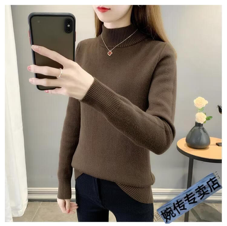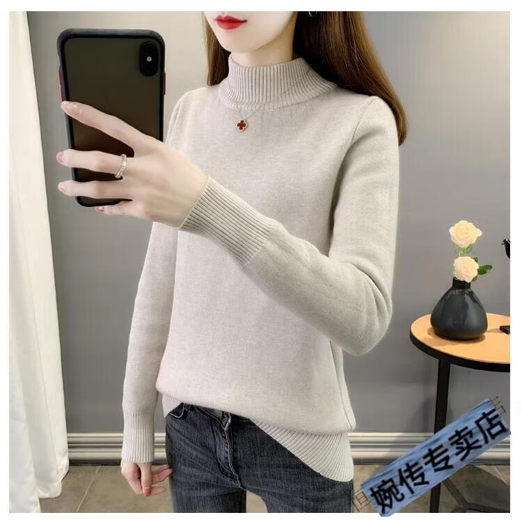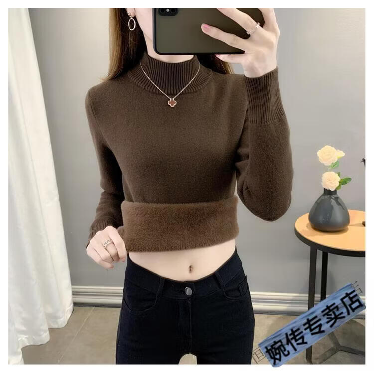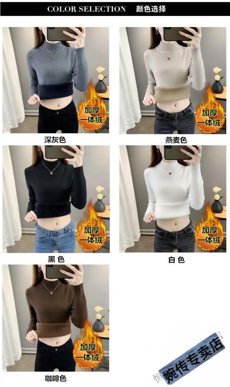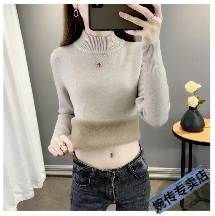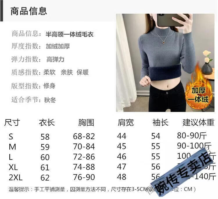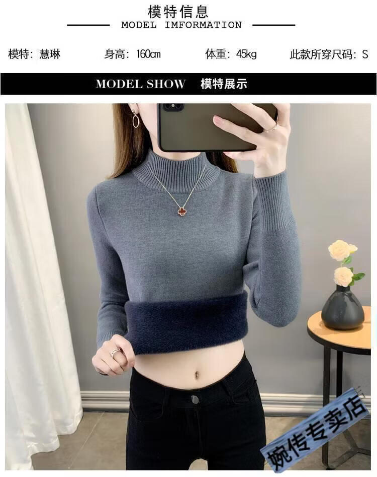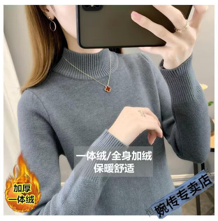 Woodpecker half turtleneck plus velvet sweater for women thickened one-piece velvet slim fit autumn and winter super thick mid-collar warm knitted bottoming sweater official flagship dark gray S 85-95Jin Jin is equal to 0.5 kg