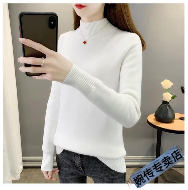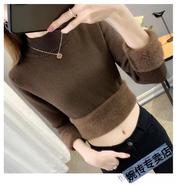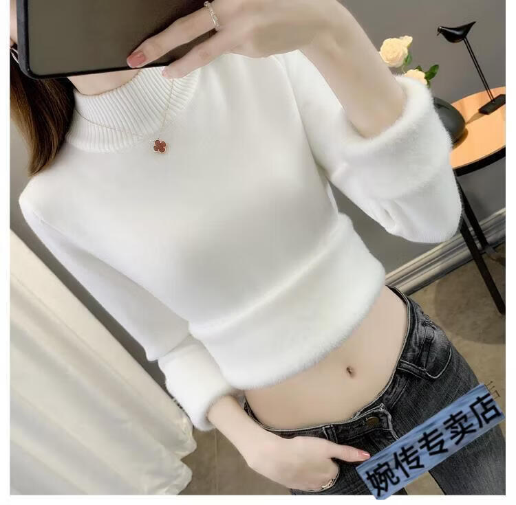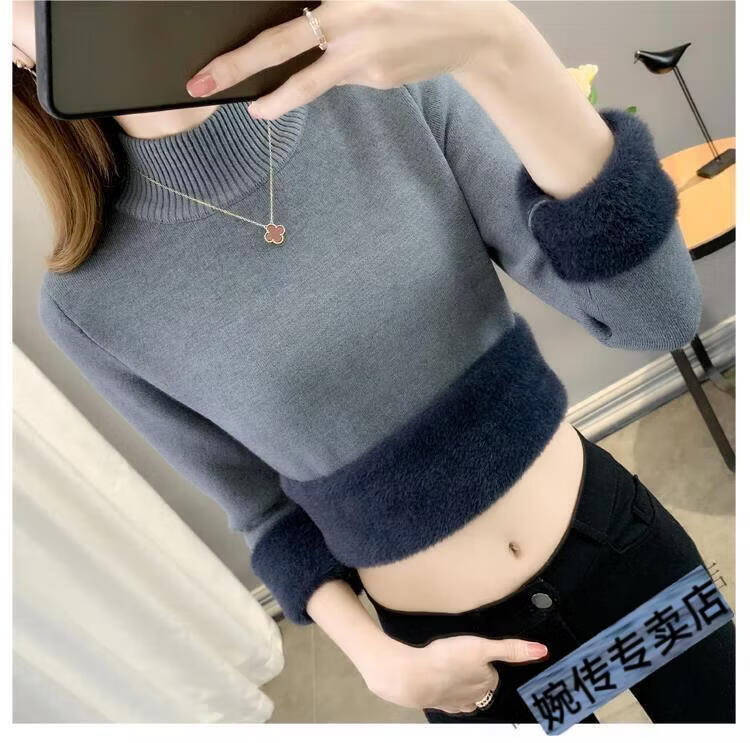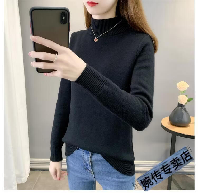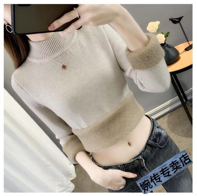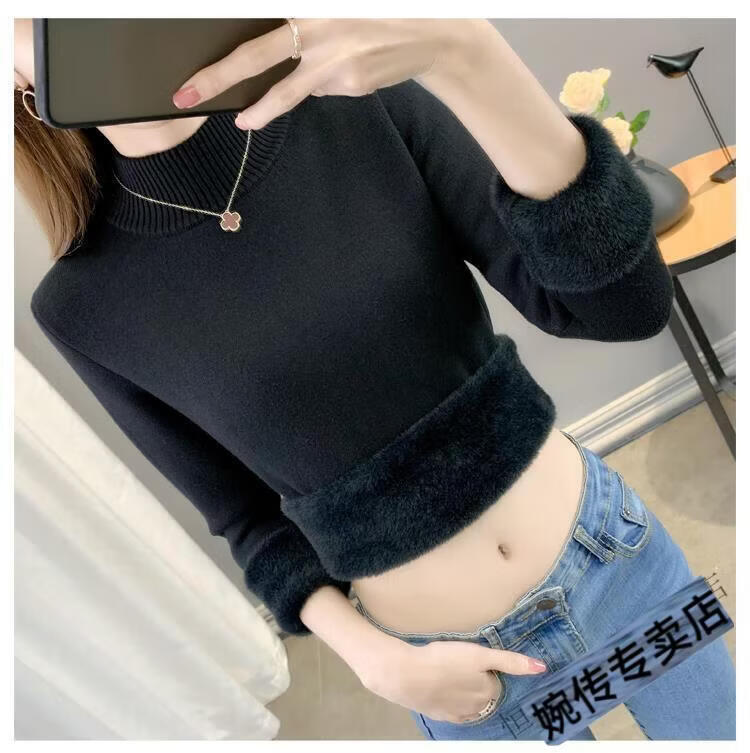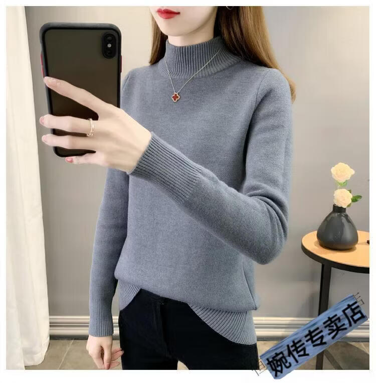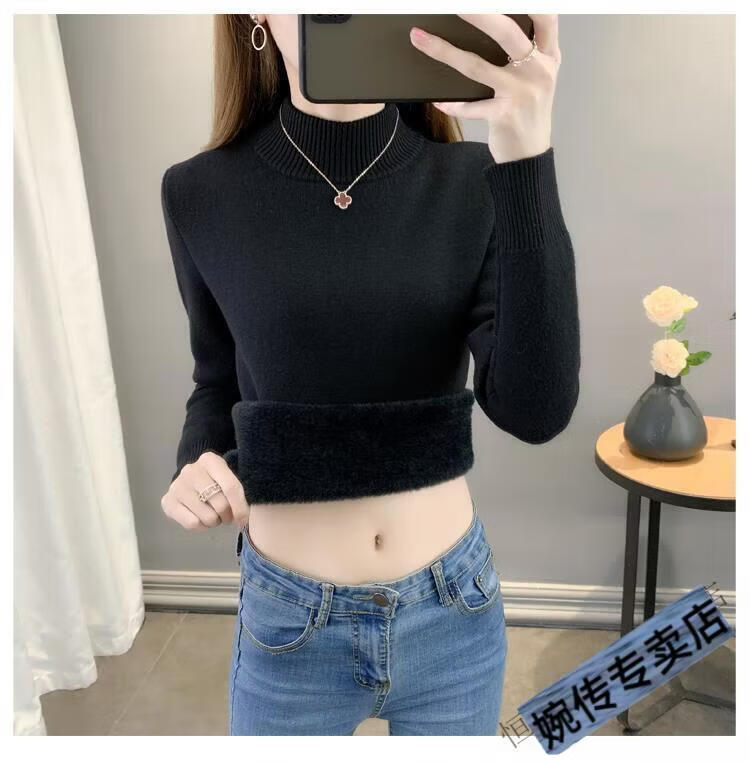Woodpecker half turtleneck plus velvet sweater for women thickened one-piece velvet slim fit autumn and winter super thick mid-collar warm knitted bottoming sweater official flagship dark gray S 85-95Jin Jin is equal to 0.5 kg