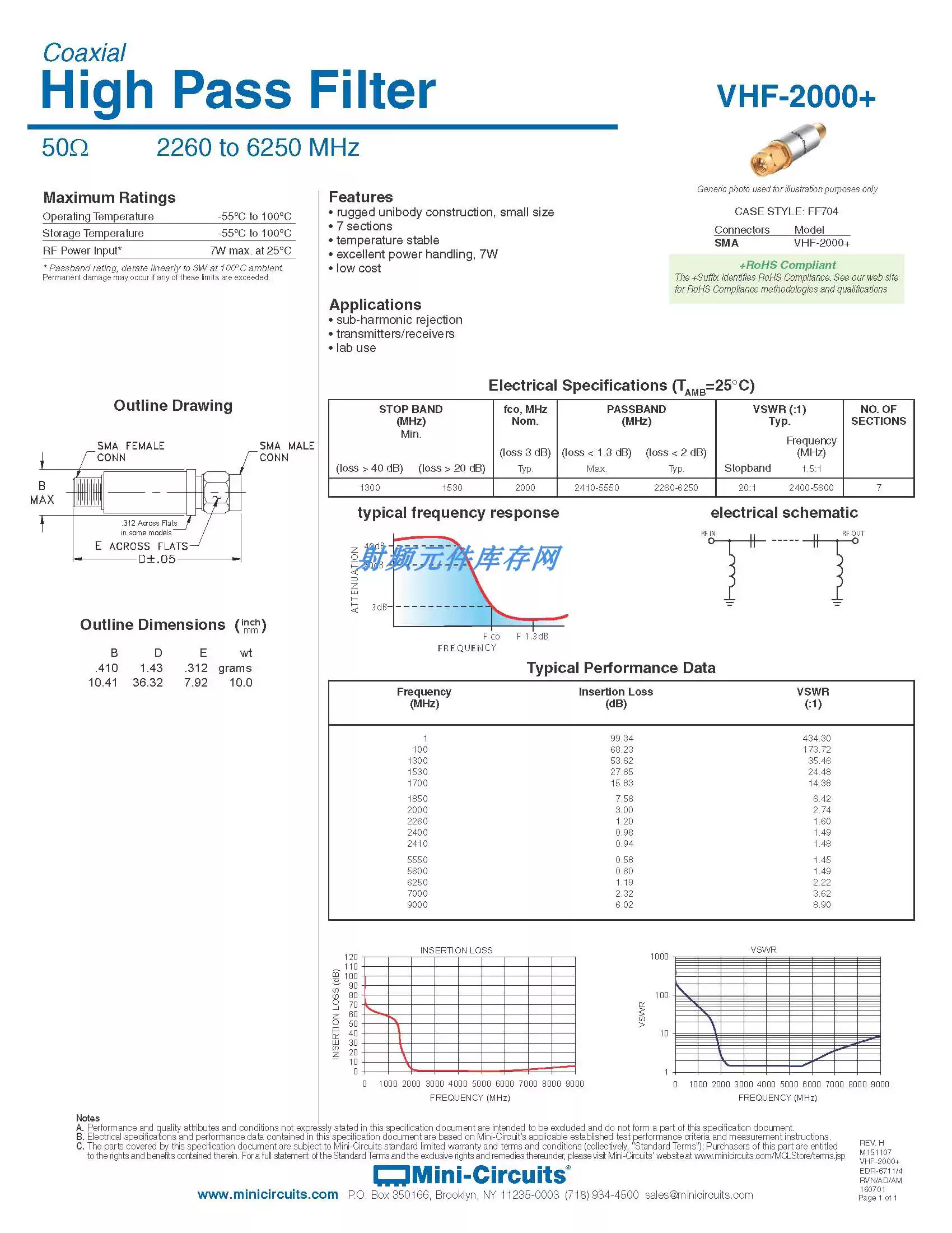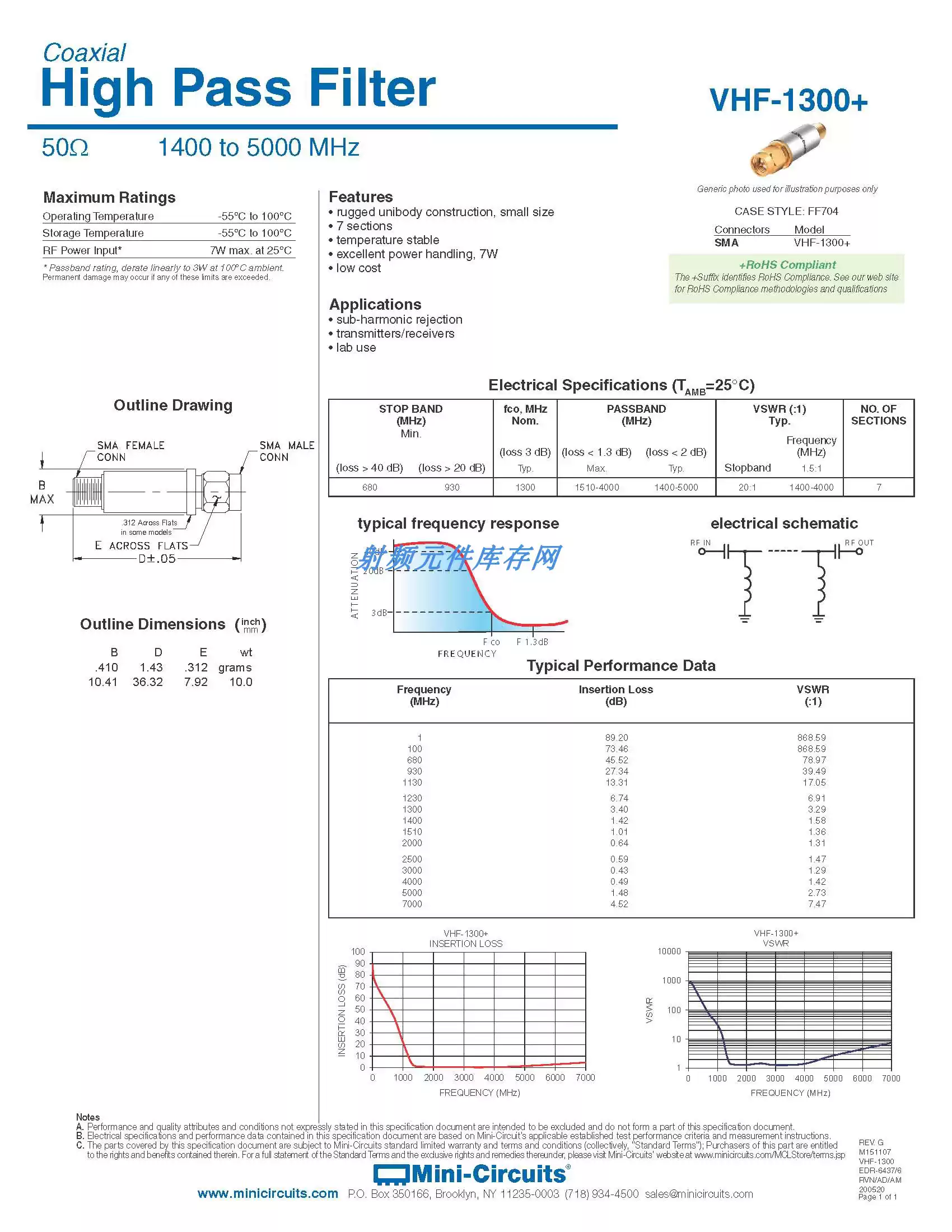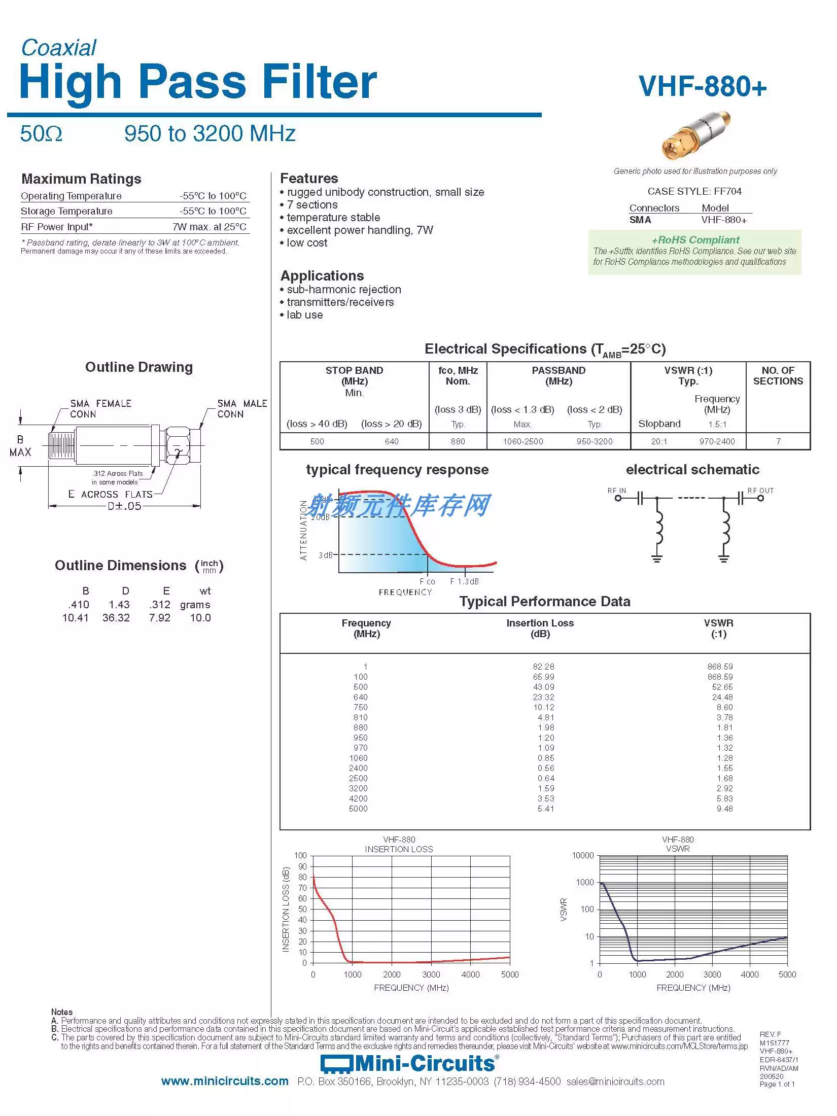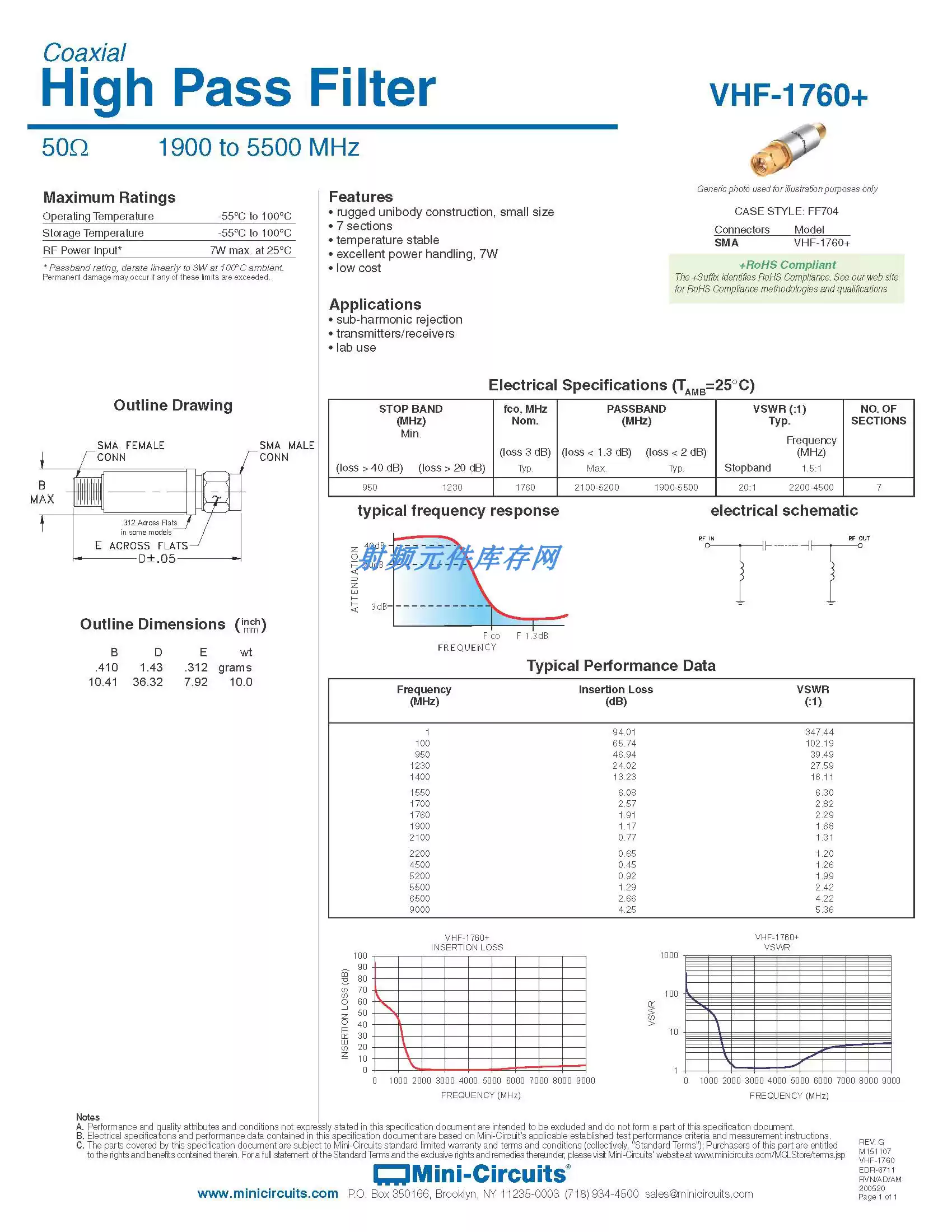 SMA高通滤波器VHF-145+440/650/740/880/1080/1200/1300/1320MHz VHF-2700+3000-5700MHz