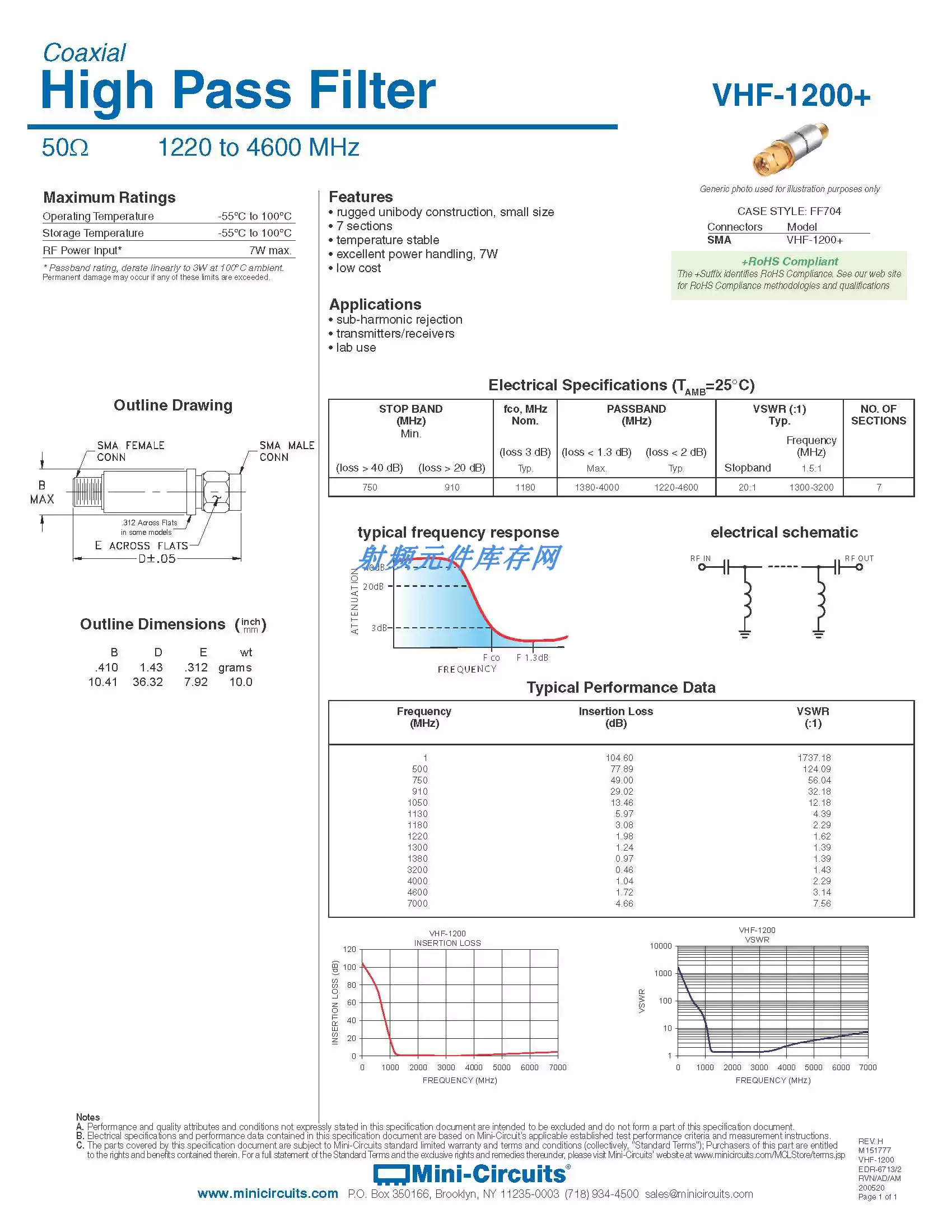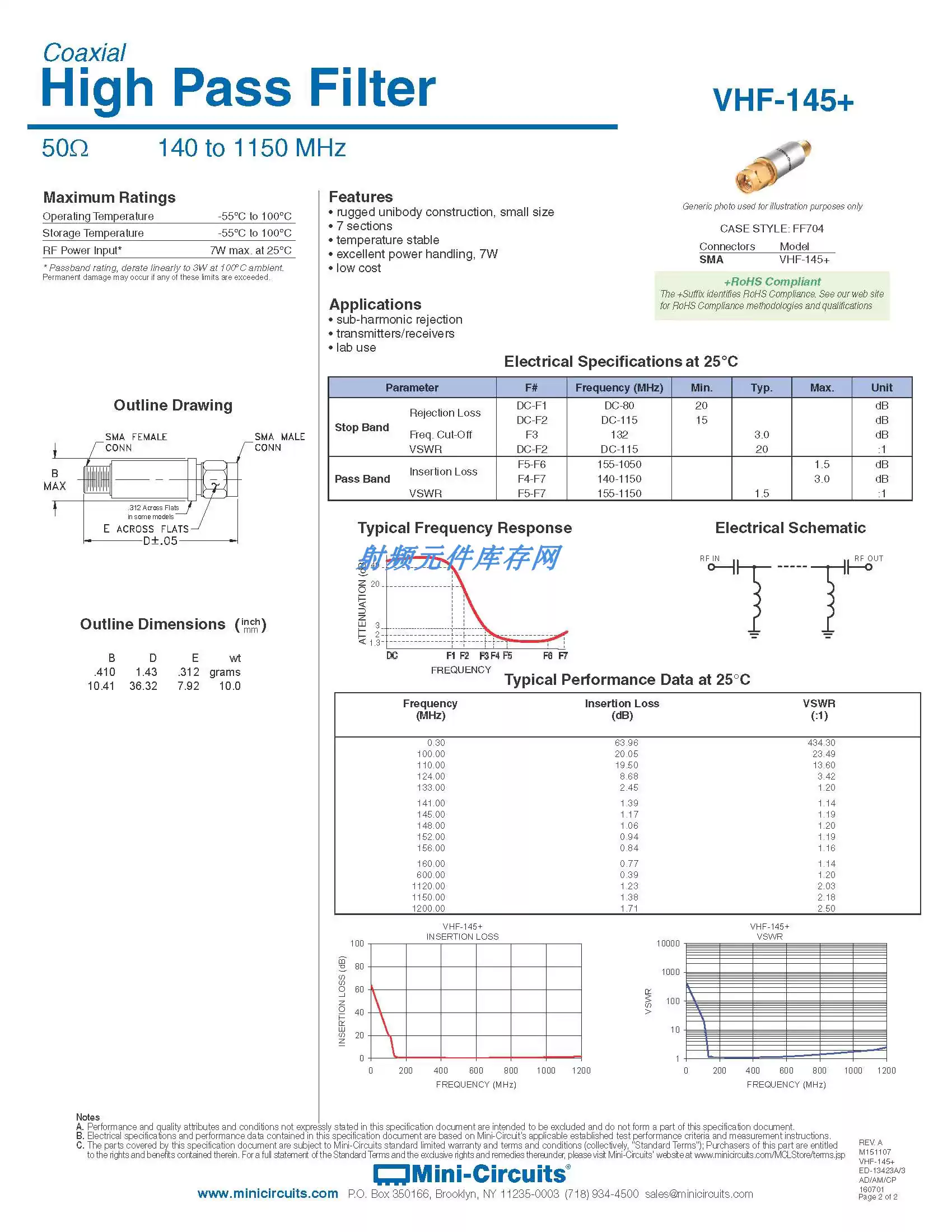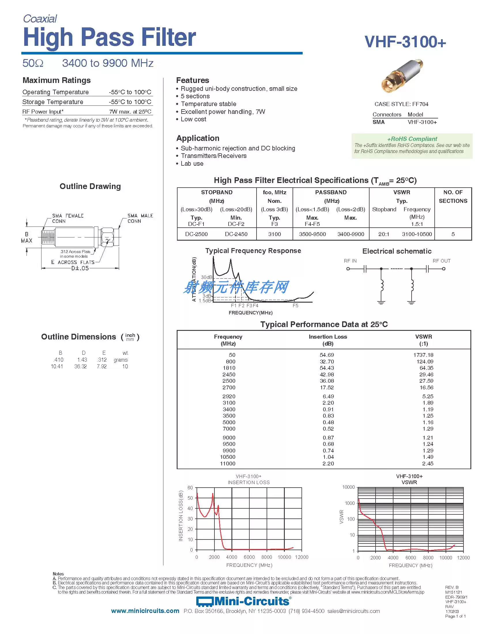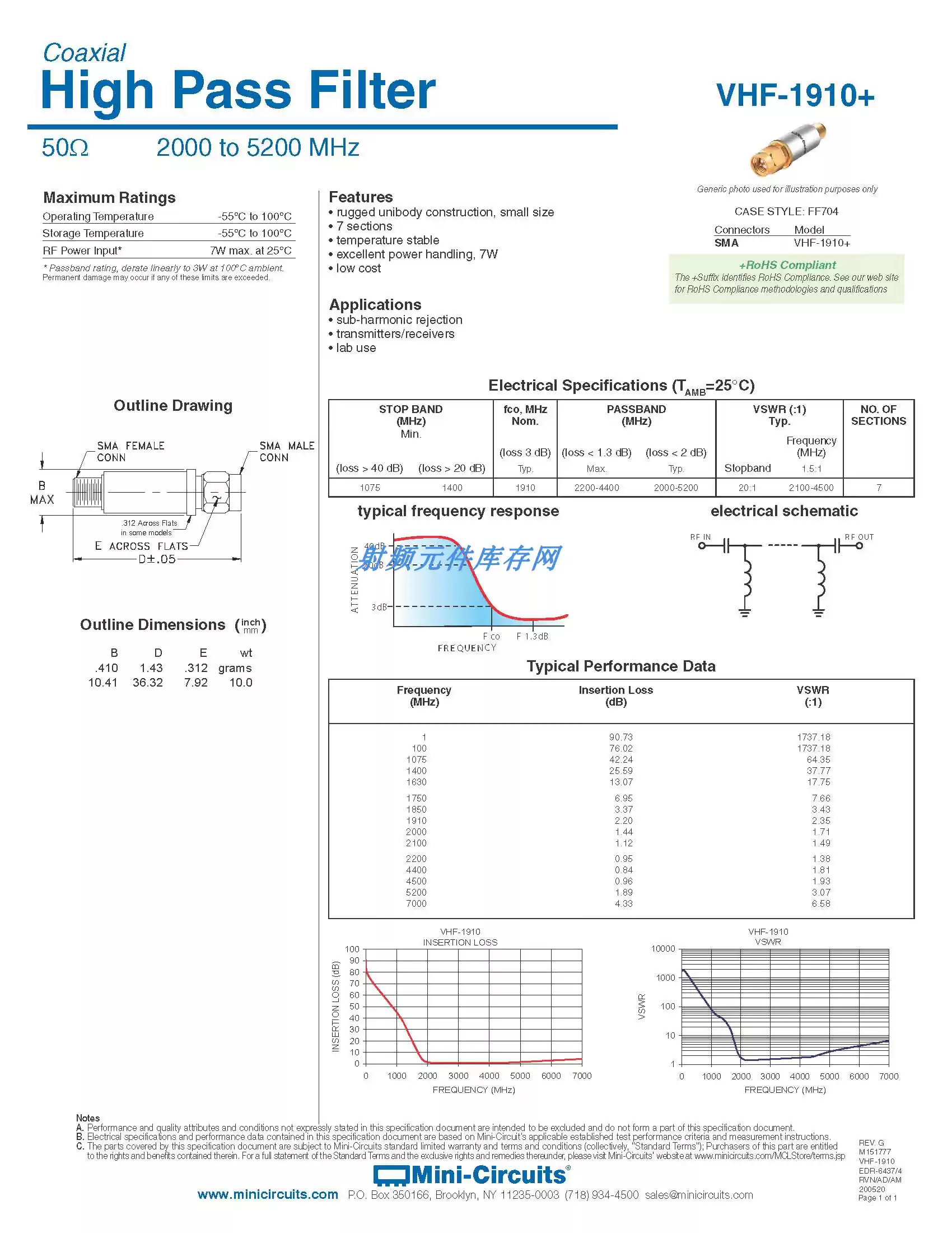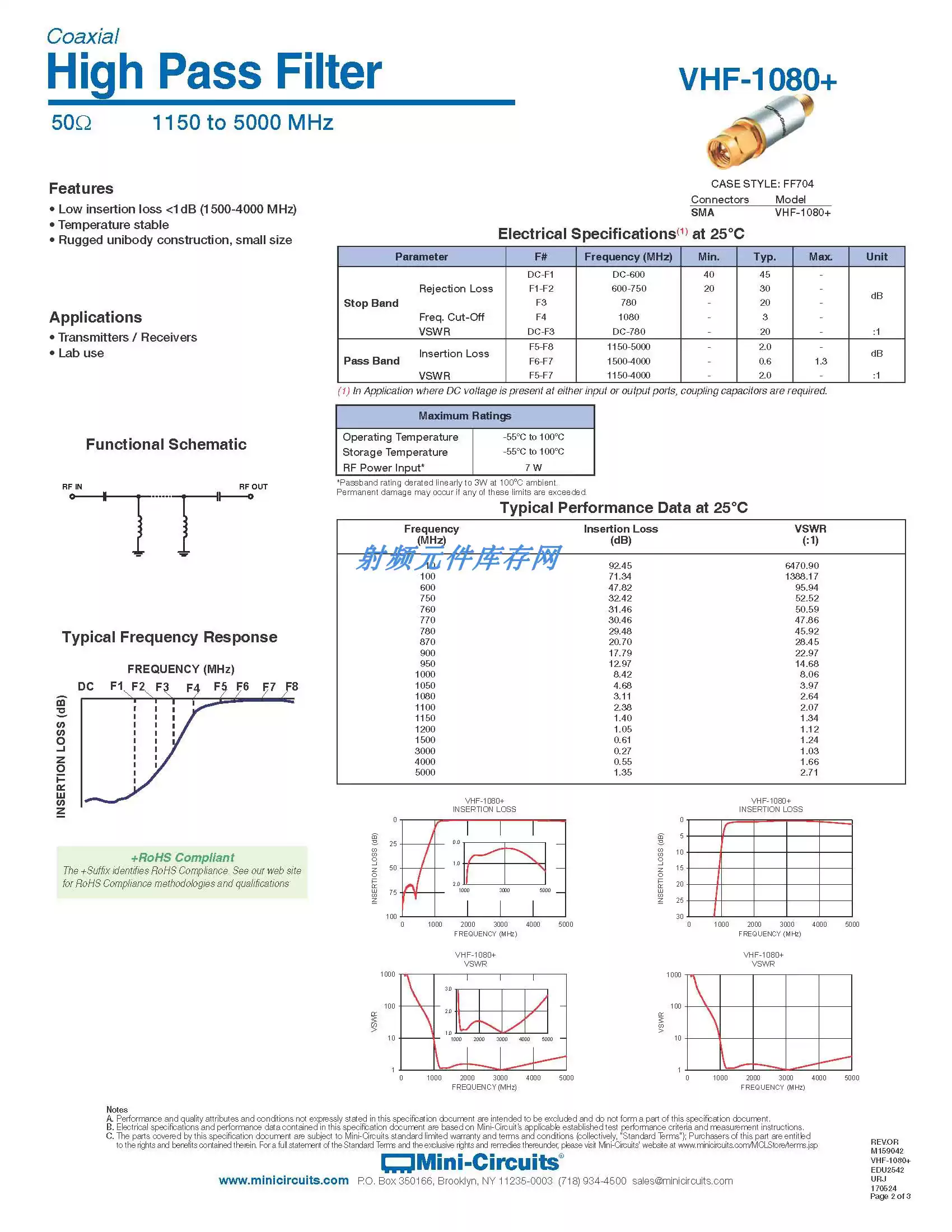 SMA高通滤波器VHF-145+440/650/740/880/1080/1200/1300/1320MHz VHF-2700+3000-5700MHz