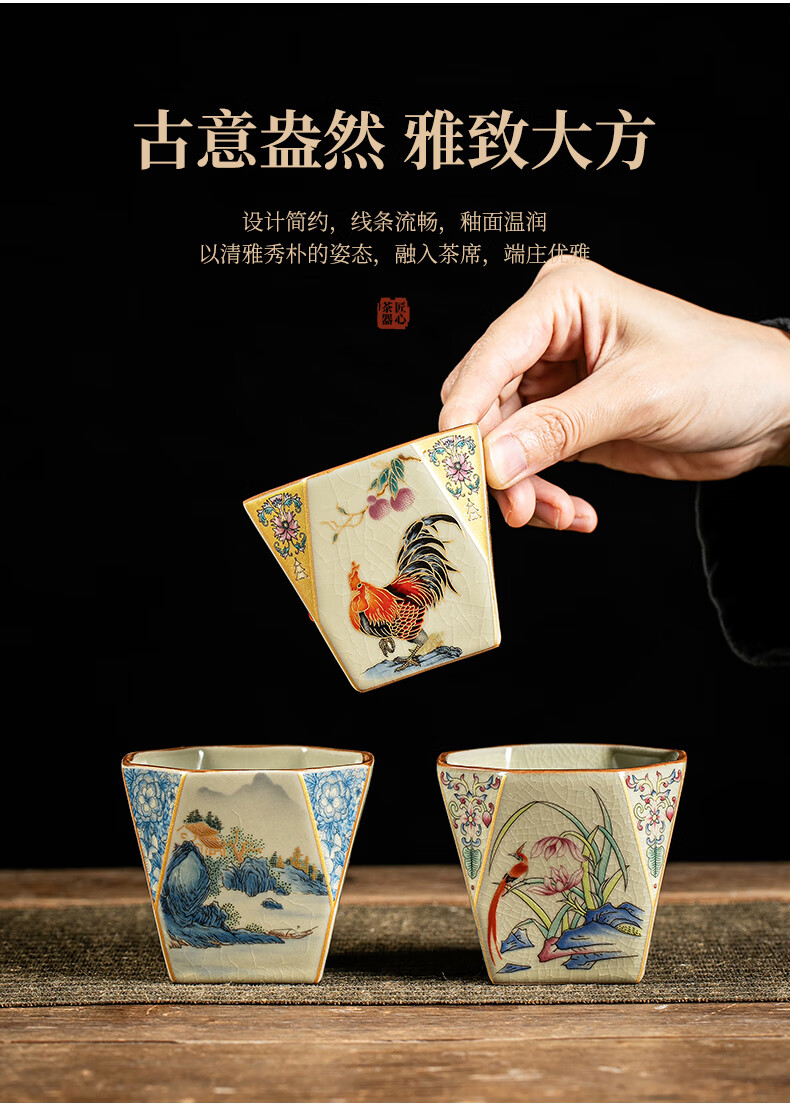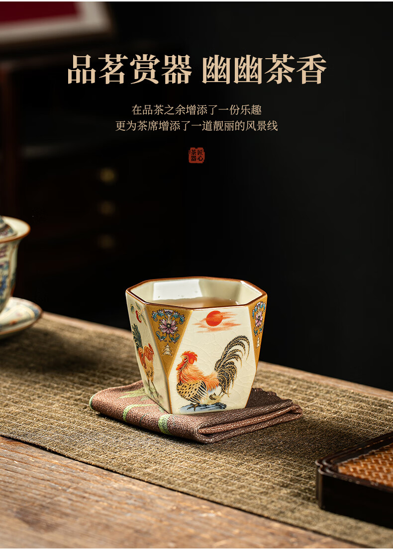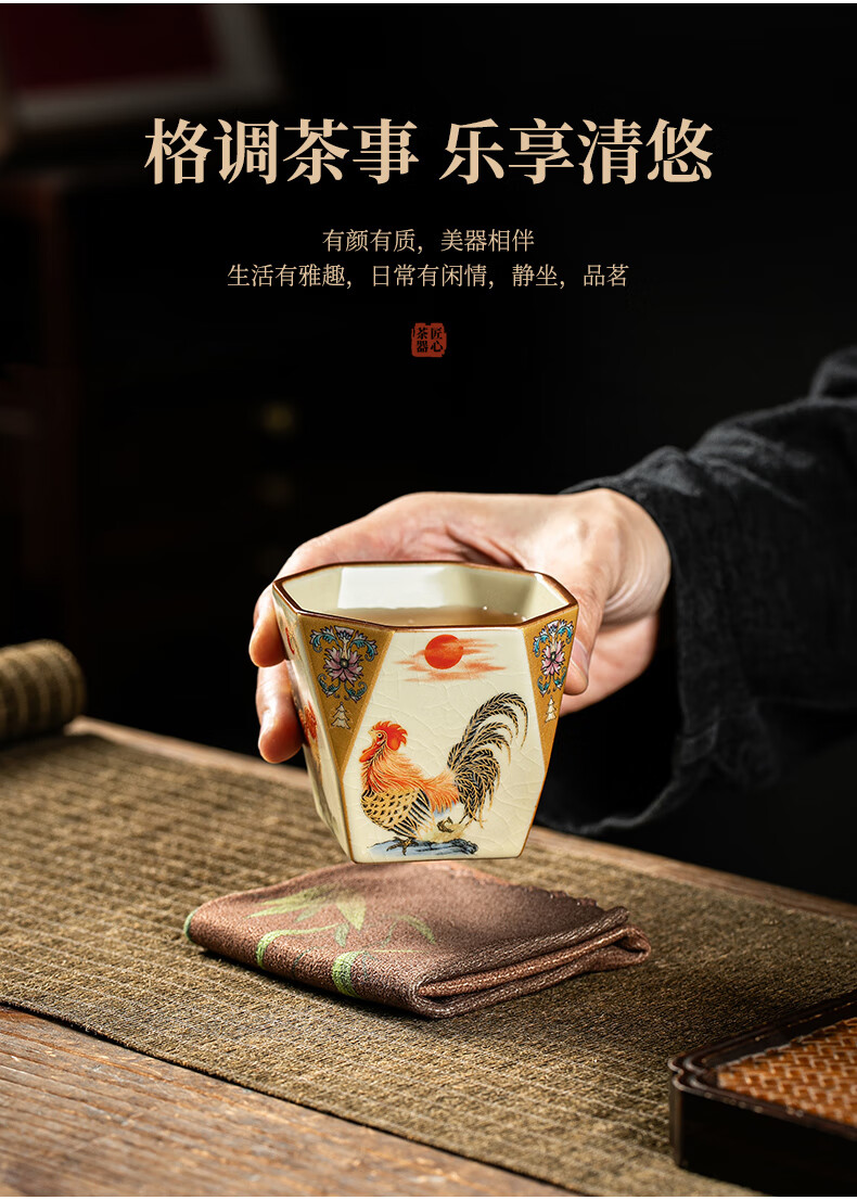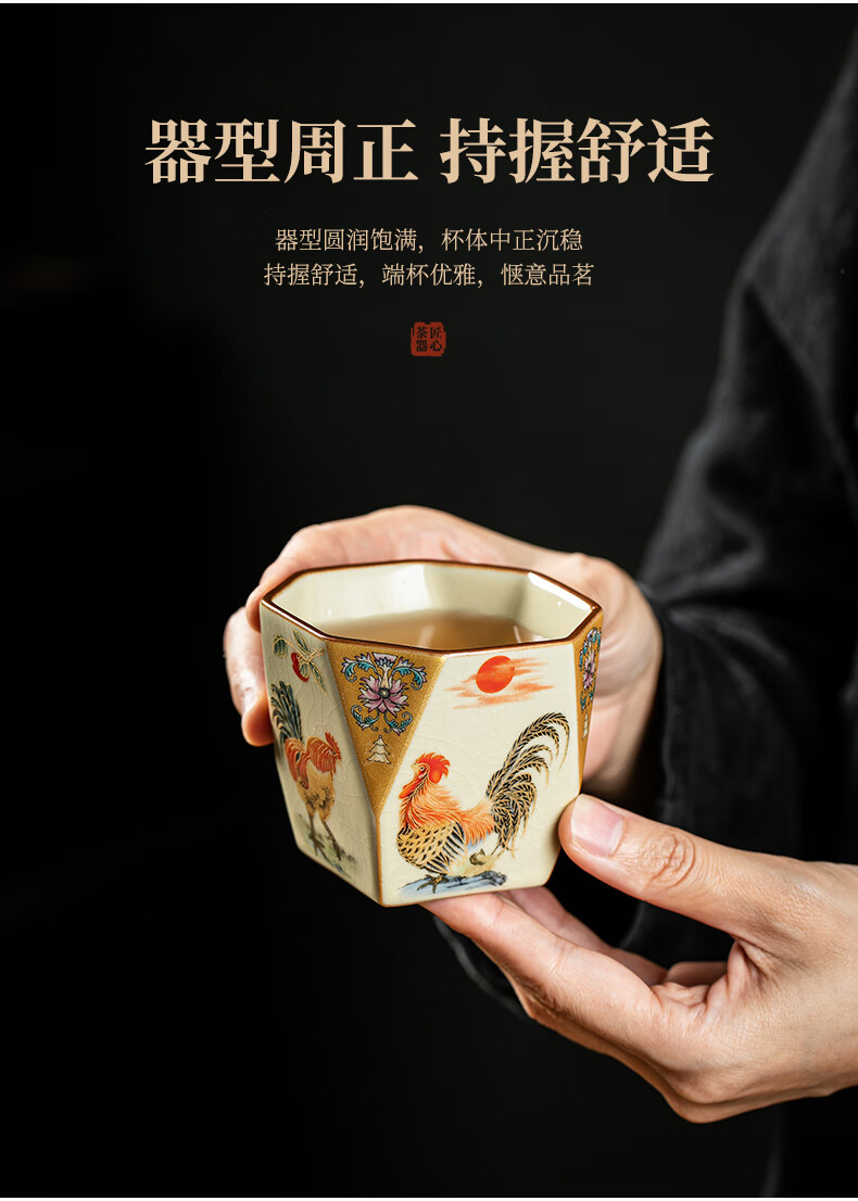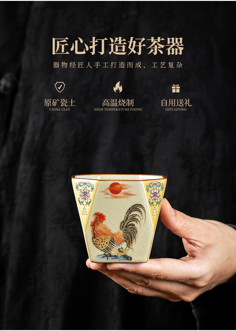 Imitation Song Dynasty Ru kiln golden rooster croaking eight-way cup single cup Chinese retro ceramic tea cup high-end master cup tea cup Panzhilian-golden rooster crowing eight-way cup-160ml