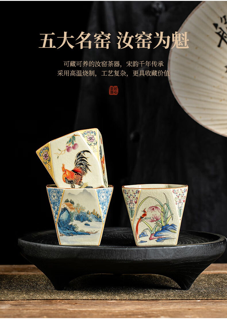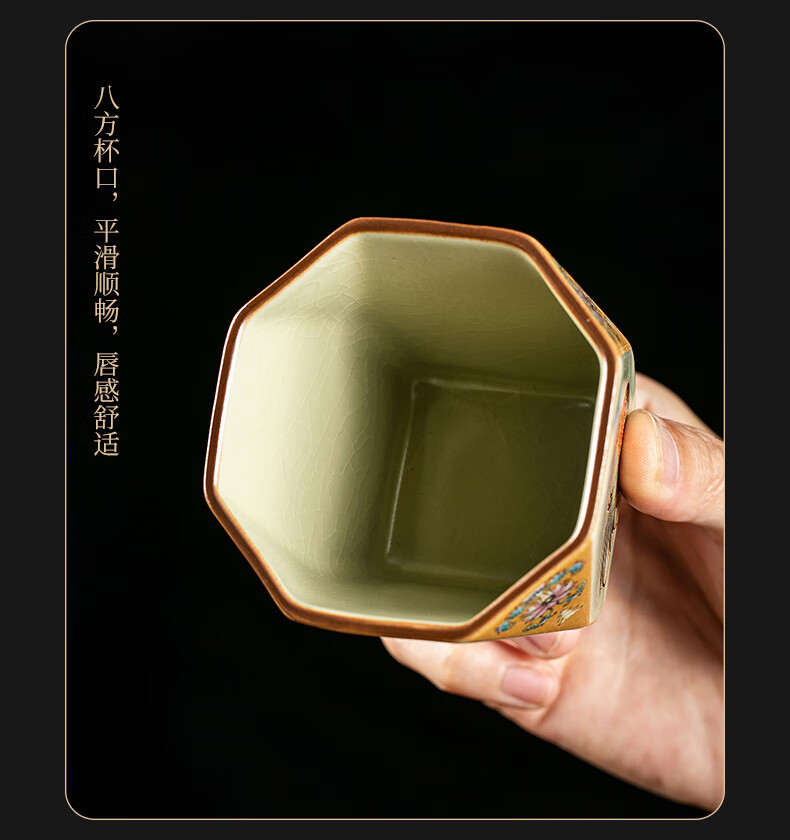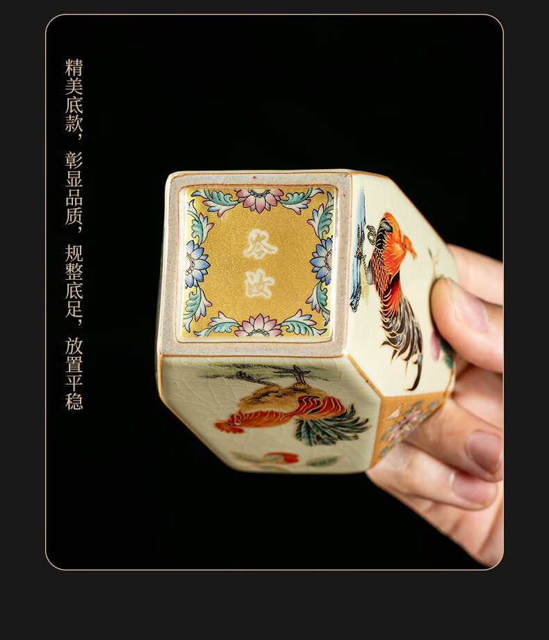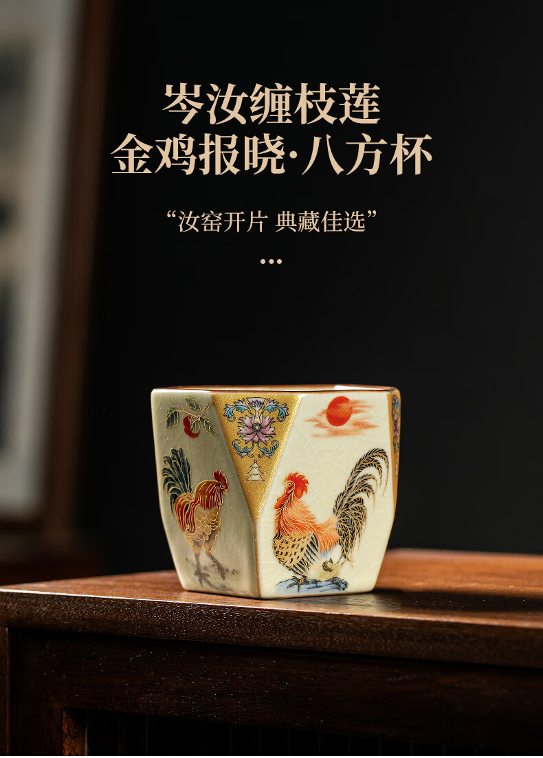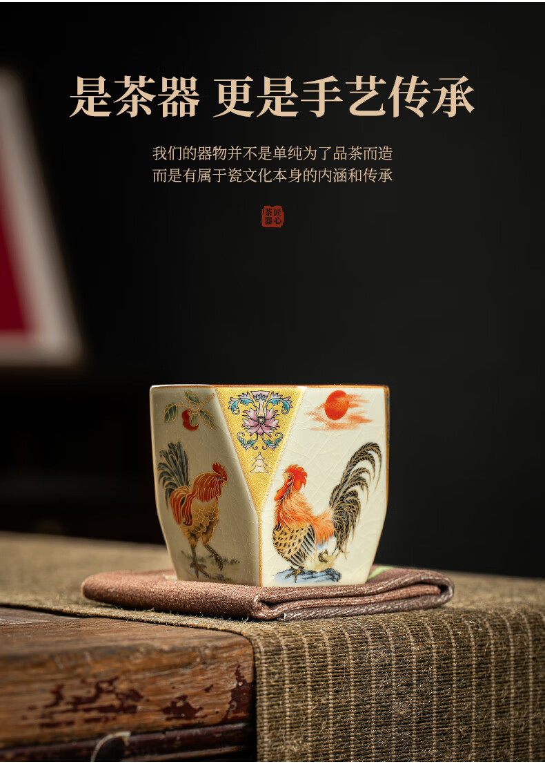 Imitation Song Dynasty Ru kiln golden rooster croaking eight-way cup single cup Chinese retro ceramic tea cup high-end master cup tea cup Panzhilian-golden rooster crowing eight-way cup-160ml