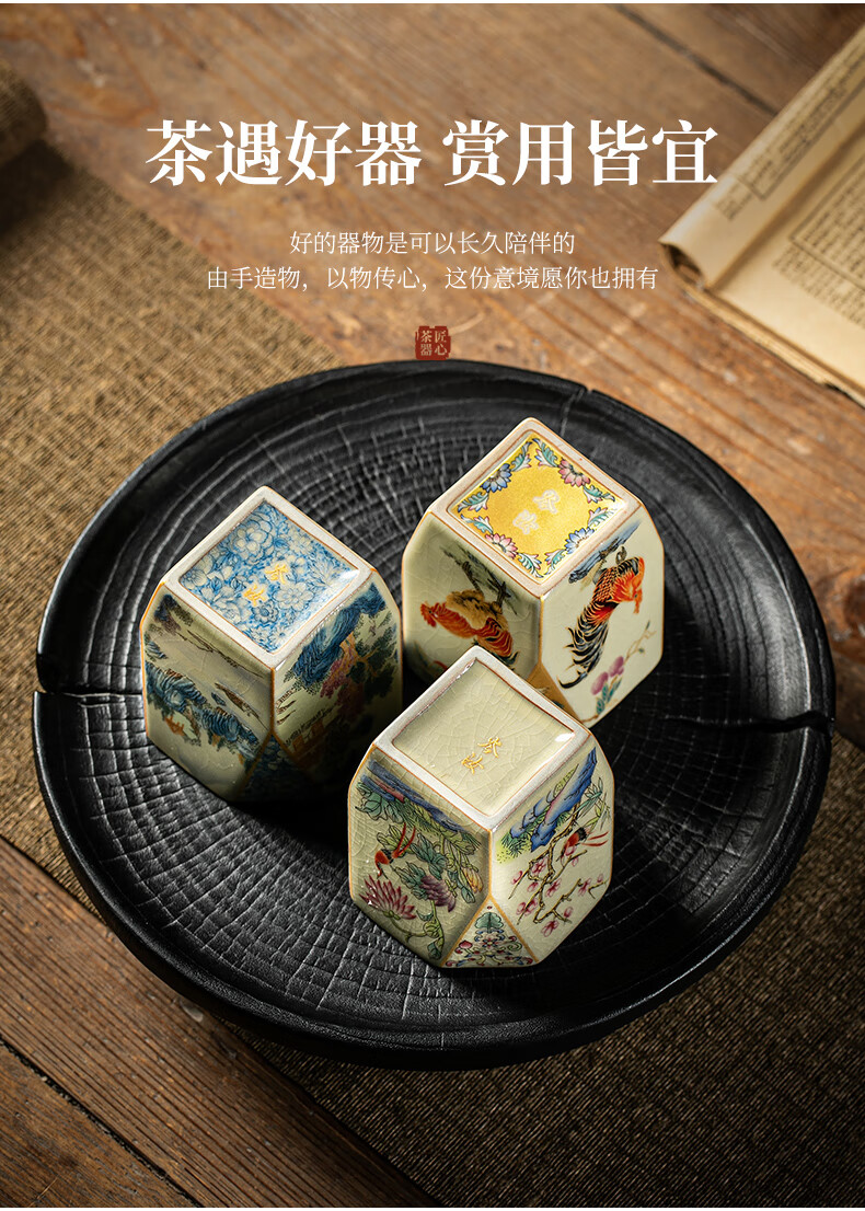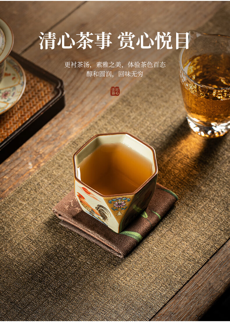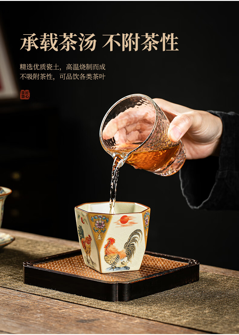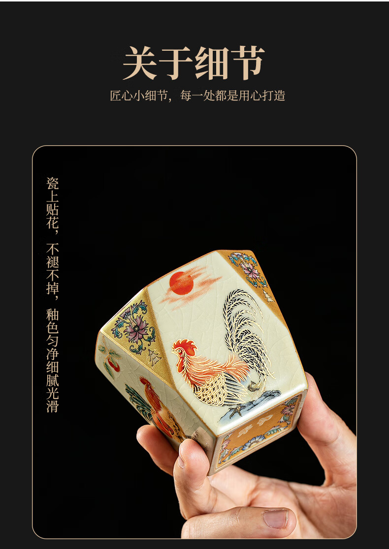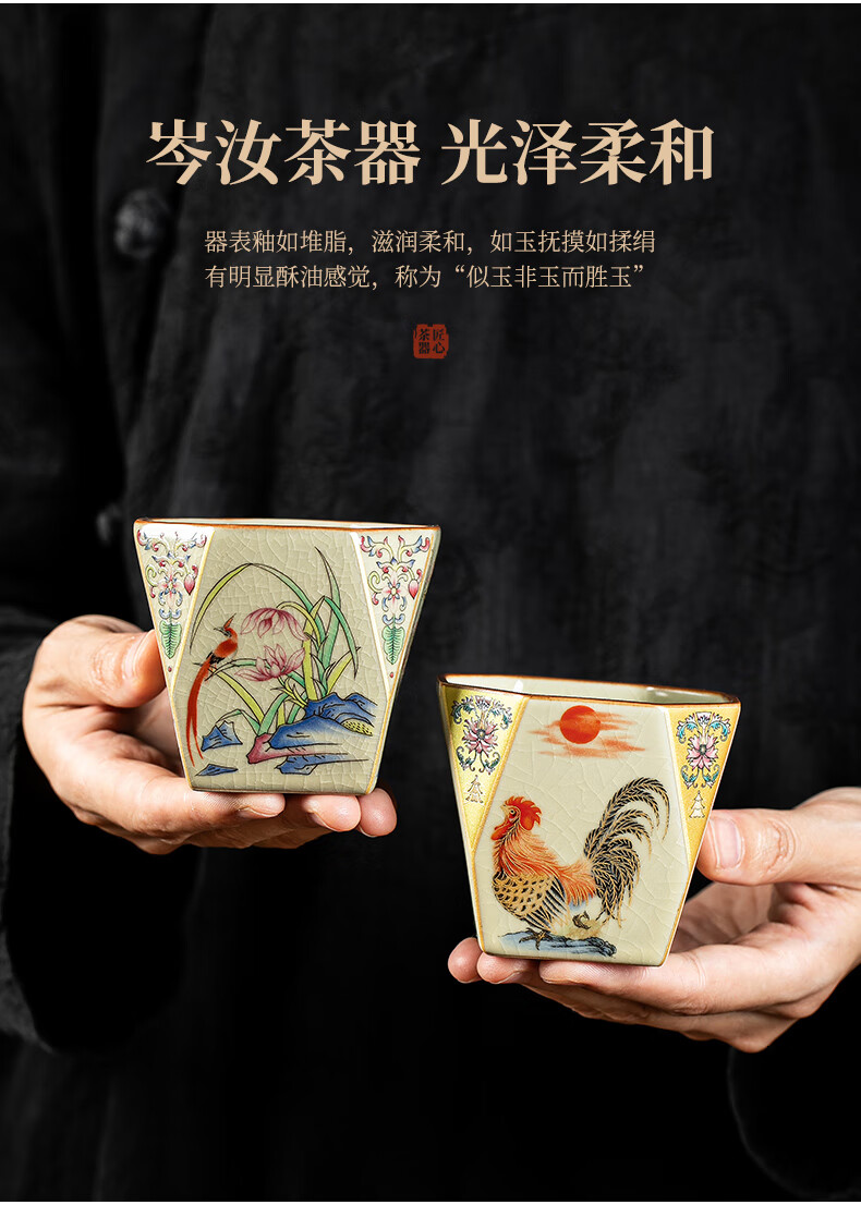 Imitation Song Dynasty Ru kiln golden rooster croaking eight-way cup single cup Chinese retro ceramic tea cup high-end master cup tea cup Panzhilian-golden rooster crowing eight-way cup-160ml