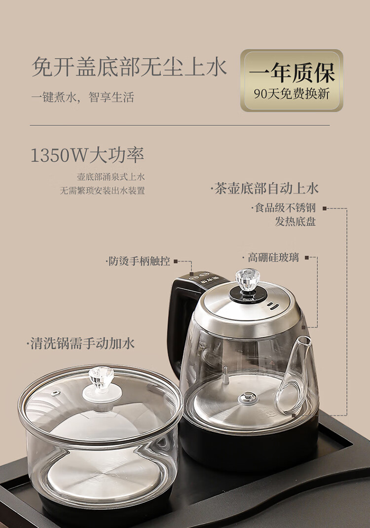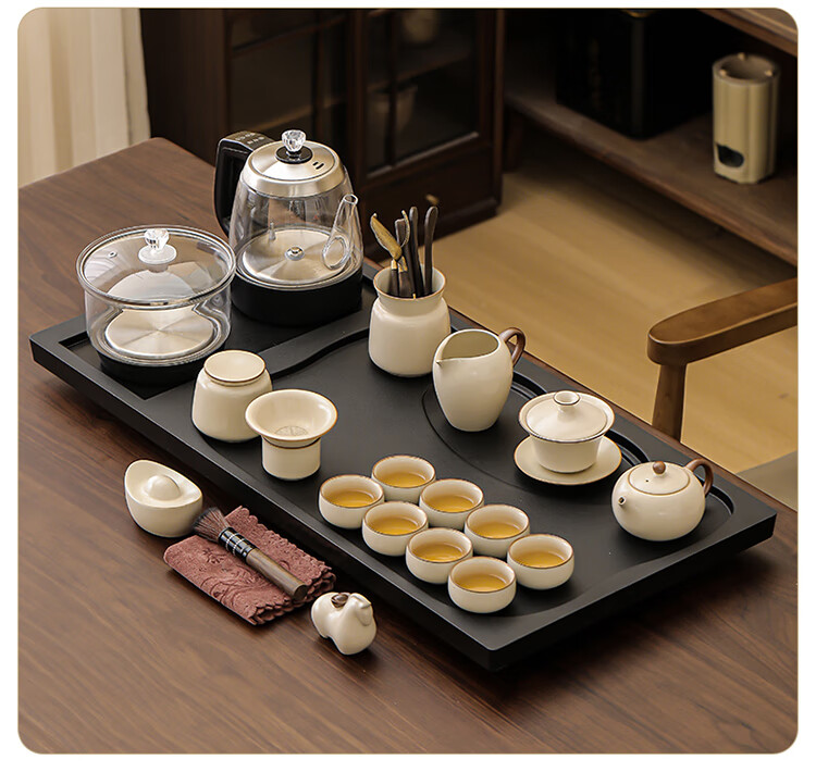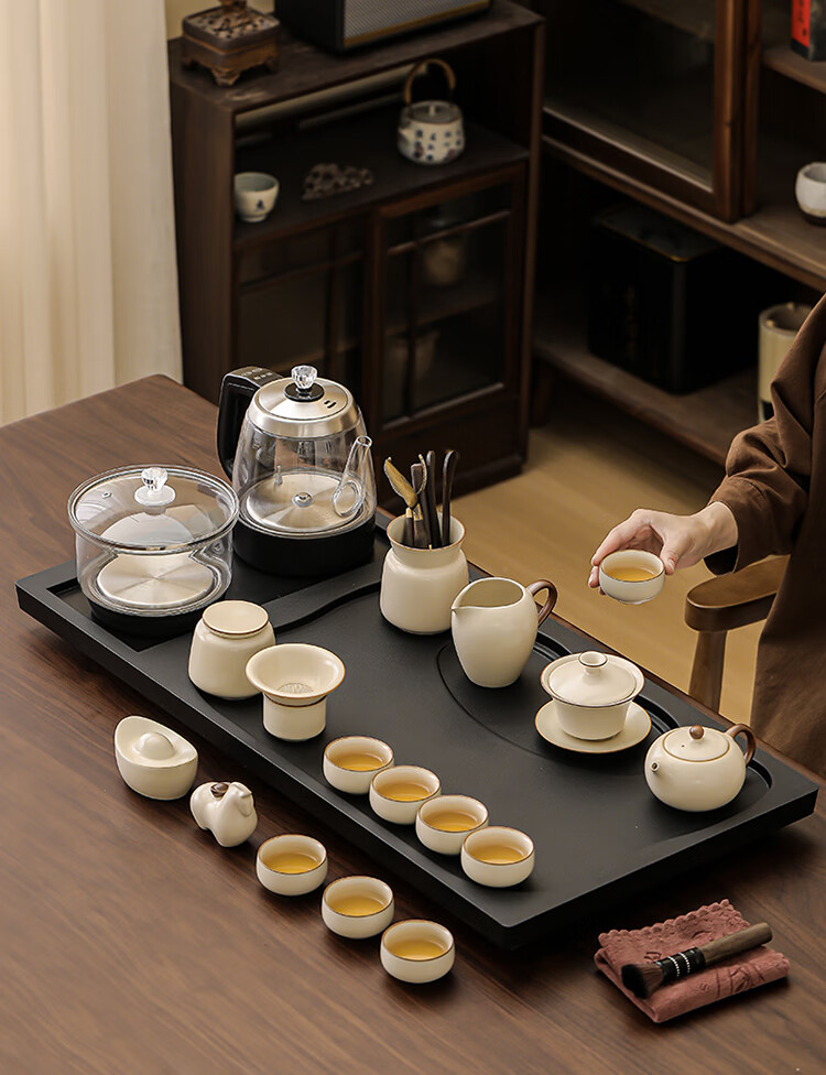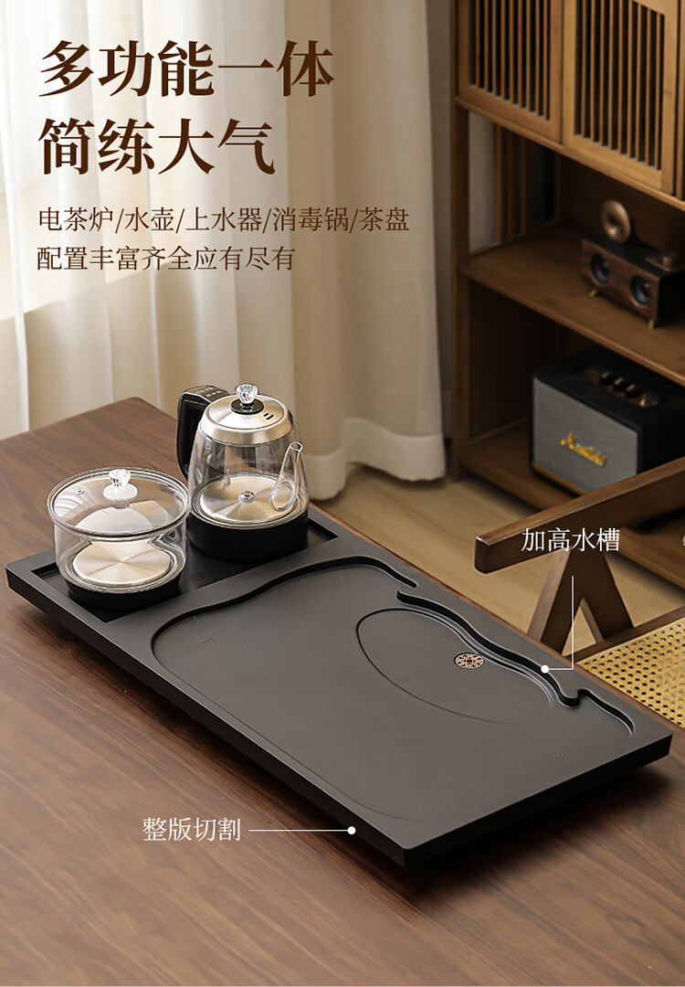 Ru Kiln Kung Fu Tea Set Home 2025 New High-end Black Gold Stone Fully Automatic Water Boiling Integrated Tea Tray Fengming Pot Set | Plain Cloth Qingyun Middle Plate + Electrical Appliances
