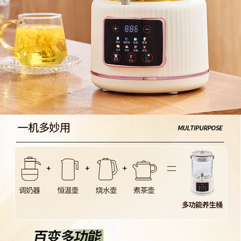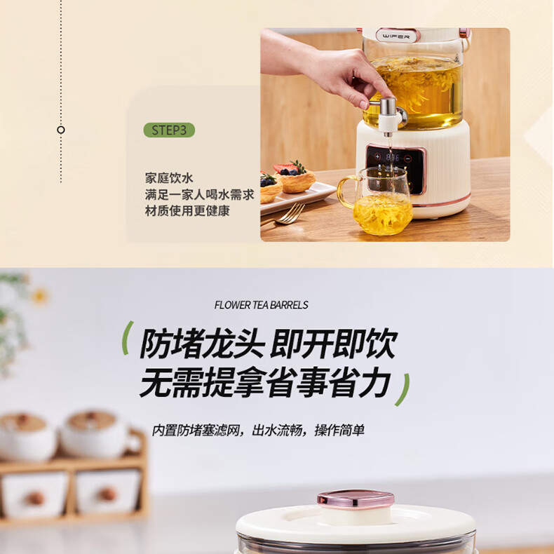 Healthy tea pot, stew, all-in-one teapot, kettle, household flower teapot, large capacity thermostatic kettle, hot water kettle, split type with filter, 3L flower tea health pot