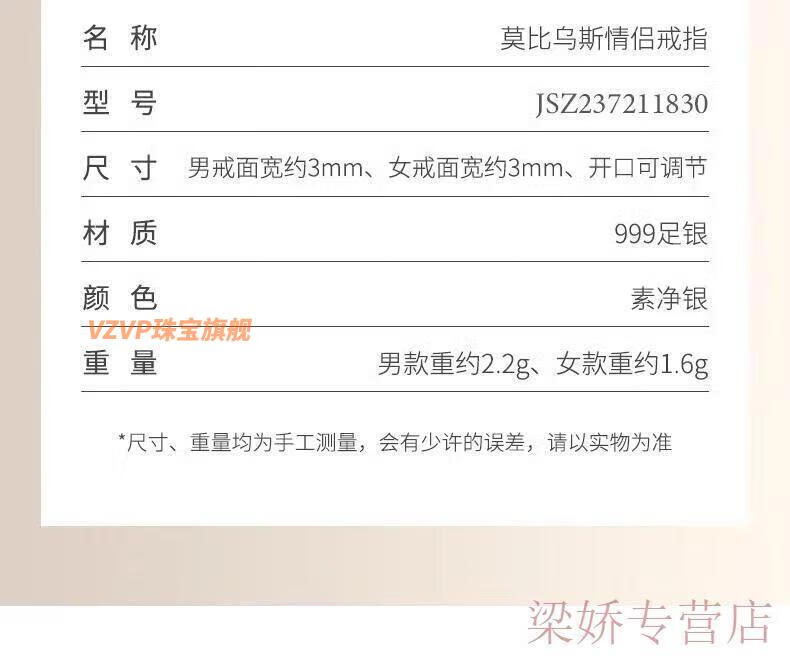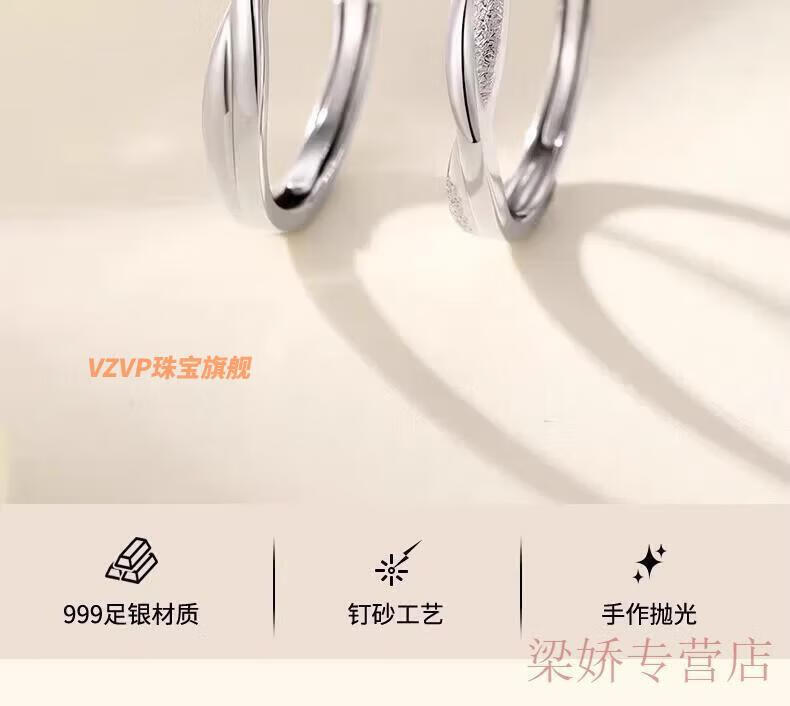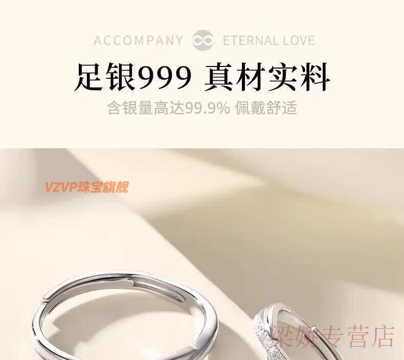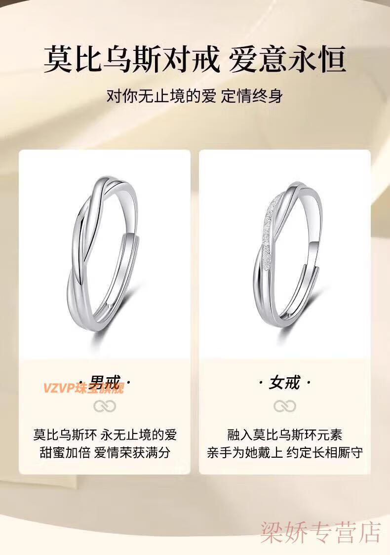 VZVP Old Phoenix Gold Store Model Mobius S999 Pure Silver Fashionable Couple Rings Niche Design Men's and Women's One Same Style Fat Donglai Gift Box Packaging Fat Donglai
