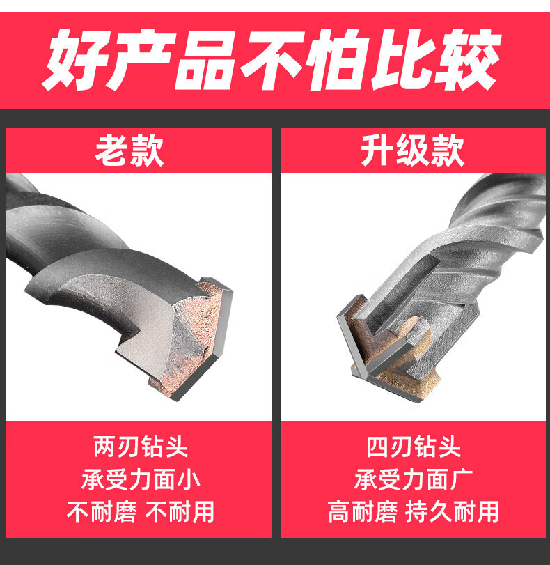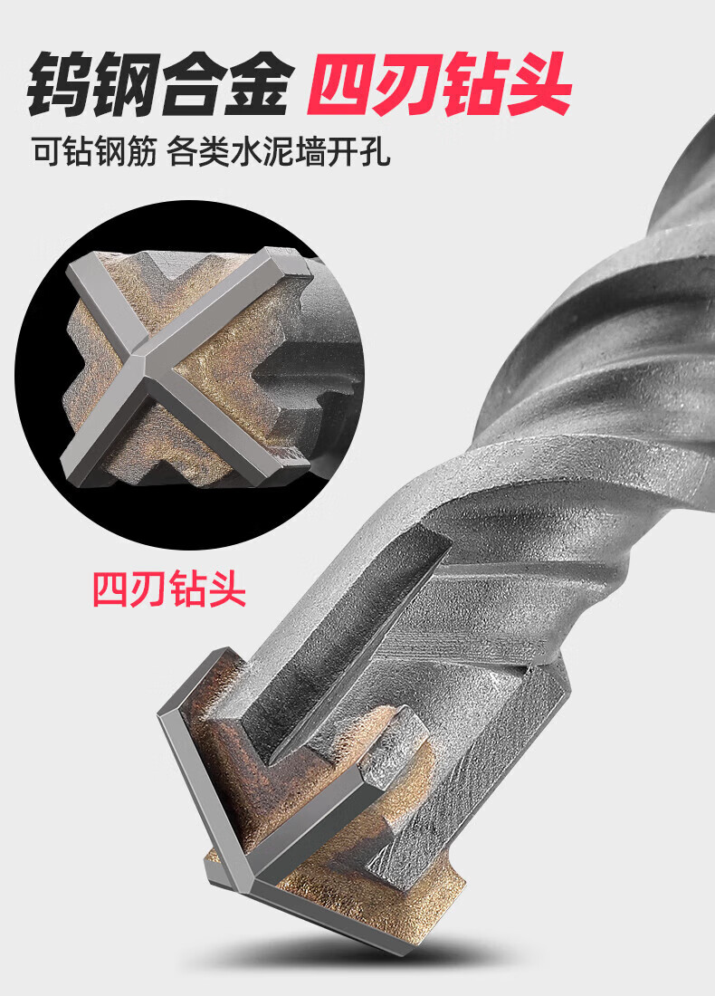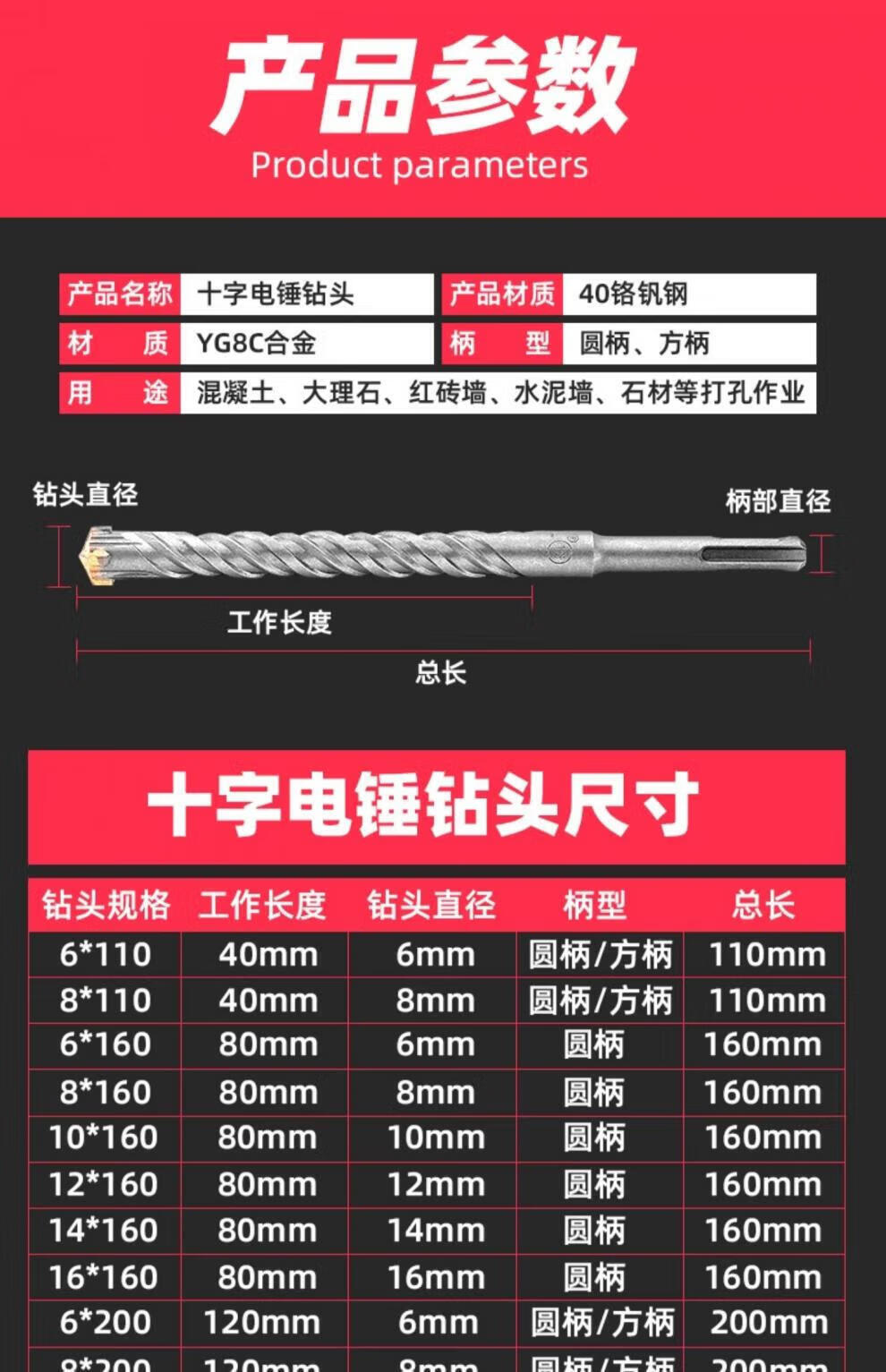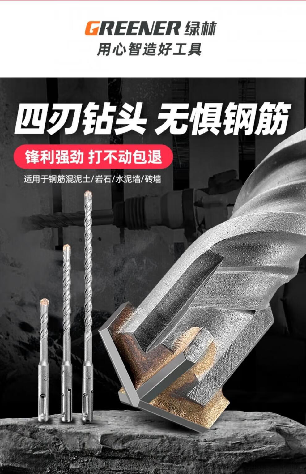 GREENER cross impact drill bit electric hammer concrete round handle through the wall square handle through the wall to four holes alloy extended four blades 12*200 (round handle)