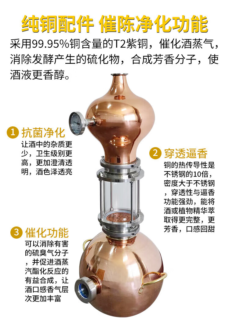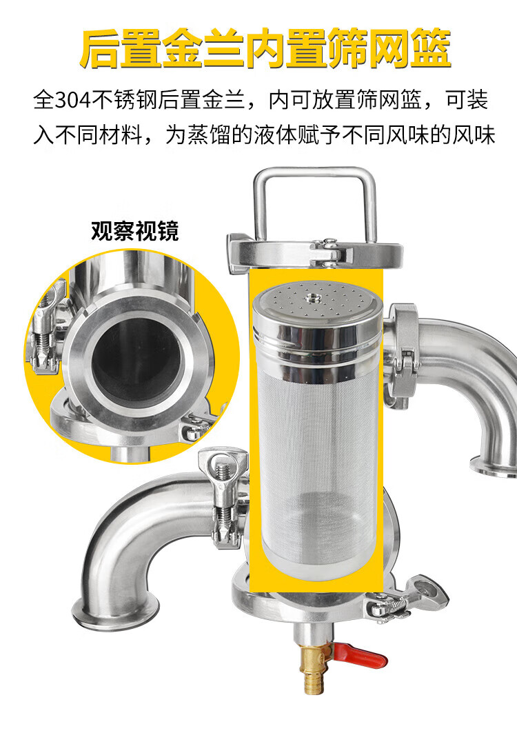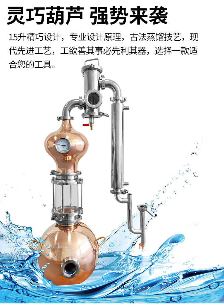 Rear-mounted Jinlan copper gourd wine distiller laboratory essential oil hydrosol purification small 15 liter whiskey Rear-mounted Jinlan stainless steel wine outlet