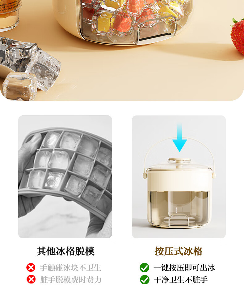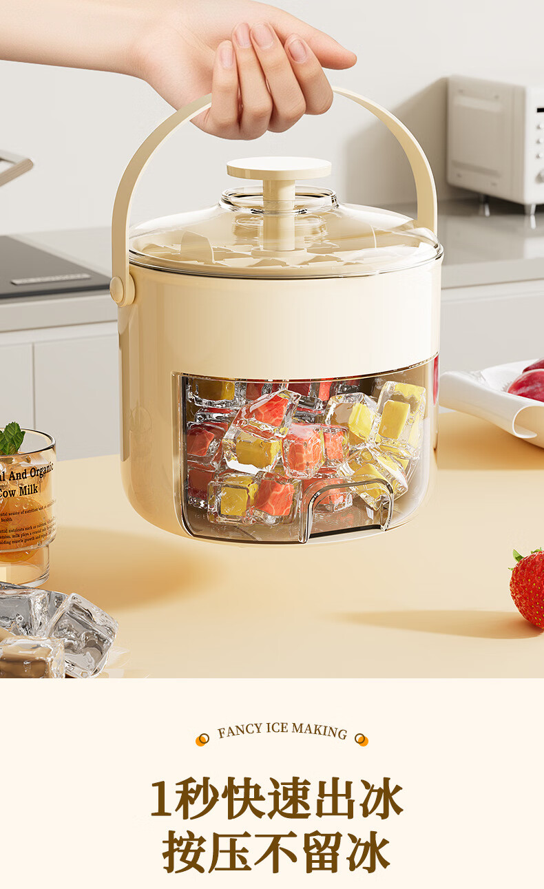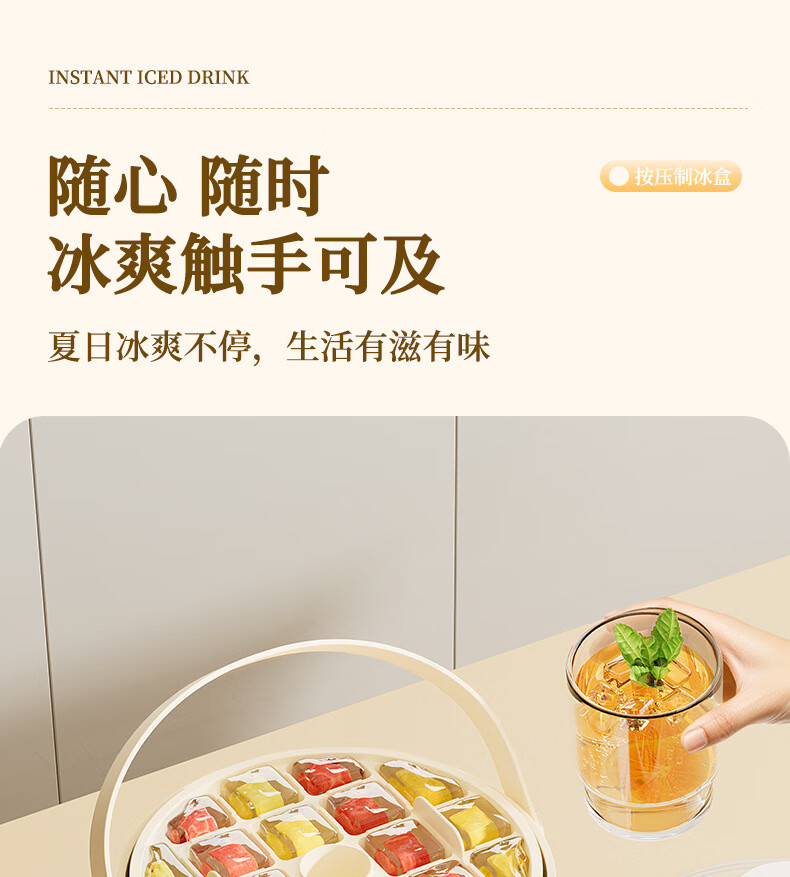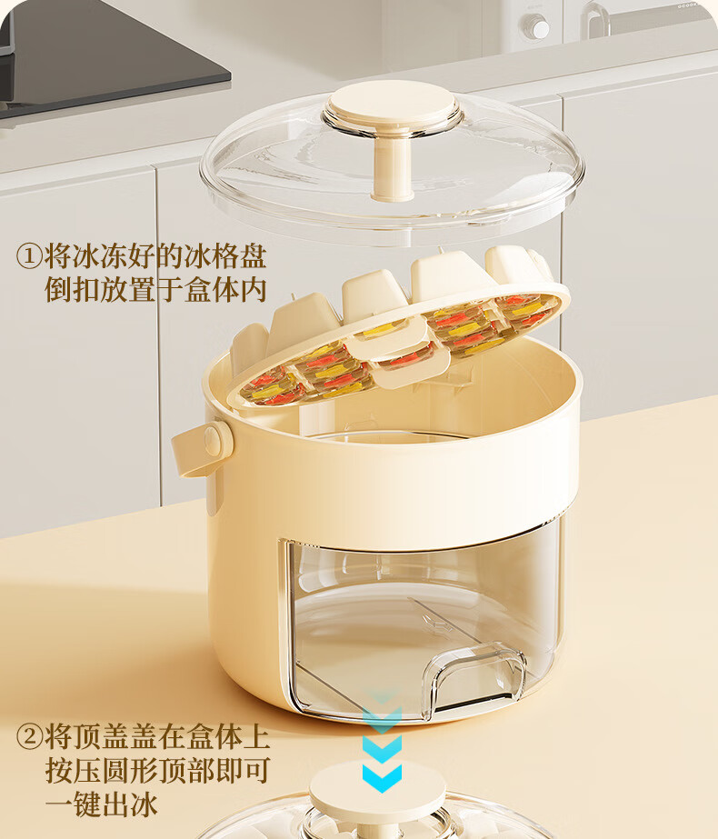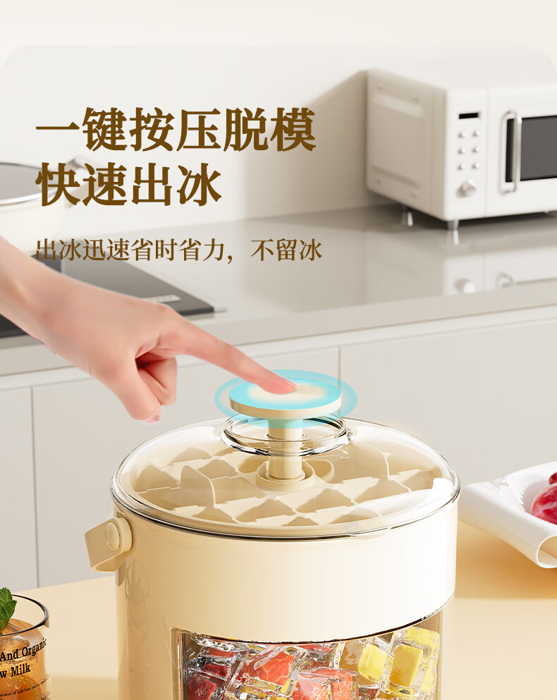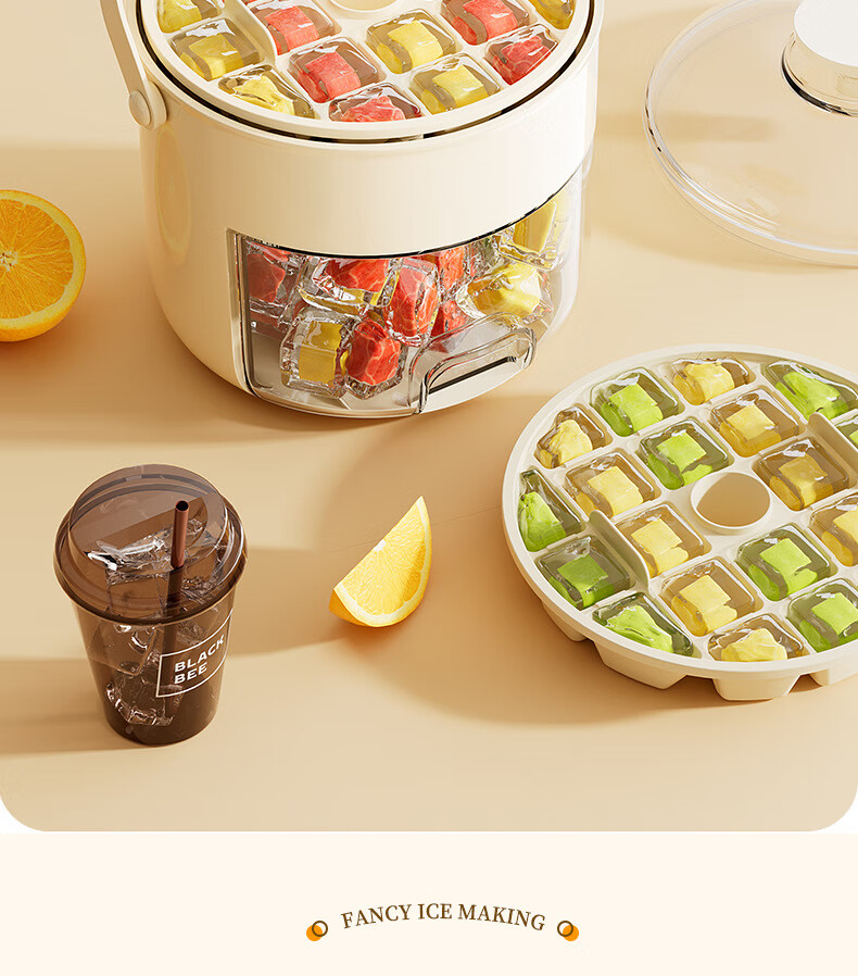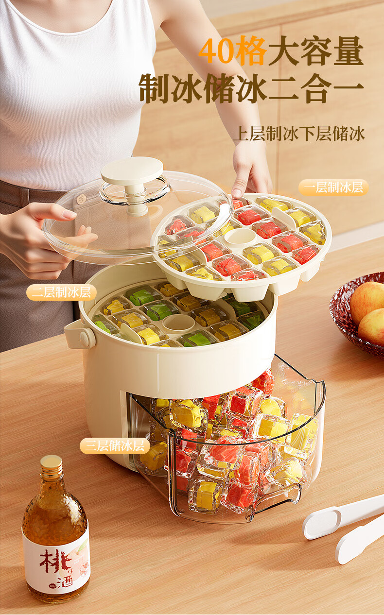 Press ice tray ice cube mold ice making box frozen ice ball grinding tool large capacity household food grade ice storage bucket with drawer 40 grid double layer - cream white ice making and ice storage integrated
