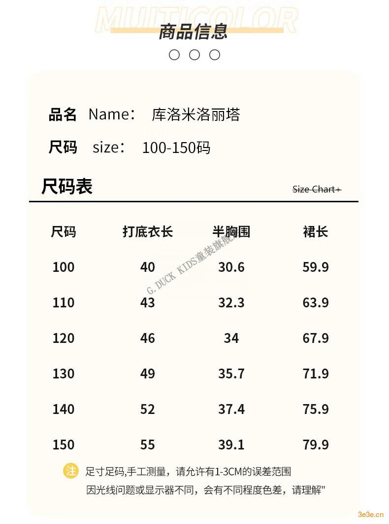G.duck Little Yellow Duck Lolita Princess Dress Girls Dress Kuromi Clothes Children's Performance Clothes Baby Birthday Gift Single Skirt 150 Size 11~12 years old 140-150cm cm