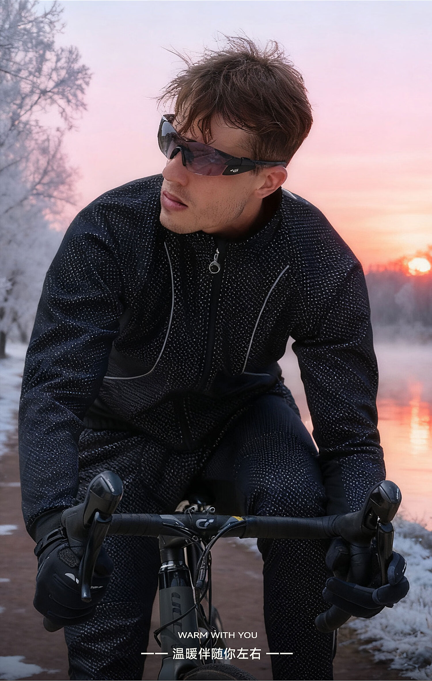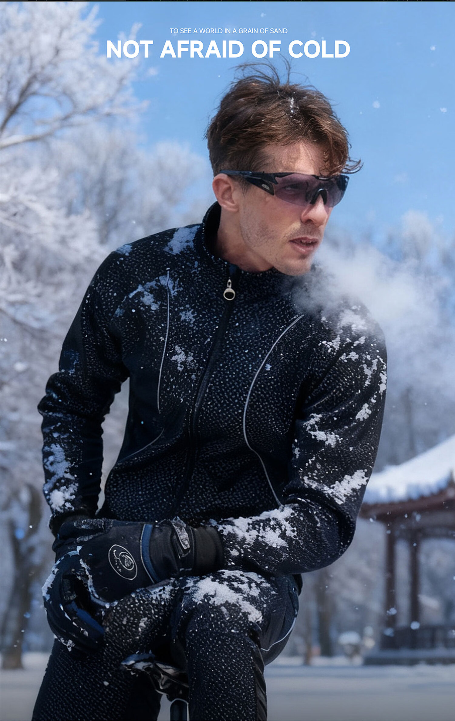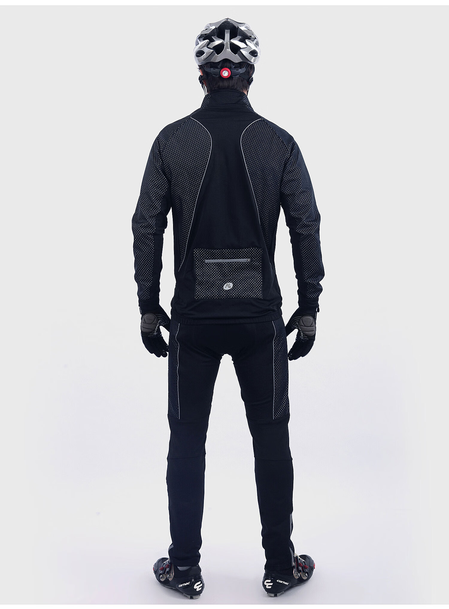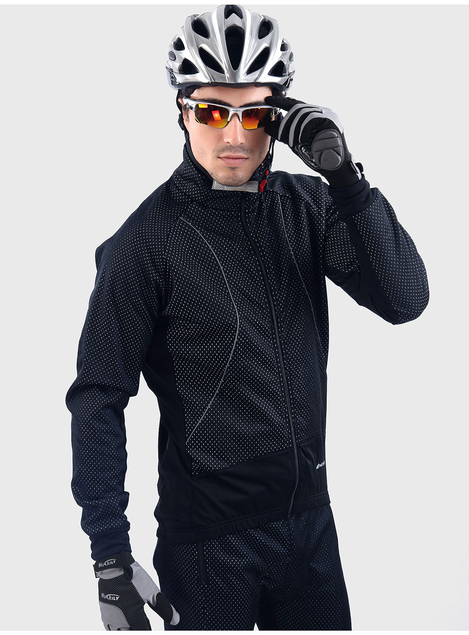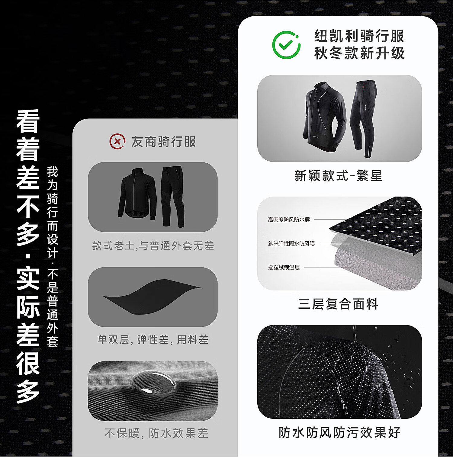 NUCKILY Cycling Suit Autumn and Winter Road Cycling Men's Jacket Quick-drying Long-sleeved Top Windproof Warm Pants Set Stars-Black Suit NJ525+NS358 2XL Recommended Weight 80-85kg