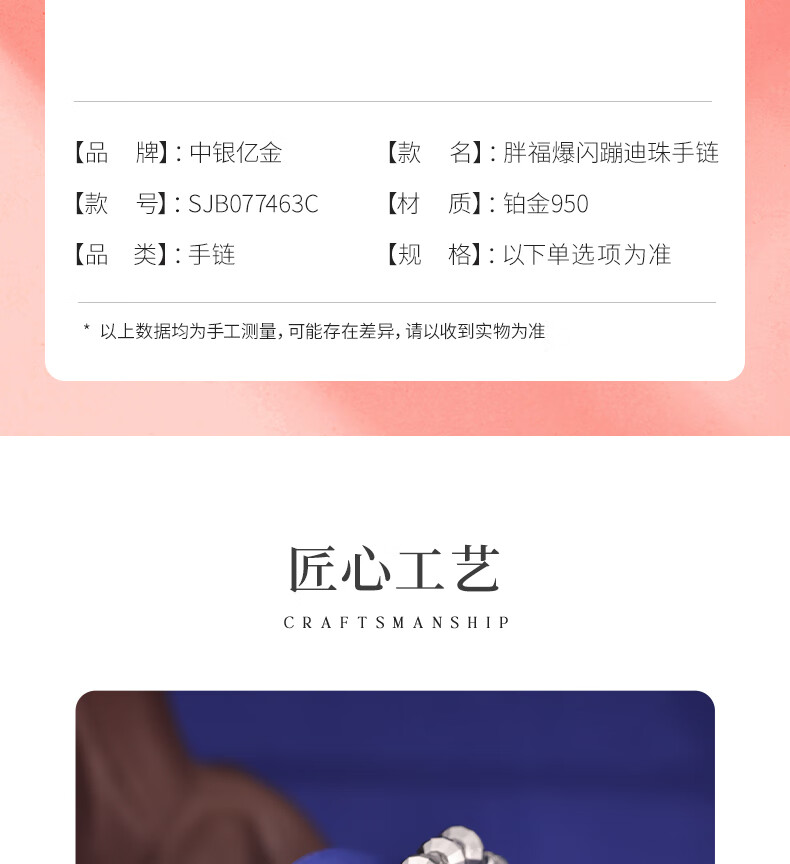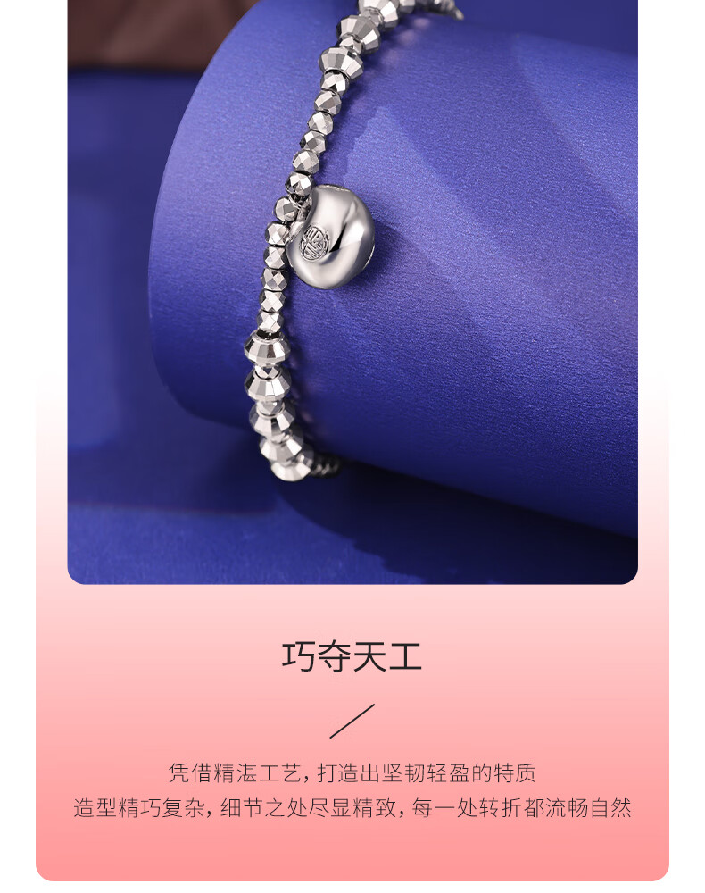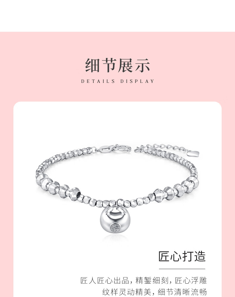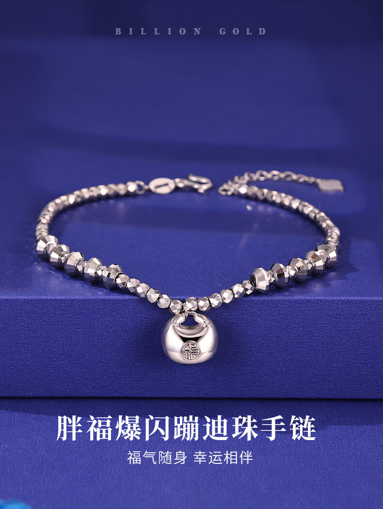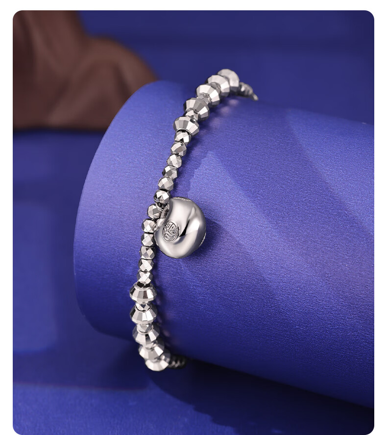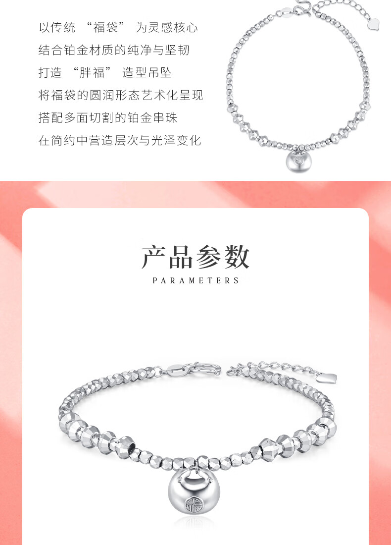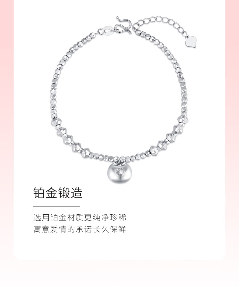 Bank of China Yijin pt950 sparkling platinum bracelet with bouncy beads for women. Platinum fat bracelet for birthday and Valentine's Day gift for girlfriend. Fat bodice platinum bracelet. Gold weight is about 9.5
