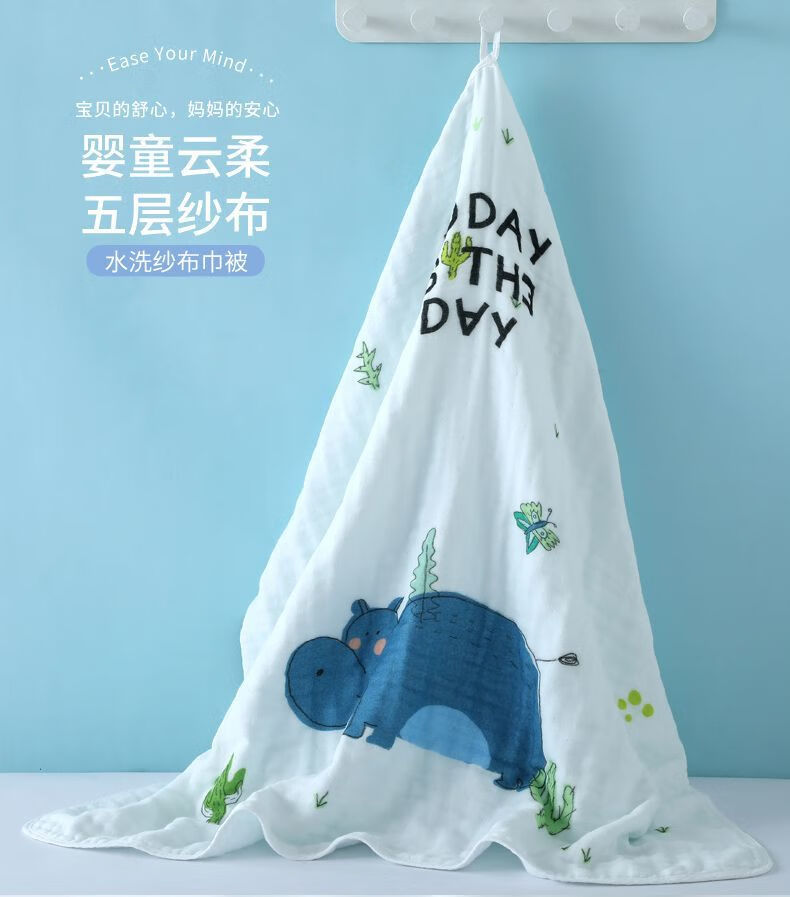 KING SHORE cartoon pure cotton gauze blanket children's summer cool quilt baby kindergarten nap blanket towel quilt white one