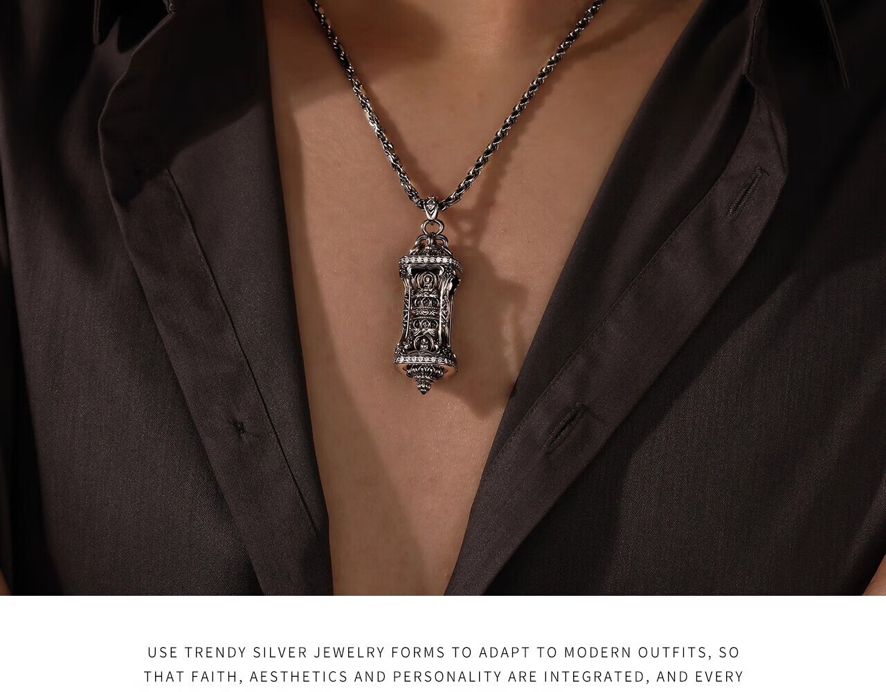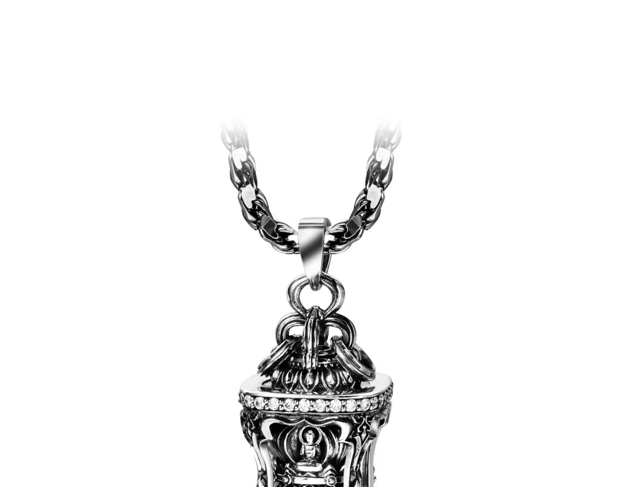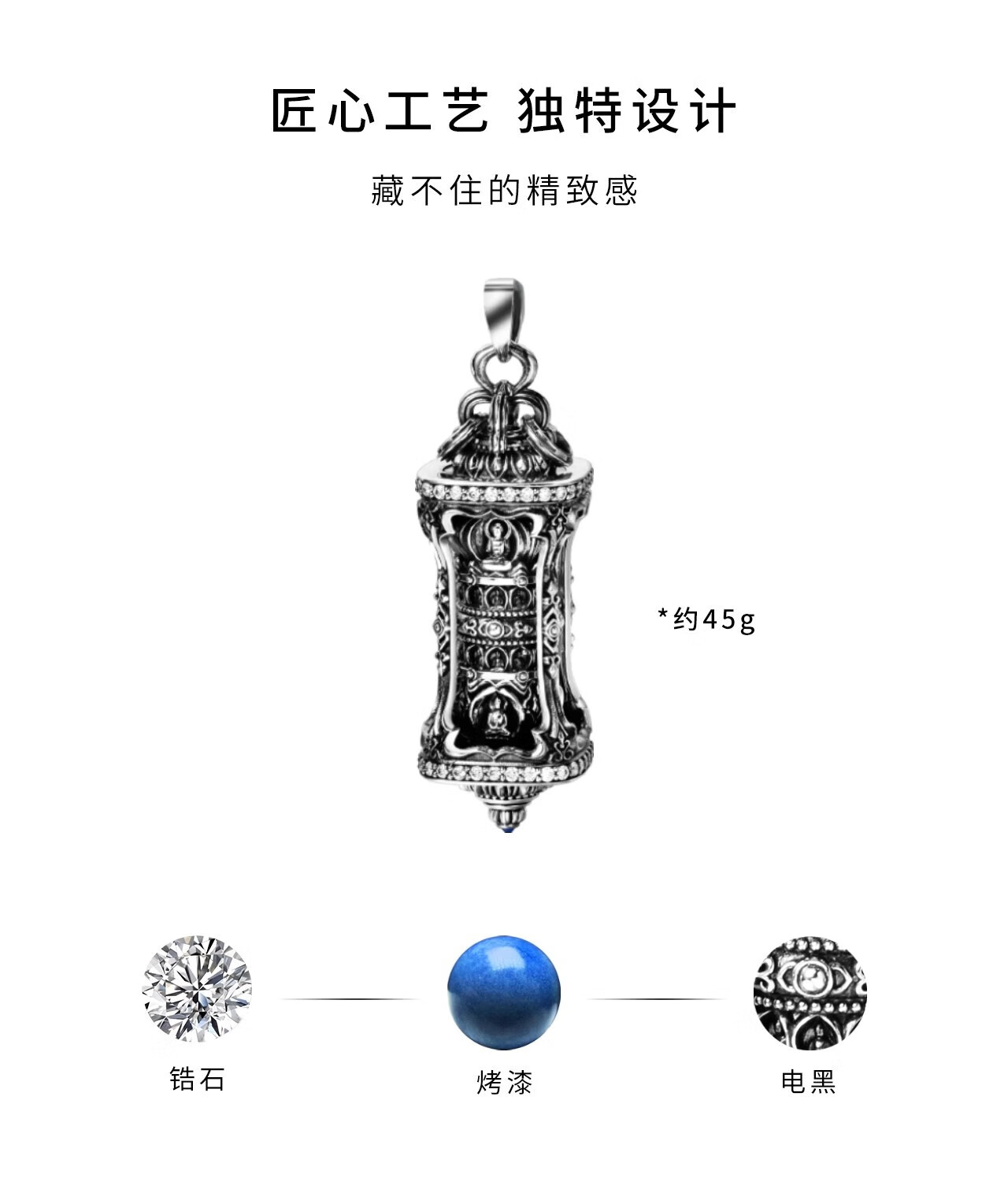 Ruofei platinum pendant men's pt950 dazzling black gold craftsmanship retro men's platinum diamond pendant without residence rotating pendant dazzling black gold without residence set chain 65cm 92-93g