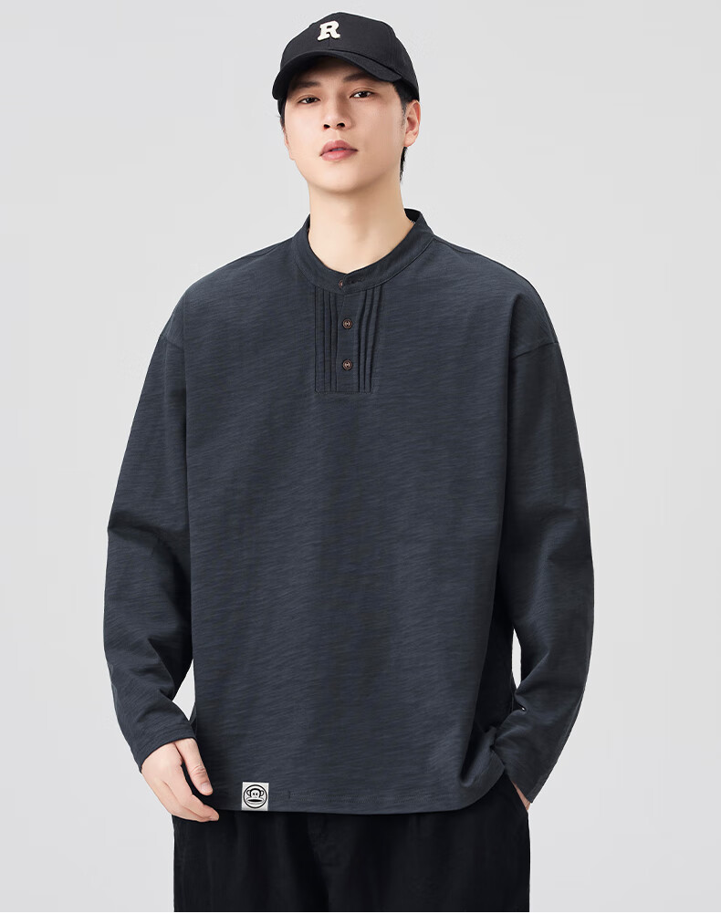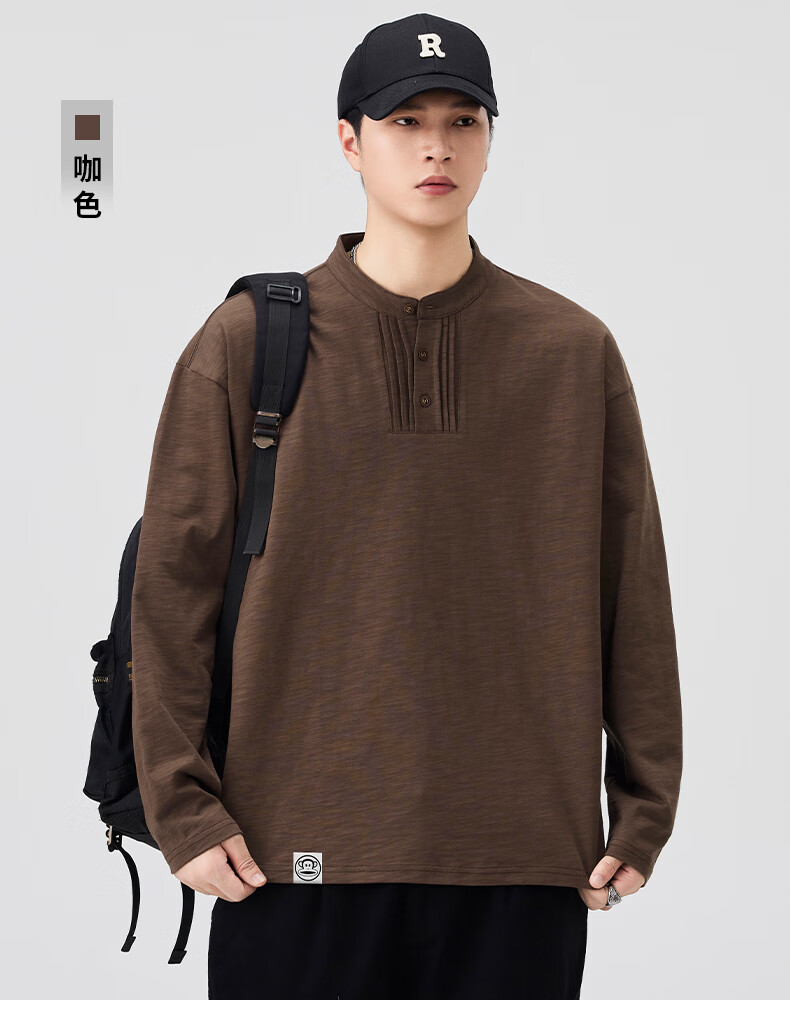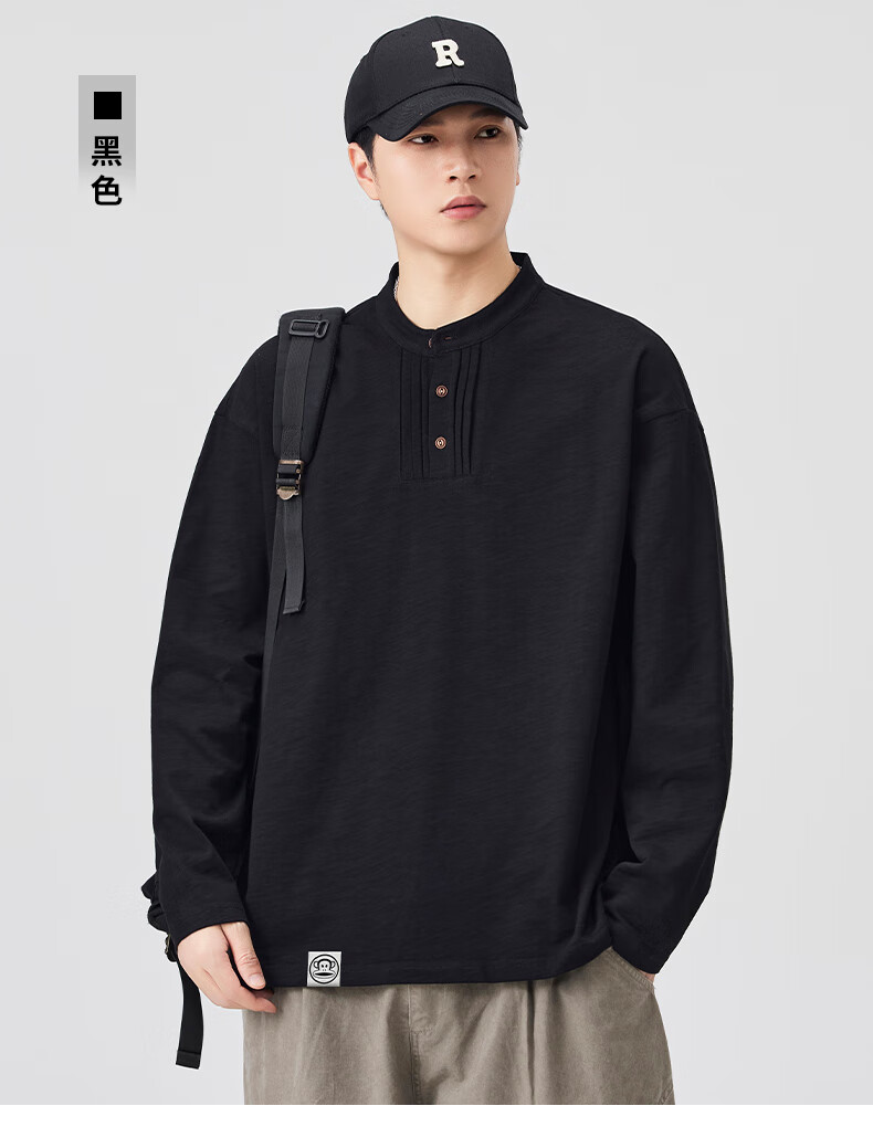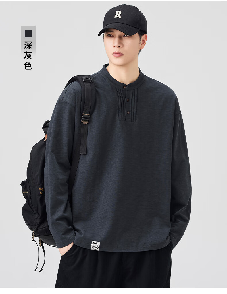 Big Mouth Monkey (paul frank) Henry collar long-sleeved T-shirt men's spring and autumn new men's American fashion brand versatile casual inner layering shirt top dark gray autumn new M recommended 100-120Jin Jin equals 0.5 kg