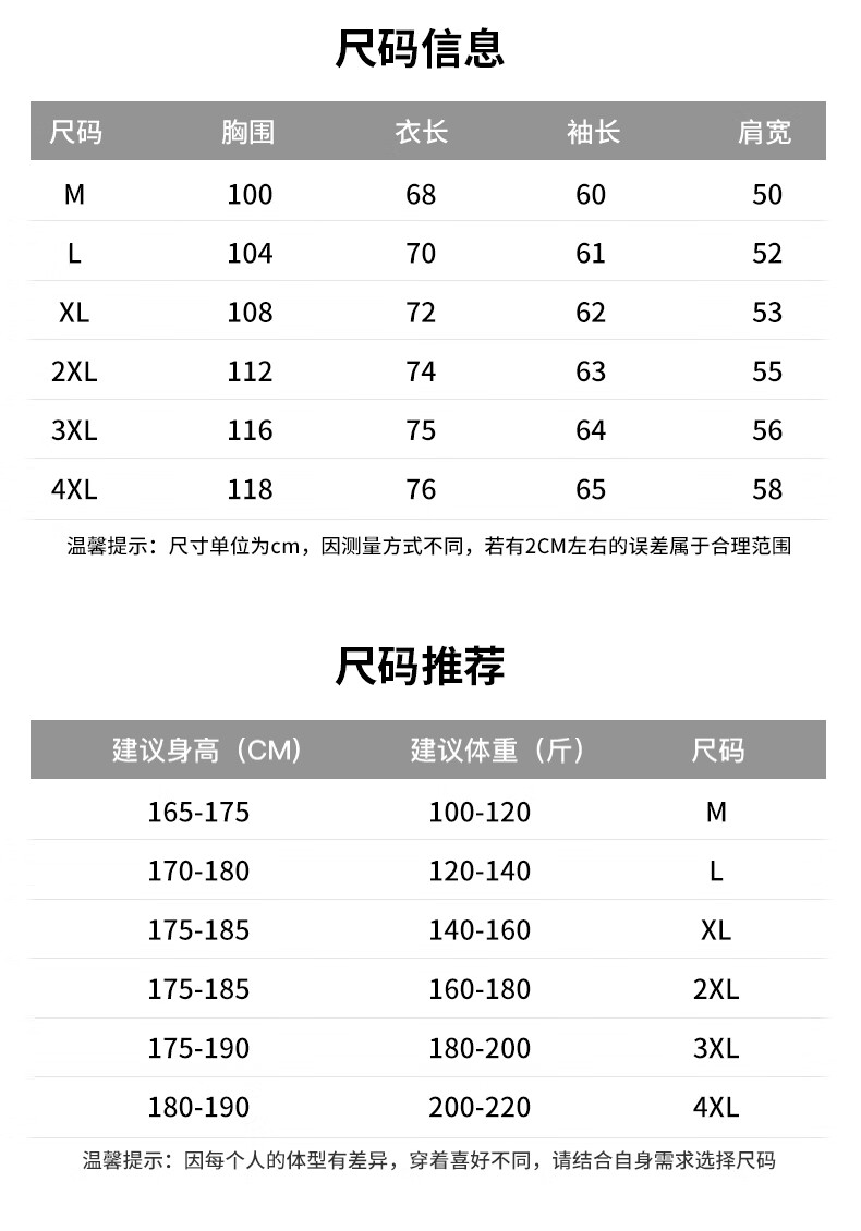 China (cm) 165 / 88-90 170 / 96-98 175 / 108-110 180 / 118-122 185 / 126-130