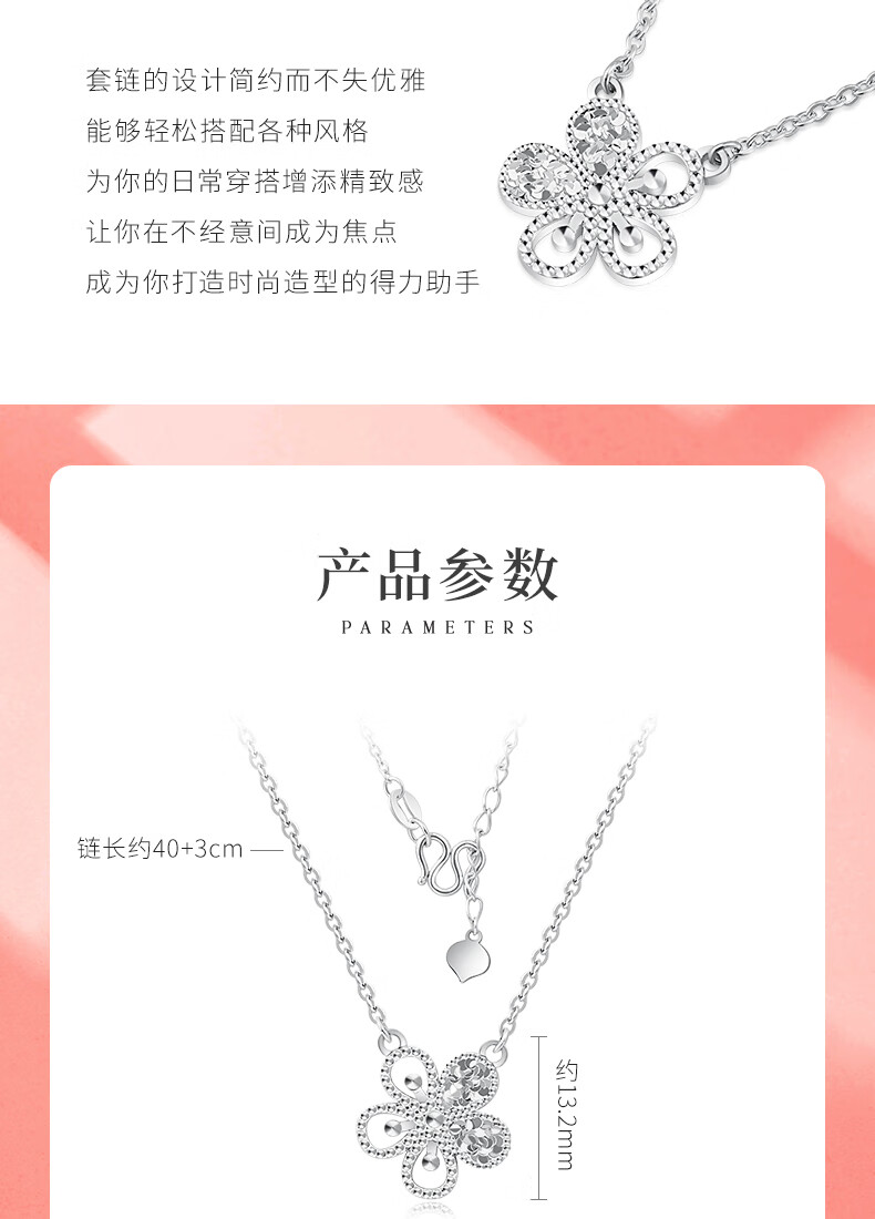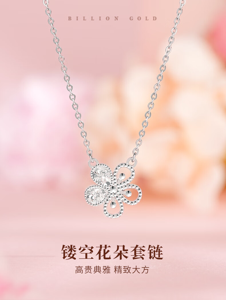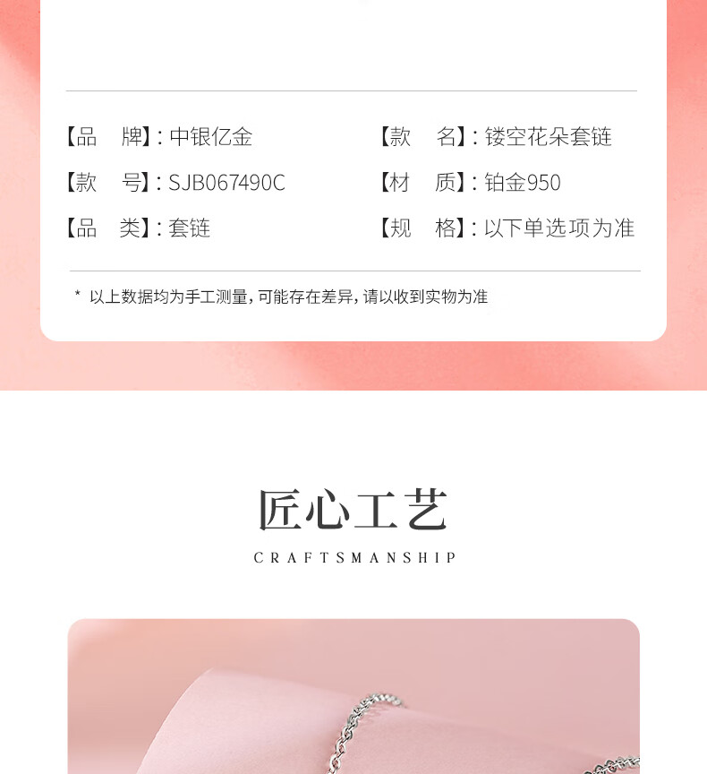 Bank of China Yijin pt950 hollow peach blossom set chain platinum necklace women's platinum chain birthday and Valentine's Day gift for girlfriend and wife platinum hollow peach blossom set chain gold weight about 6g