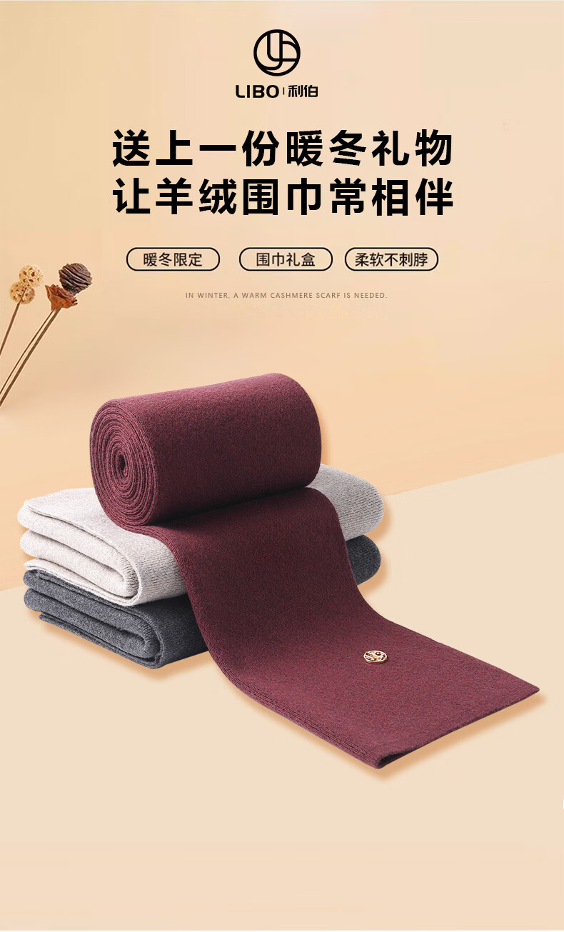 Lieber's new high-end cashmere cotton young men's scarf winter neck protector to keep warm birthday gift for dad and boys, dark gray 6111 size 180X30CM