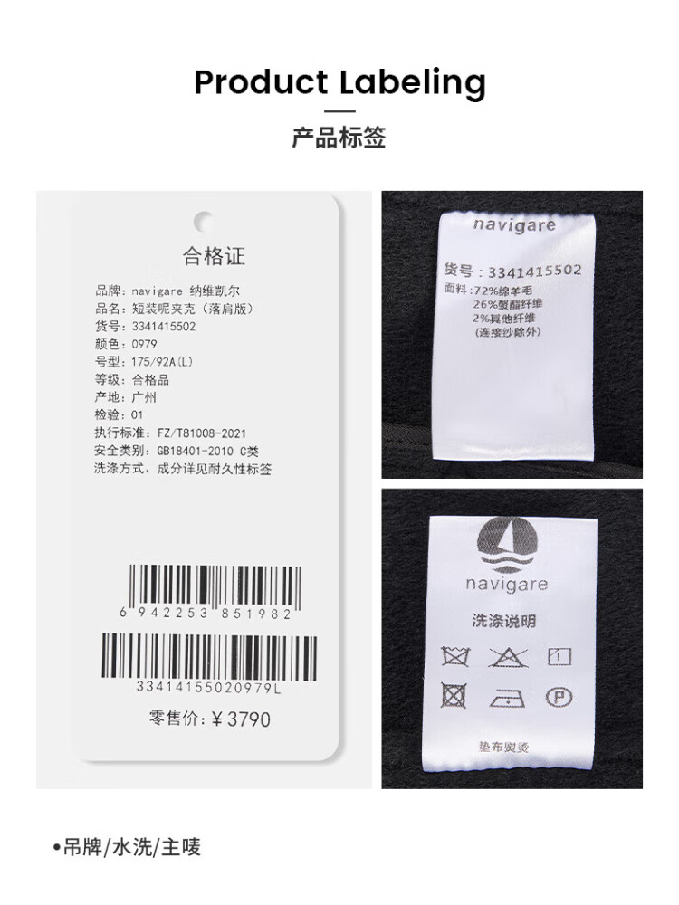 Navigare Italian small sailing short woolen jacket men's 2025 autumn and winter new wool wide lapel jacket dark night black M