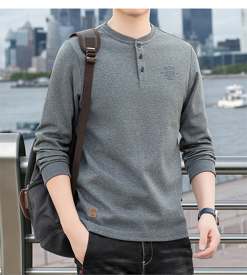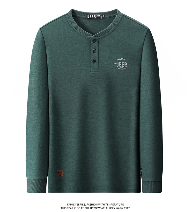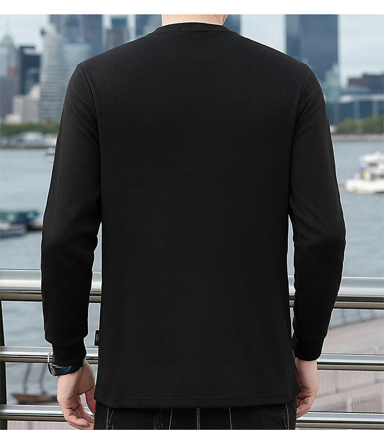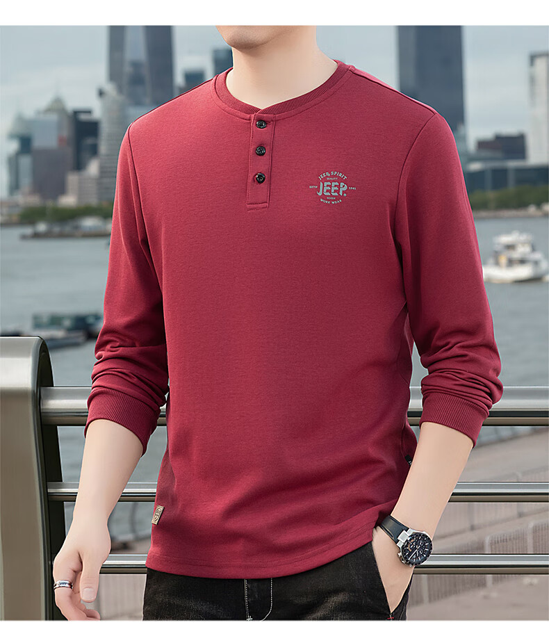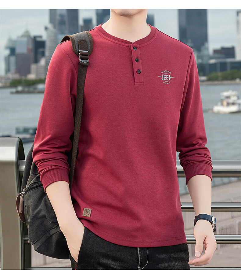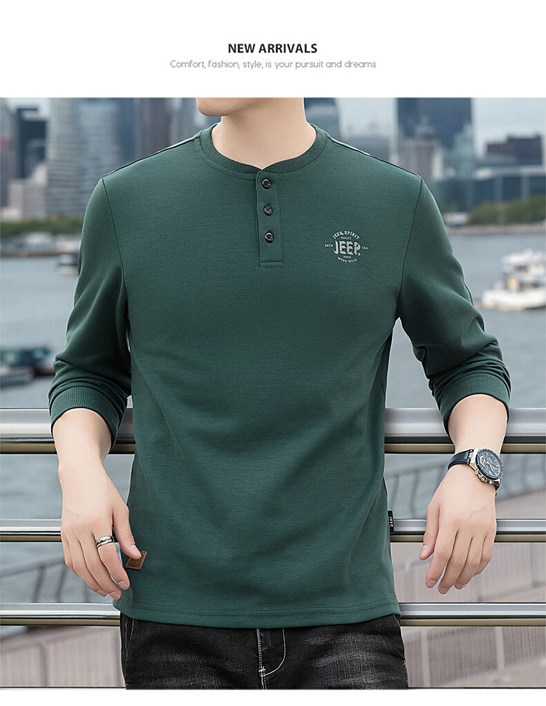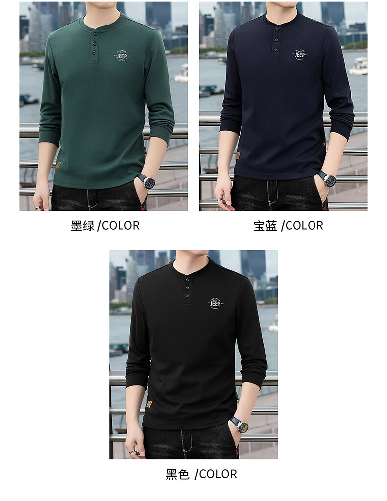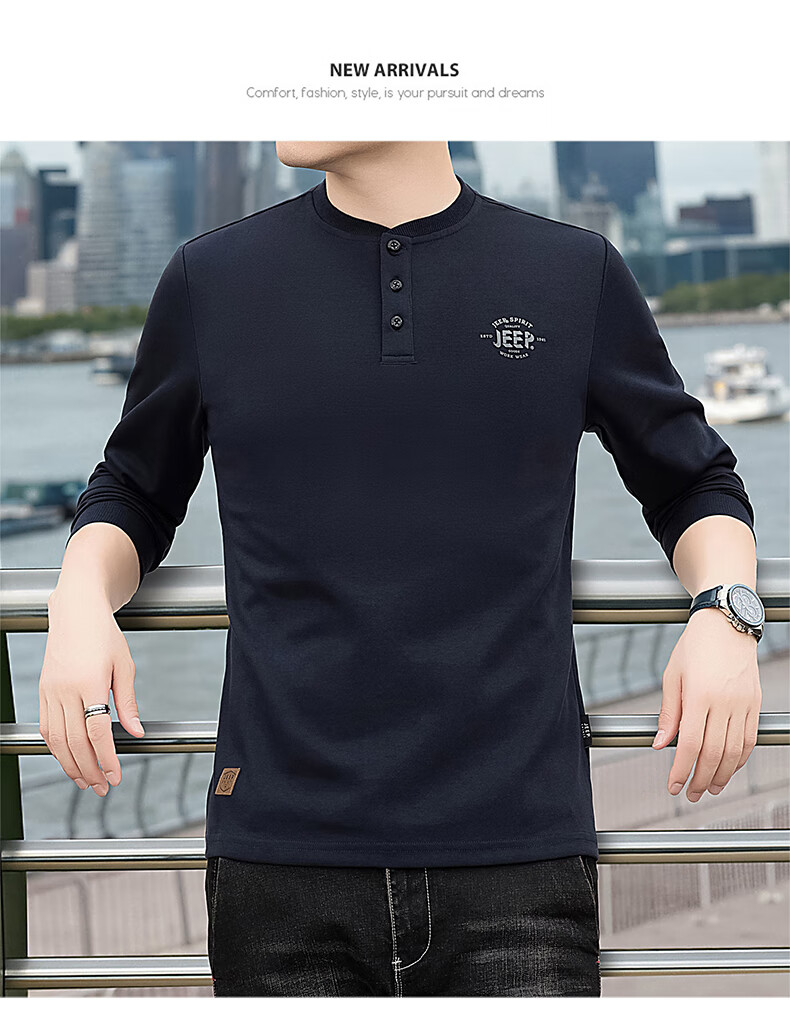 JEEP SPIRIT cotton long-sleeved T-shirt men's spring and autumn versatile casual loose large size T-shirt Henry collar sports sweatshirt trendy black XL (recommended 145-165Jin Jin equals 0.5 kg)