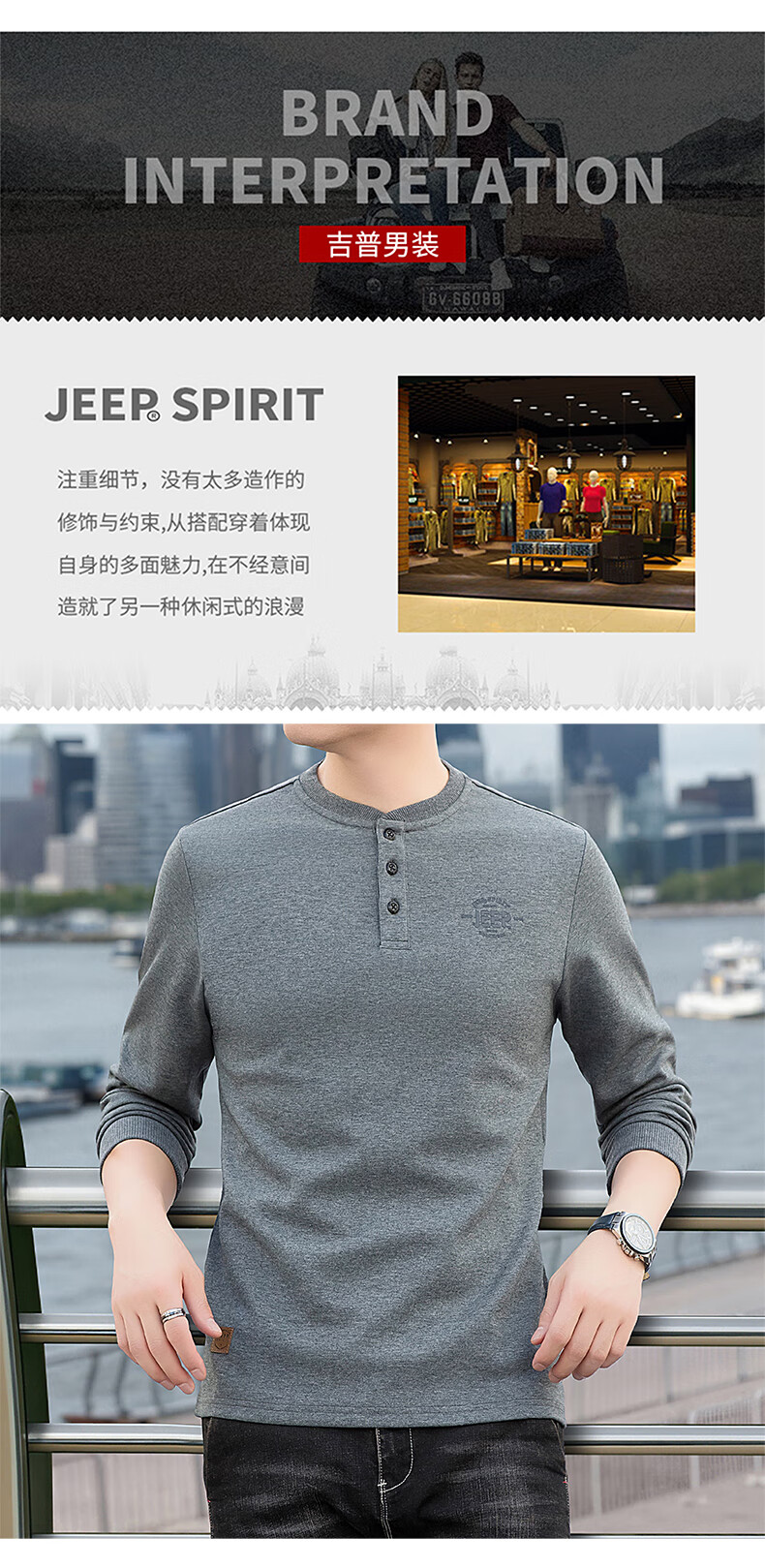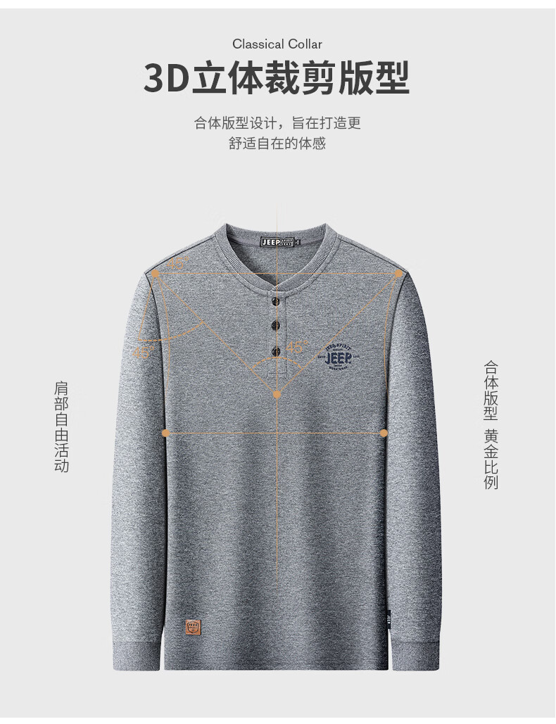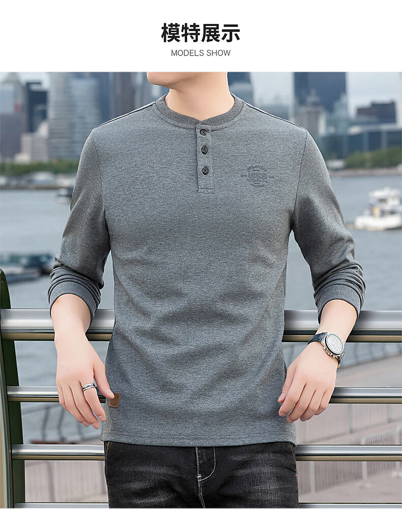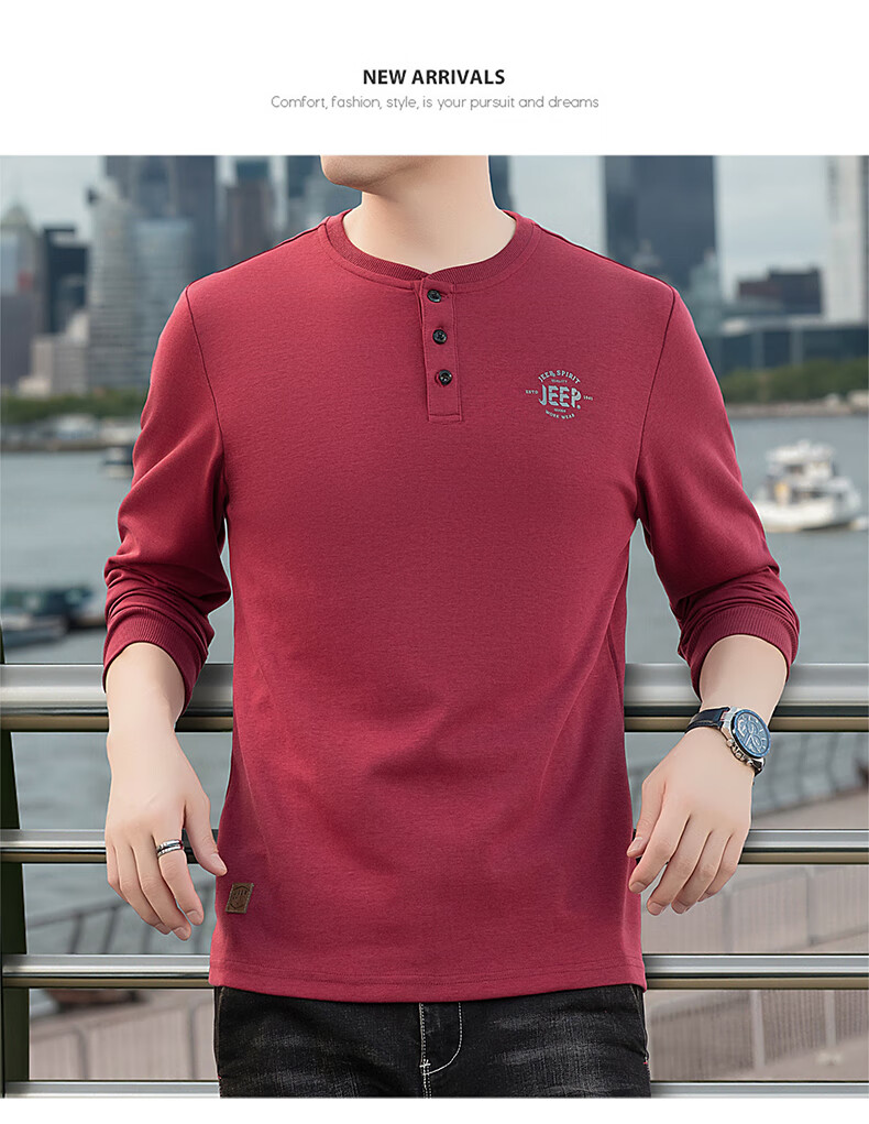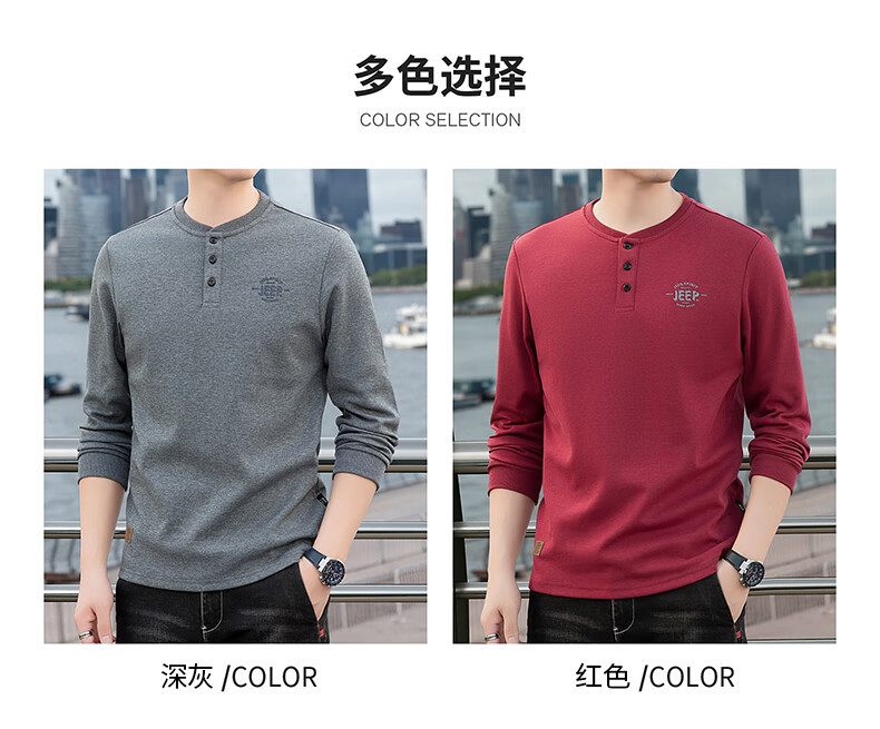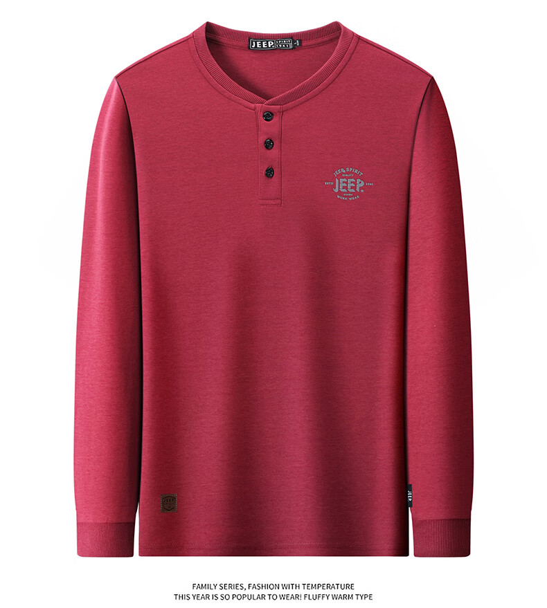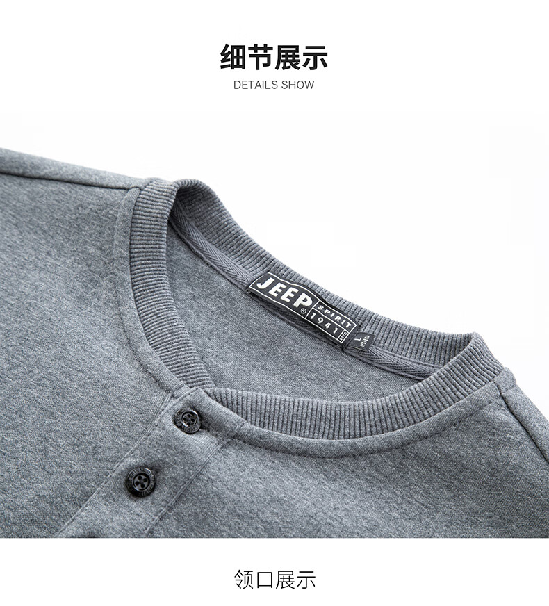 JEEP SPIRIT cotton long-sleeved T-shirt men's spring and autumn versatile casual loose large size T-shirt Henry collar sports sweatshirt trendy black XL (recommended 145-165Jin Jin equals 0.5 kg)