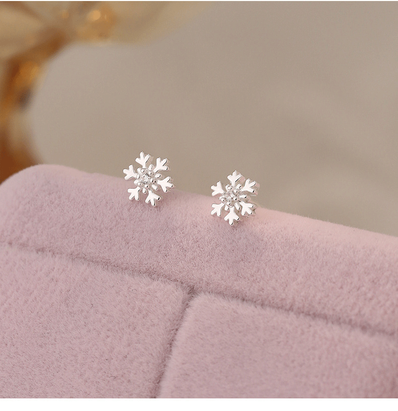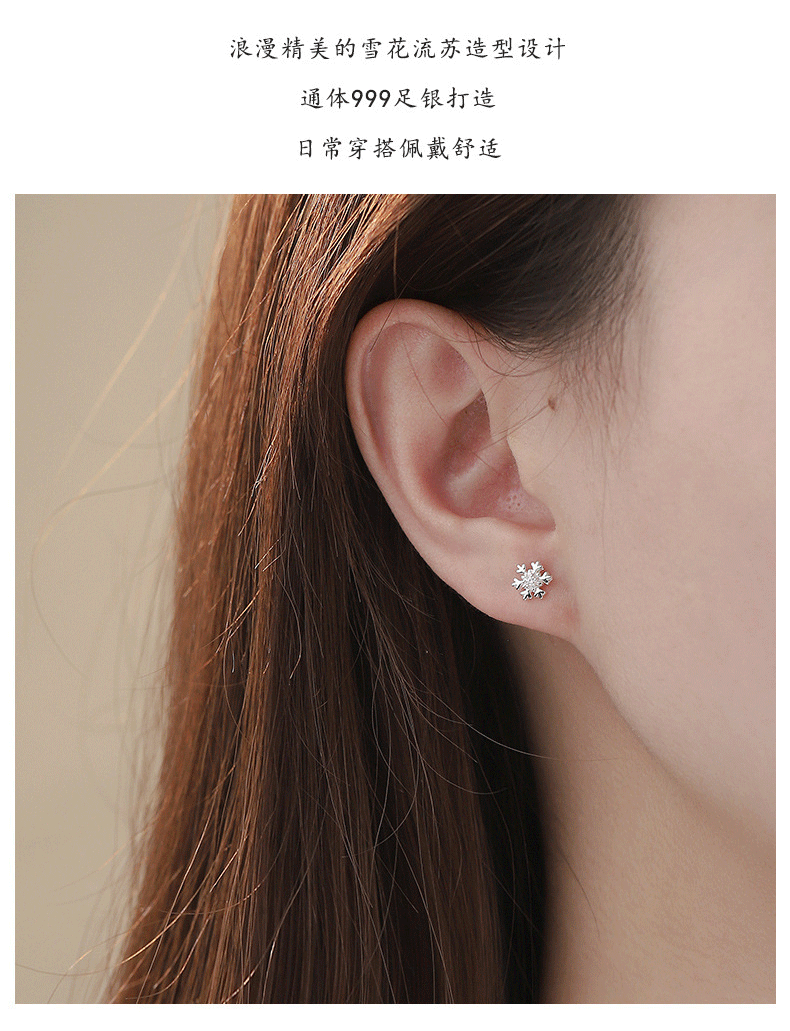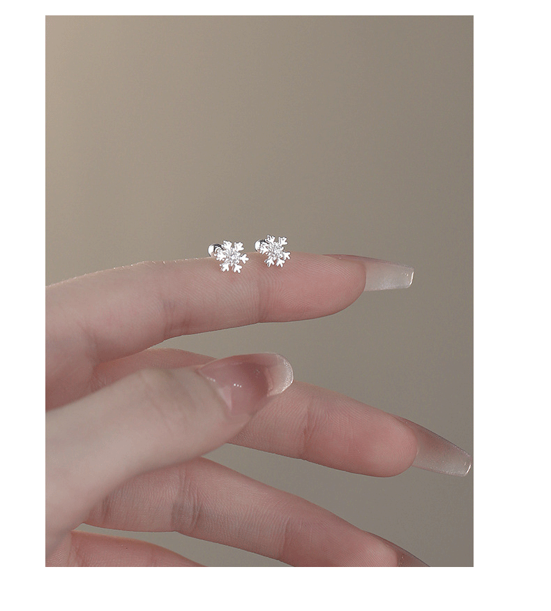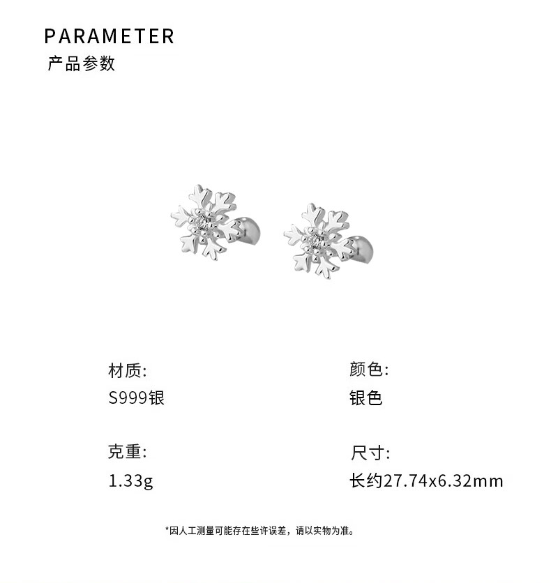 Lao Temple Tremella Earrings Pure Silver Snowflake Straight Pin Screw Earrings Pure Silver Snowflake Straight Pin Screw Earrings Lao Temple Gift Box