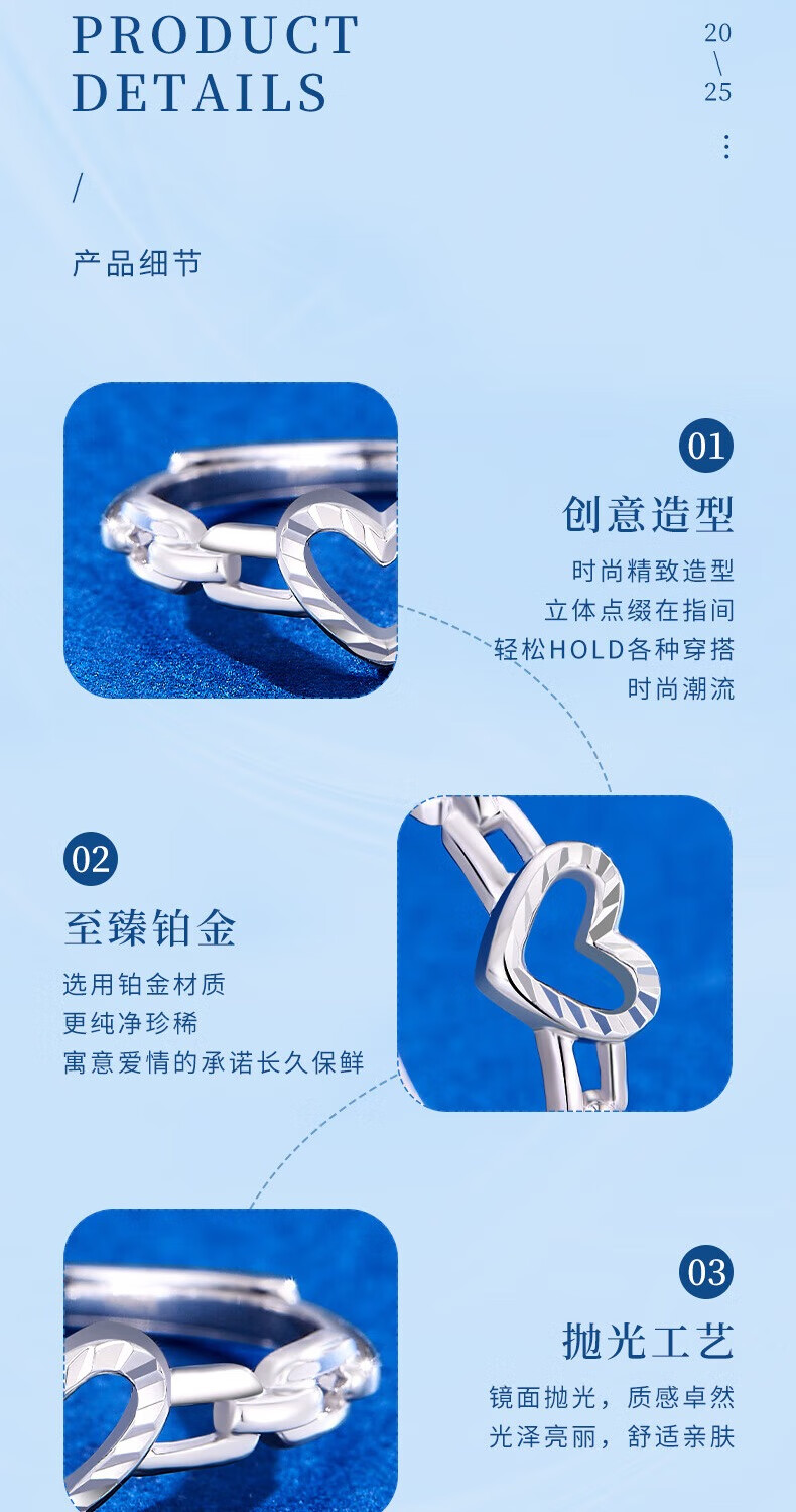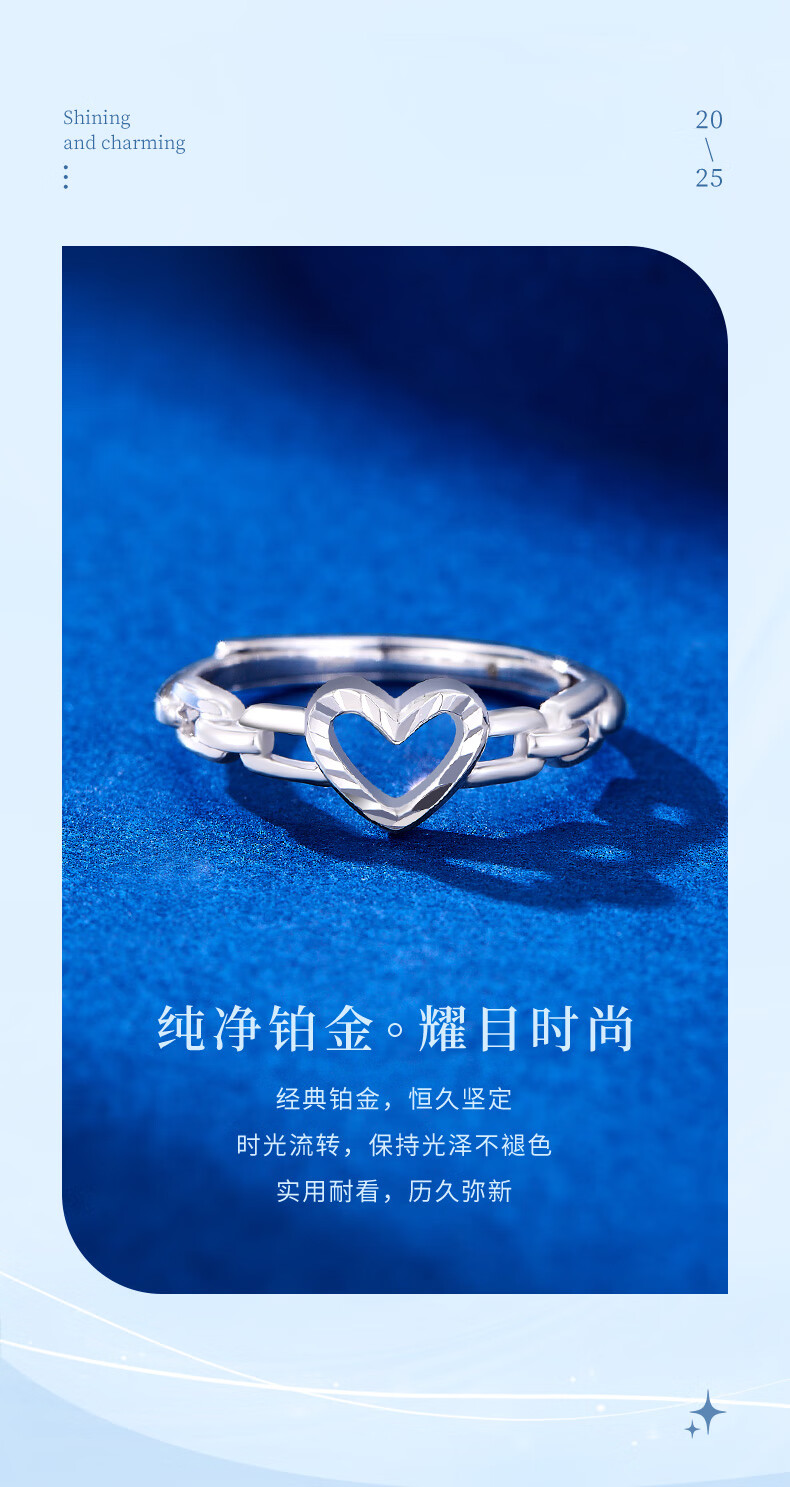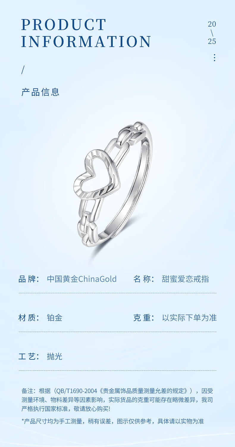CHINA GOLD PT950 Platinum Love Ring Women's Premium Platinum Ring Valentine's Day Birthday Gift for Girlfriend and Wife Platinum Love Ring Approximately 3.1g