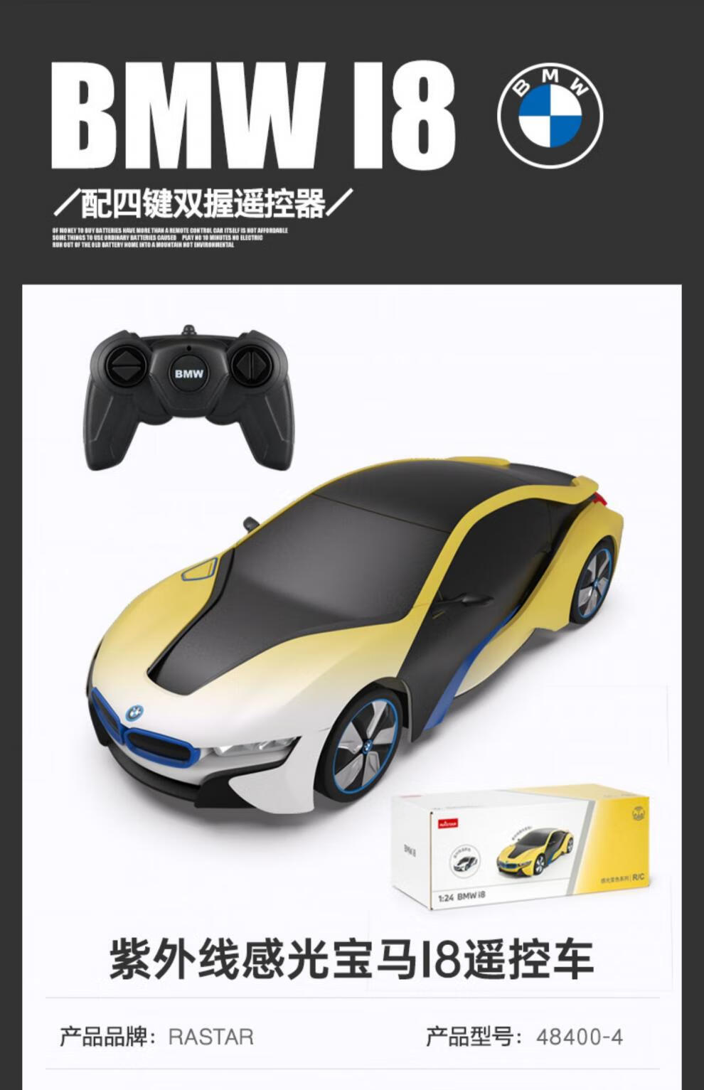 RASTAR Star Beetle remote control car UV photochromic rc sports car toy children's electric car gradient yellow BMW i8 UV photochromic standard