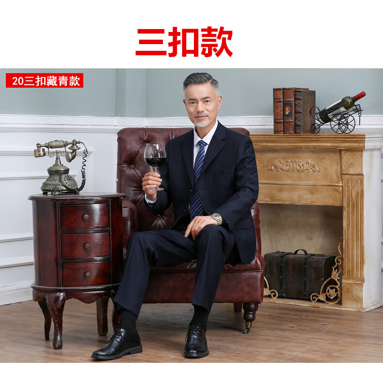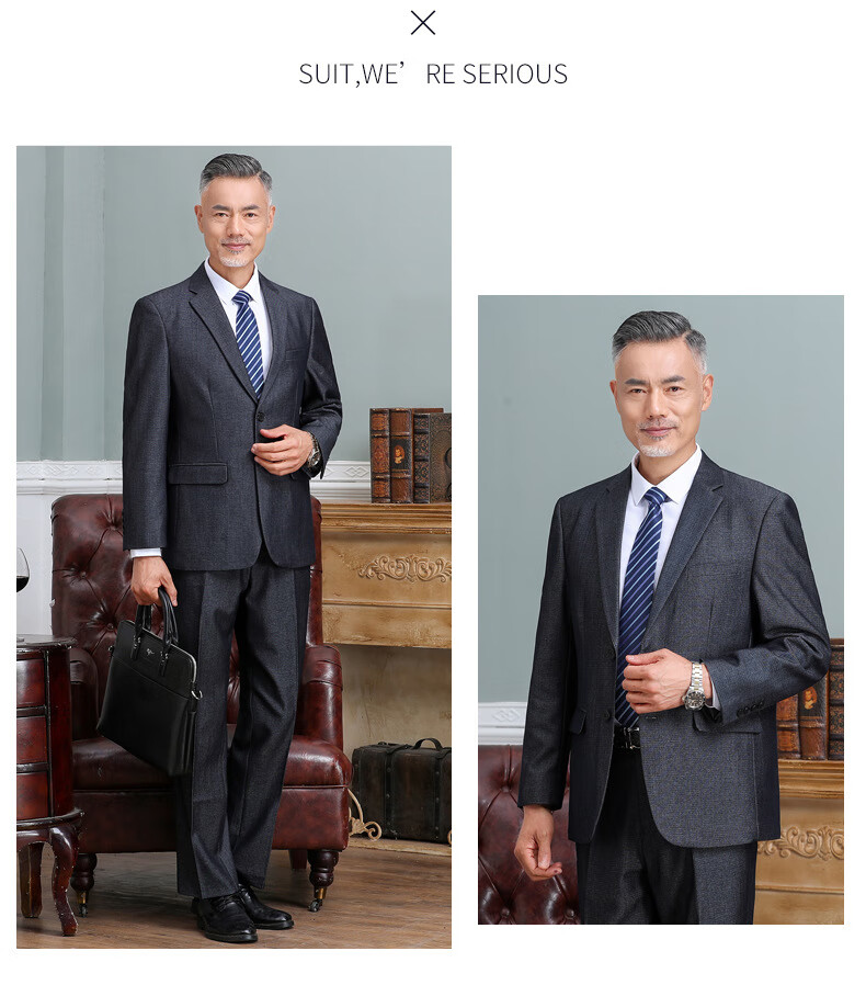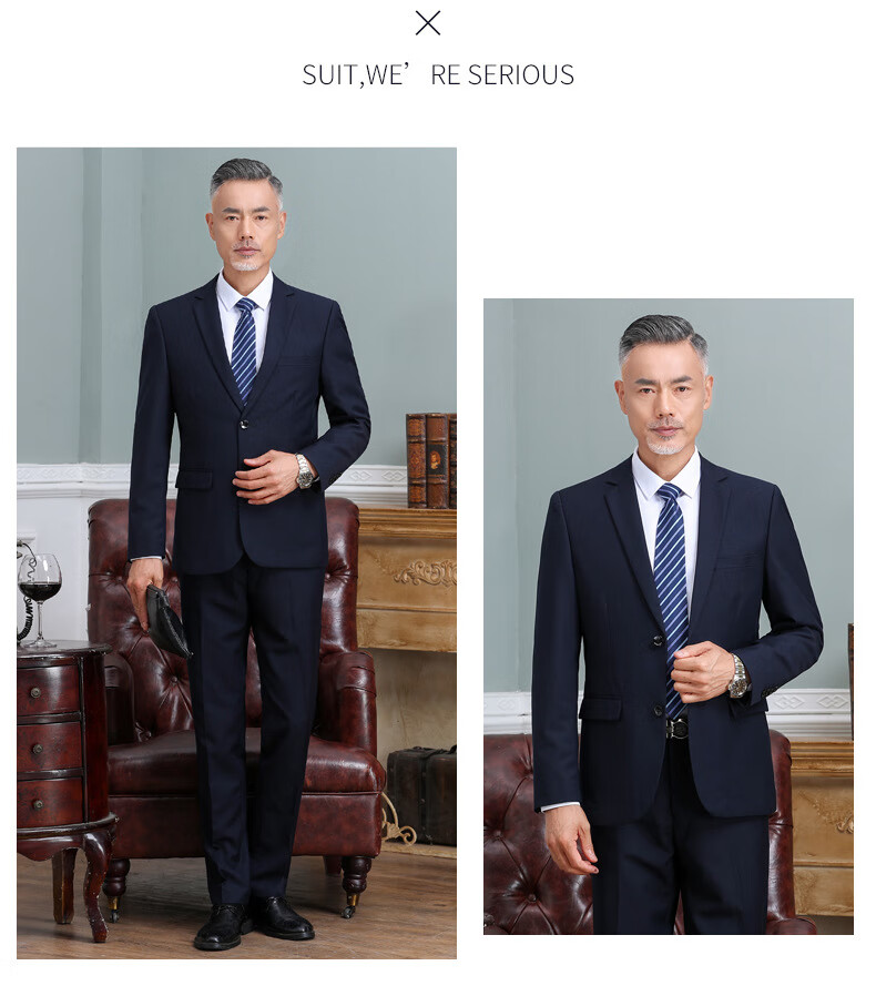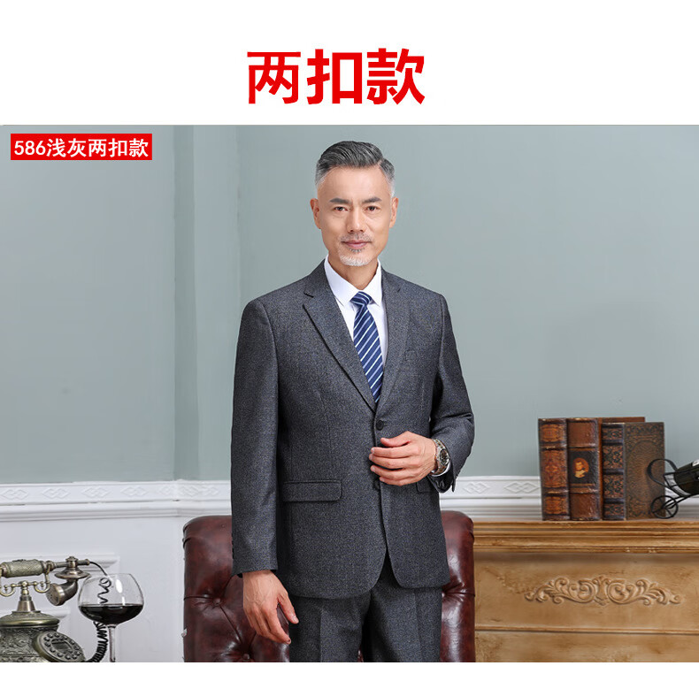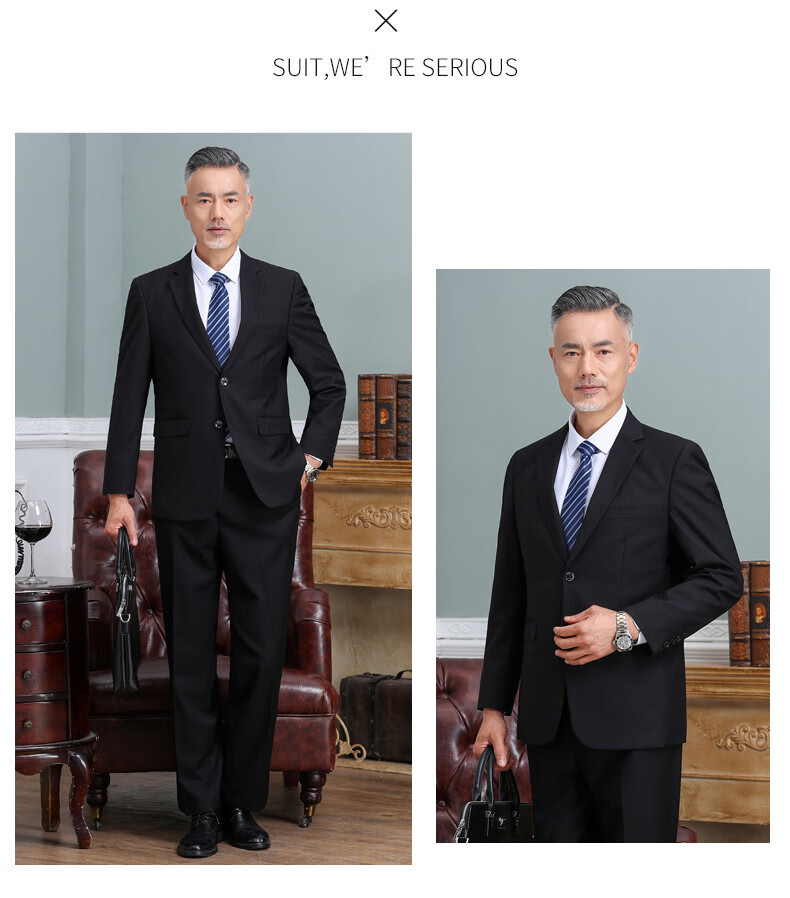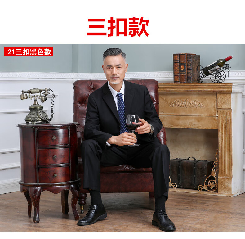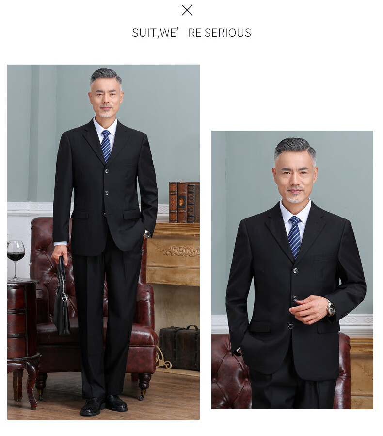 ROMON high-end suit for middle-aged and elderly people, wedding dad, men's formal suit, father-in-law suit, middle-aged and elderly business casual, two-button pure black suit + trousers, free gift pack XL 180, free gift pack