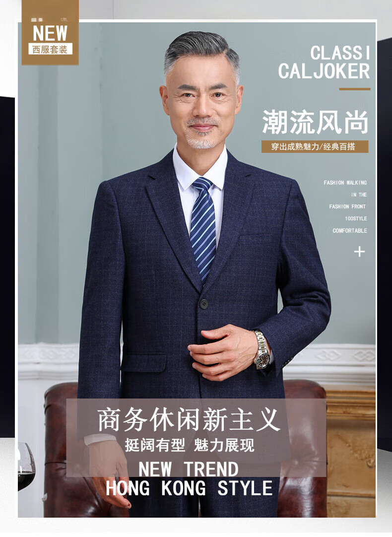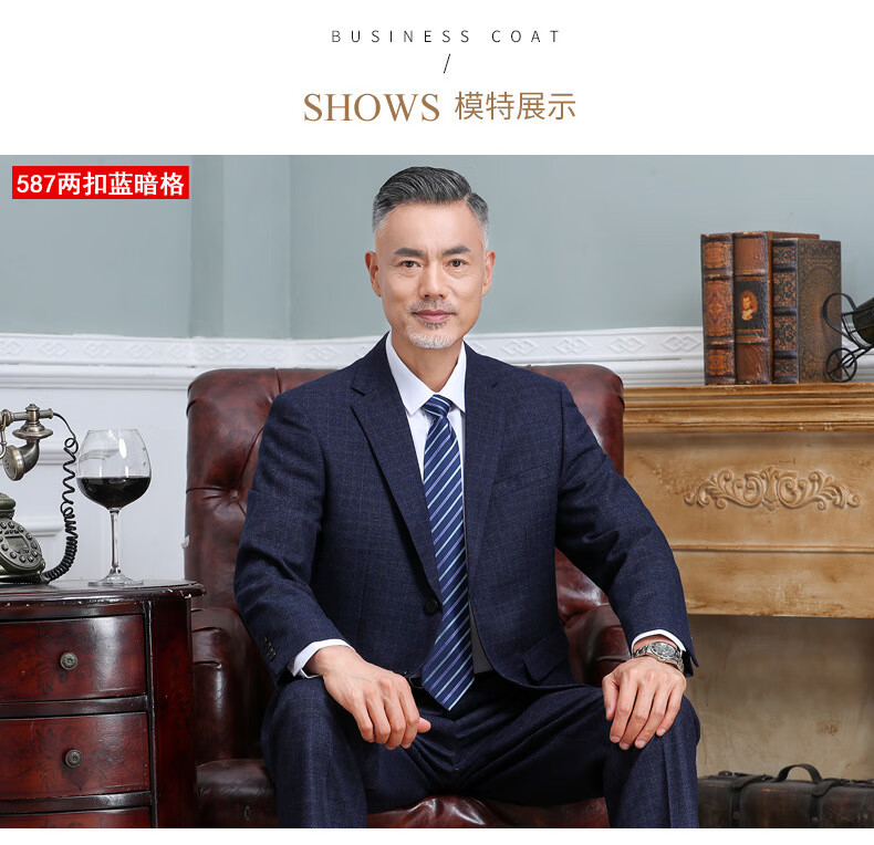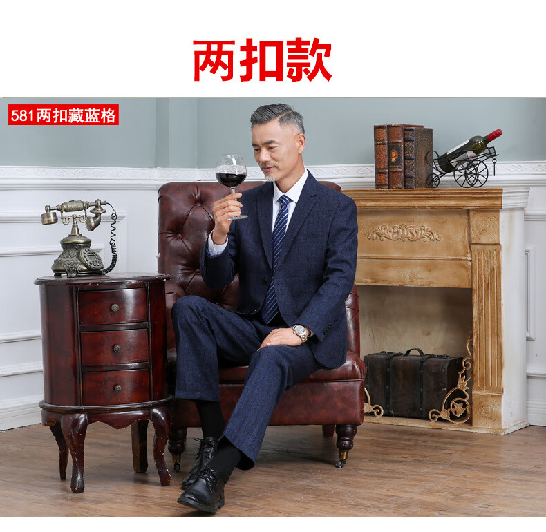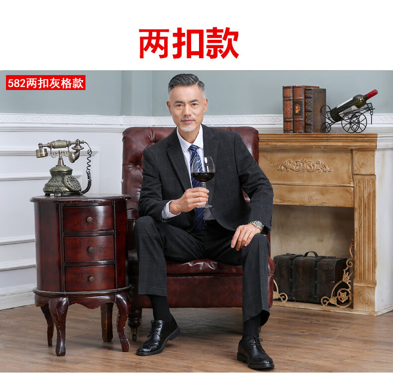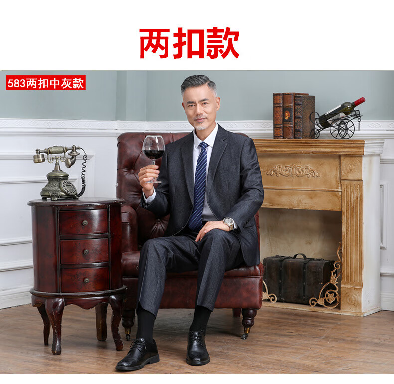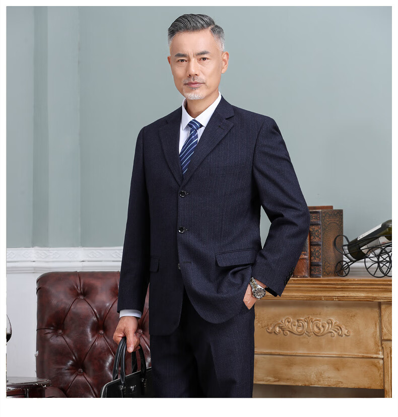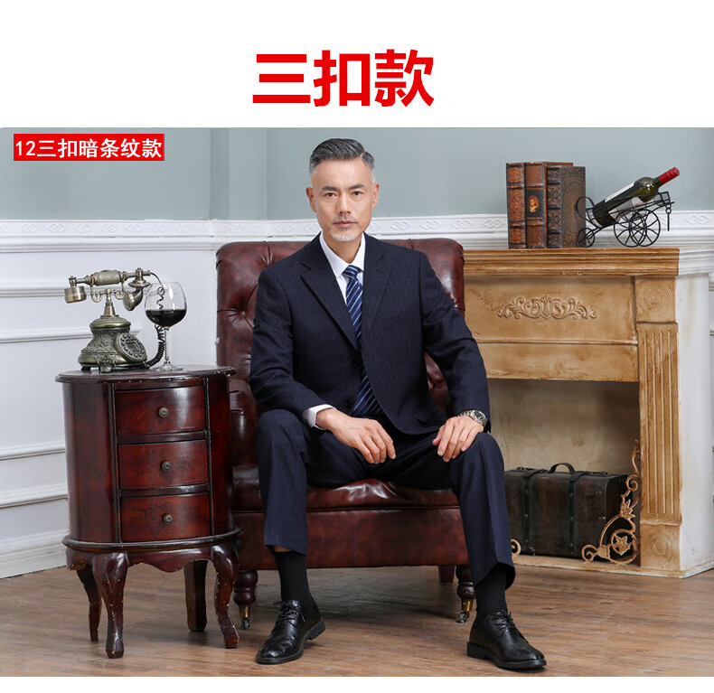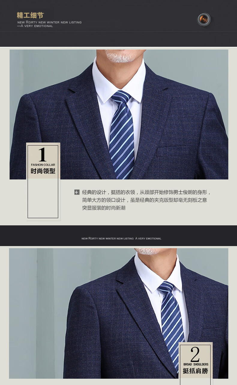 ROMON high-end suit for middle-aged and elderly people, wedding dad, men's formal suit, father-in-law suit, middle-aged and elderly business casual, two-button pure black suit + trousers, free gift pack XL 180, free gift pack