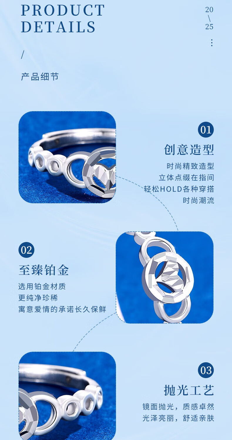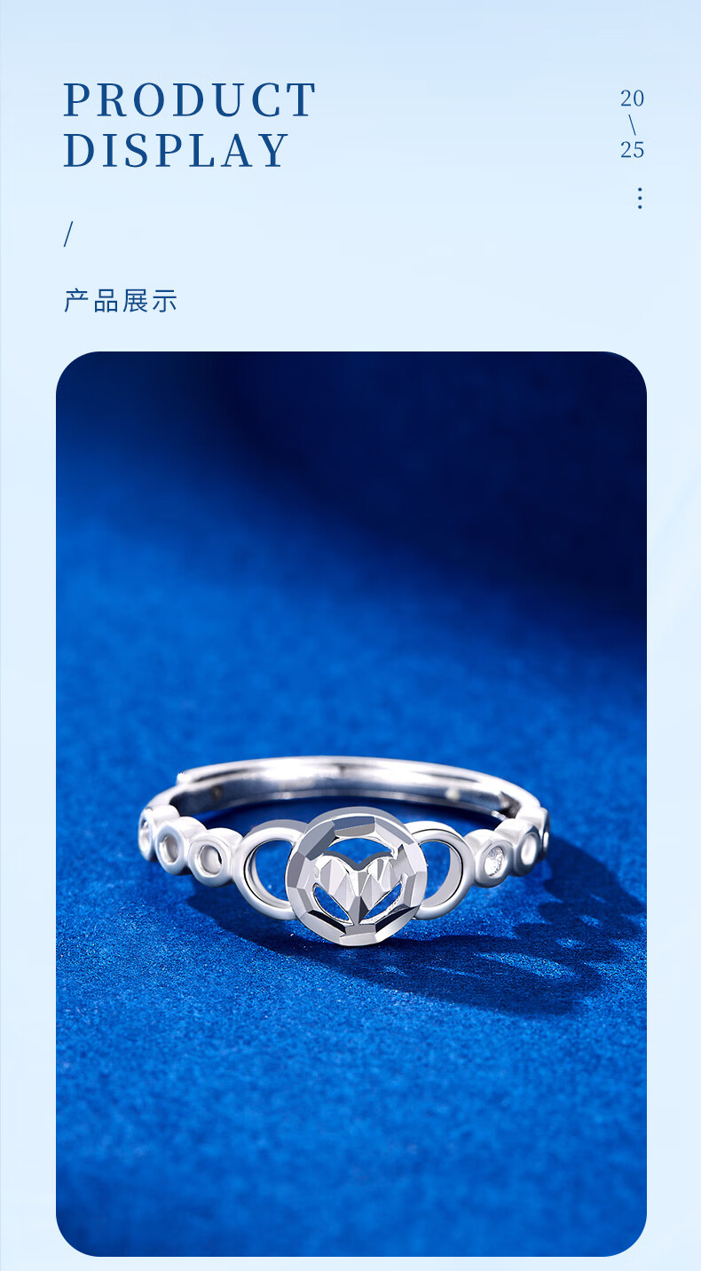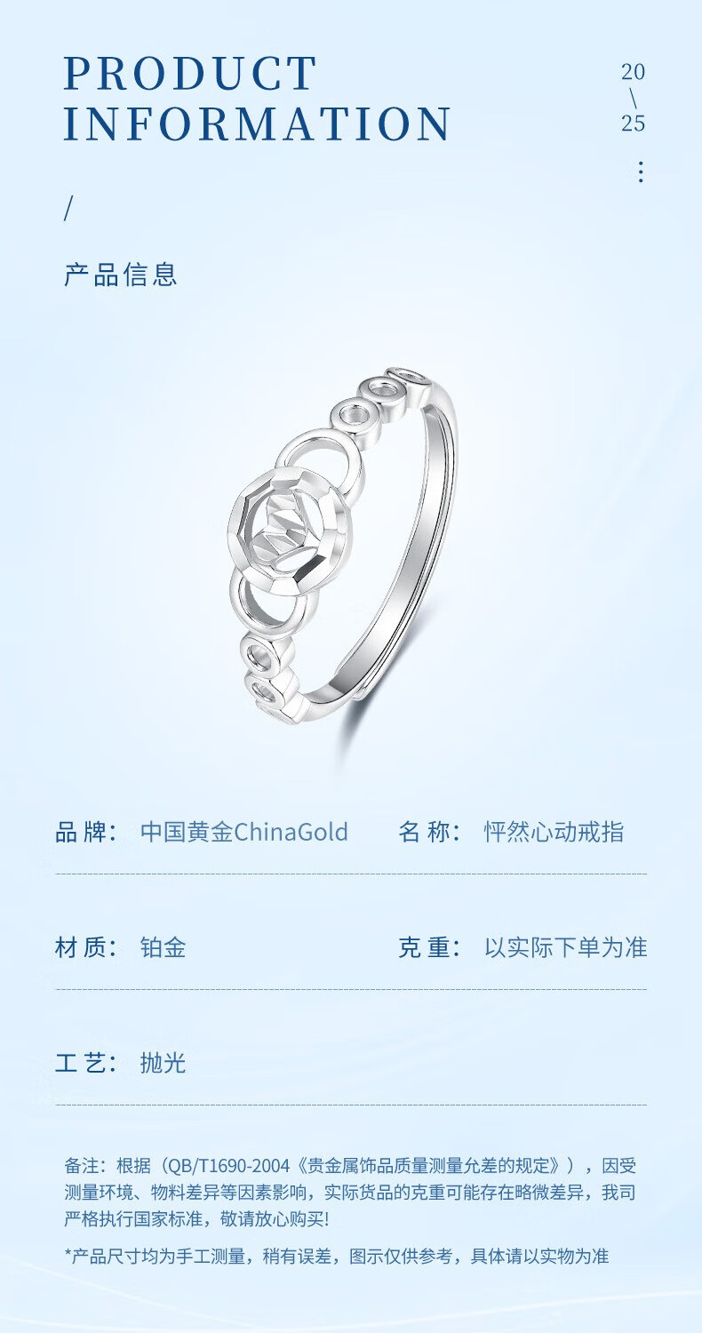 China Gold (CHINA GOLD) PT950 platinum love ring for women, high-end, heart-pounding Valentine's Day birthday gift for girlfriend and wife, platinum love ring, about 2.8g