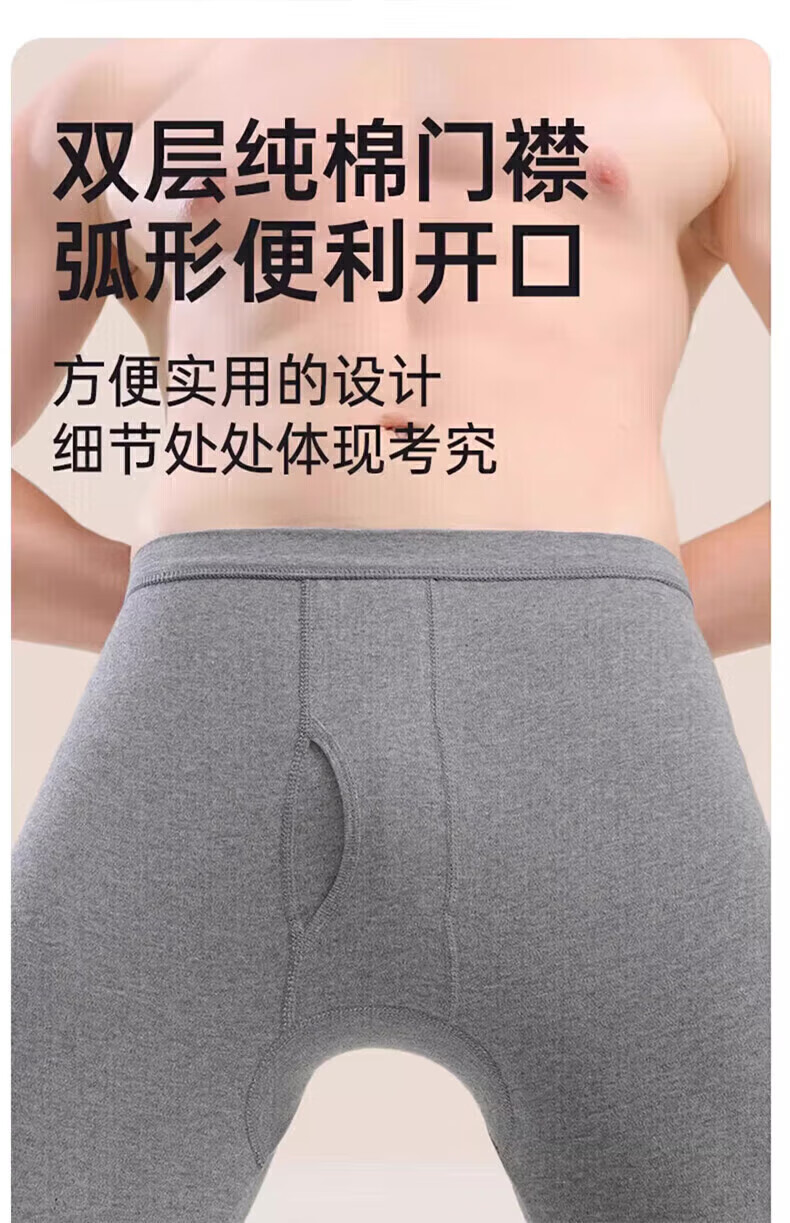 Yalu men's long johns men's pure cotton warm pants thin cotton woolen pants youth leggings underpants dark gray pure cotton 10A grade antibacterial 2XL recommended 120-150Jin Jin equals 0.5 kg