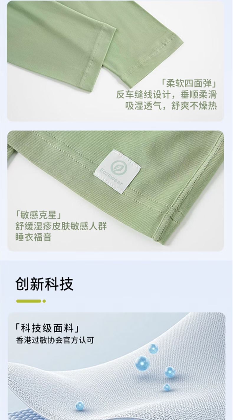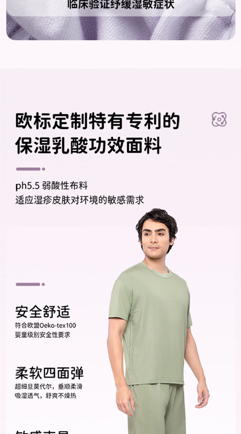 Eczewear eczema clothing mall same style men's round neck short-sleeved T-shirt shorts men's home wear antibacterial grade moisture-sensitive soothing blue short-sleeved 175 (M)