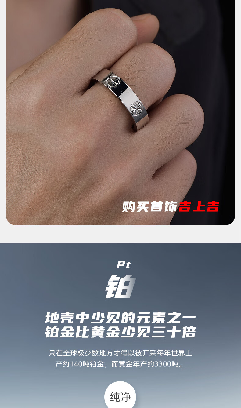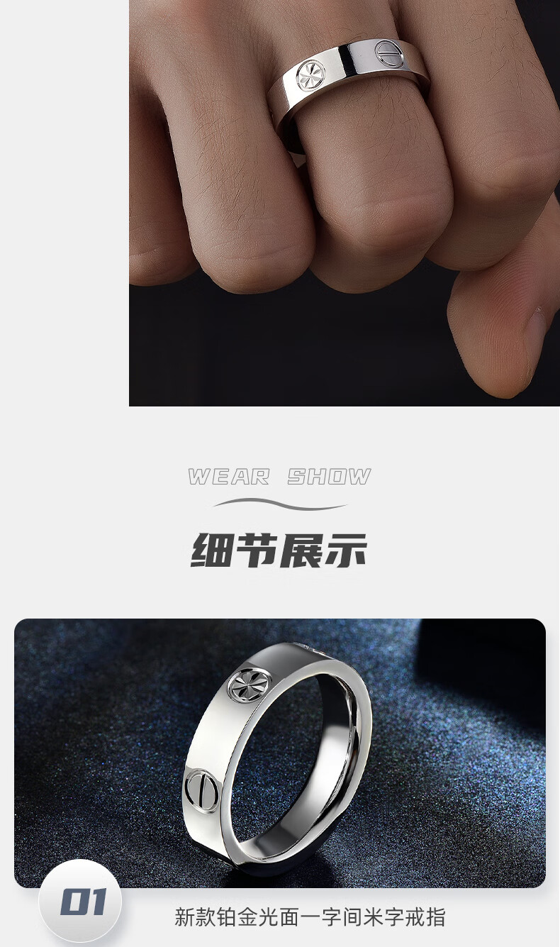 GsunG platinum men's glossy ring PT950 pure platinum one word rice word fashion light Chinese Valentine's Day gift for boyfriend Price by gram Contact before bidding