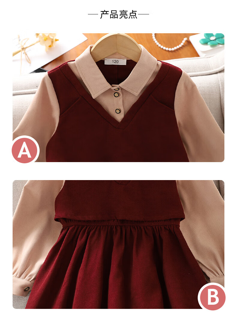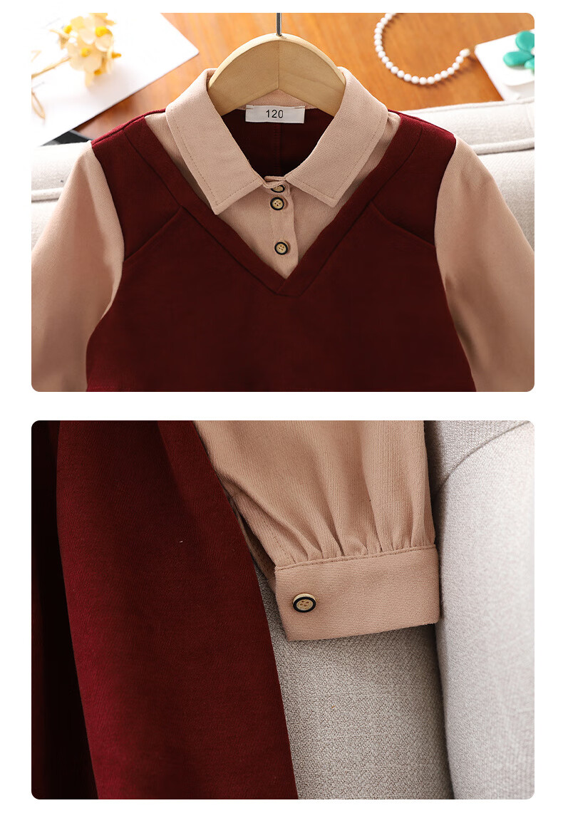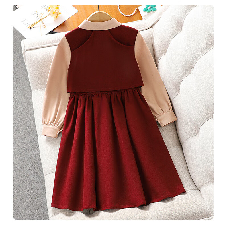 Girls' dress spring and autumn new fashion fashionable middle-aged and older children's college style skirt little girl fake two-piece princess dress red 140