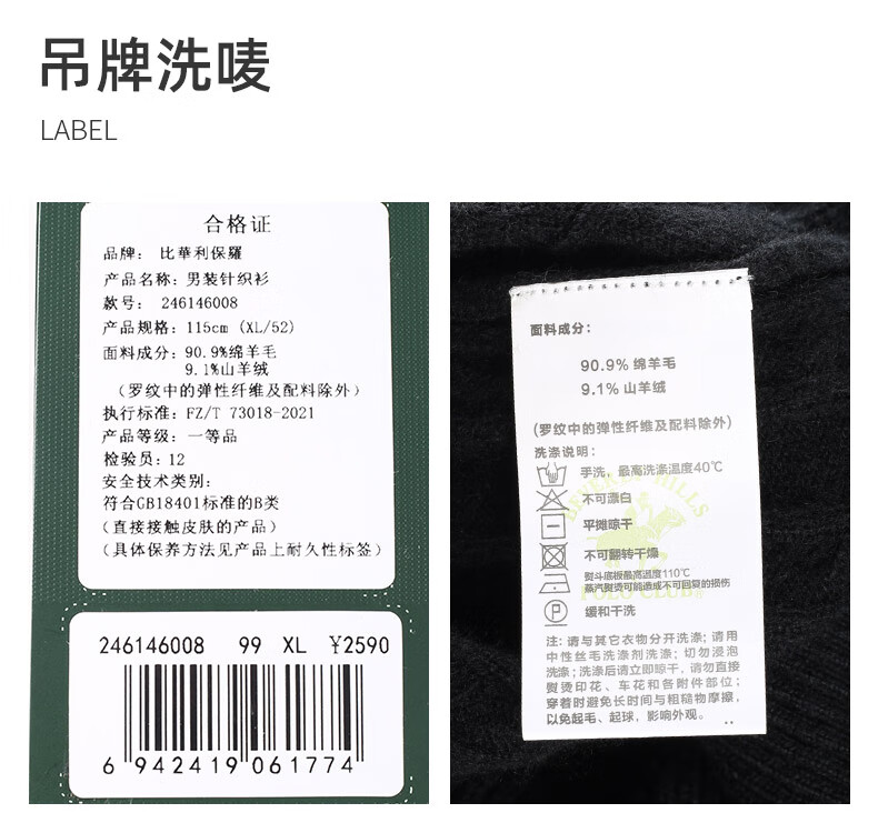 Beverly Paul sheep wool + cashmere autumn and winter new long-sleeved sweater cardigan jacket men's casual business 246146008 black L