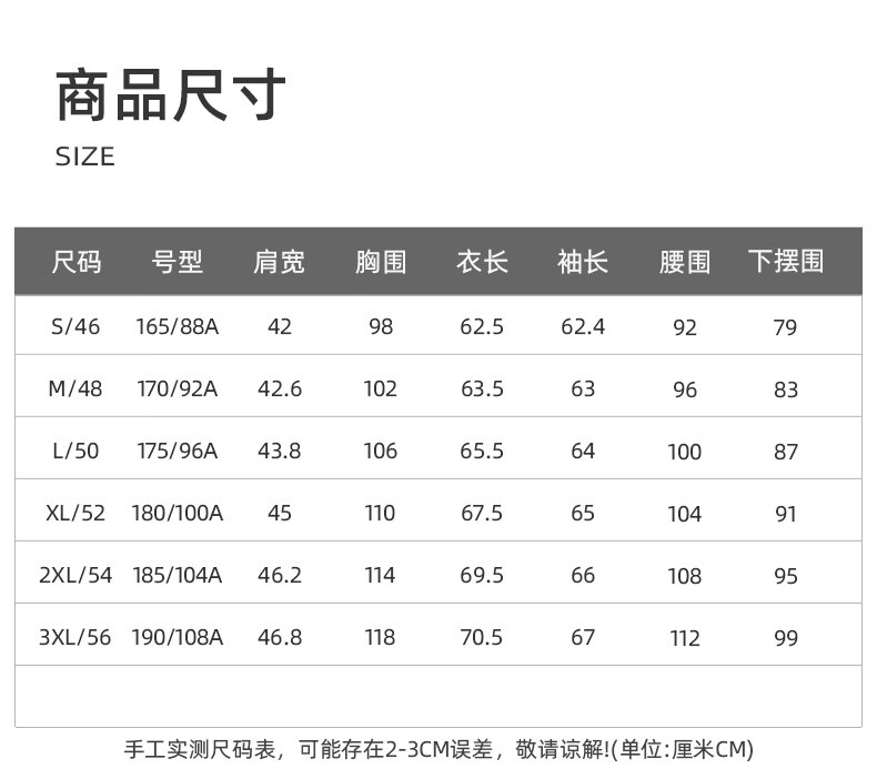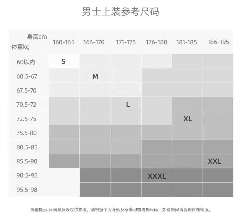 China (cm) 160-165/84-86 165-170 / 88-90 167-172 / 92-96 168-173 / 98-102 170-176 / 106-110