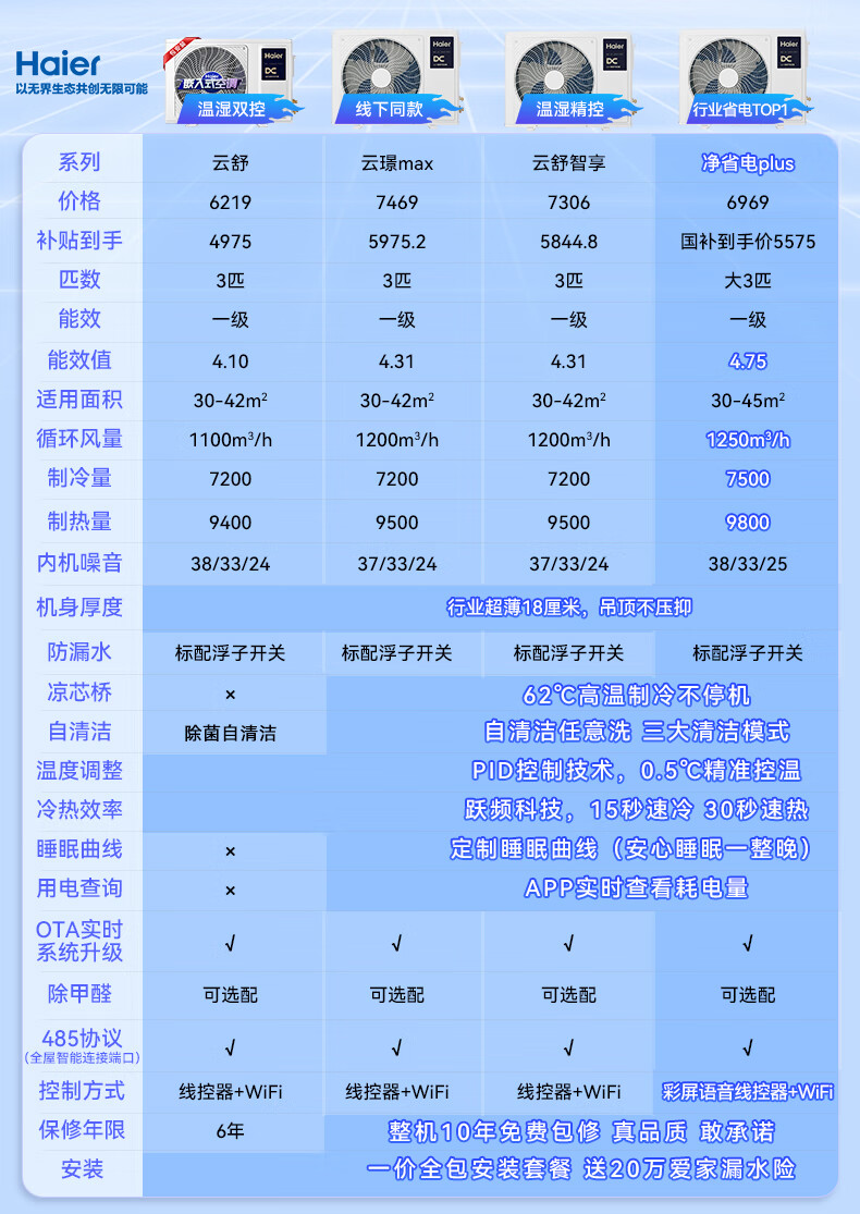 Haier 20% off when placing an order Net power saving Plus large 3 HP duct machine one-to-one 3p central air conditioner new level energy efficiency Yunjing Pro upgraded full DC inverter living room large 3 HP first level energy efficiency net power saving plus flagship energy saving new product