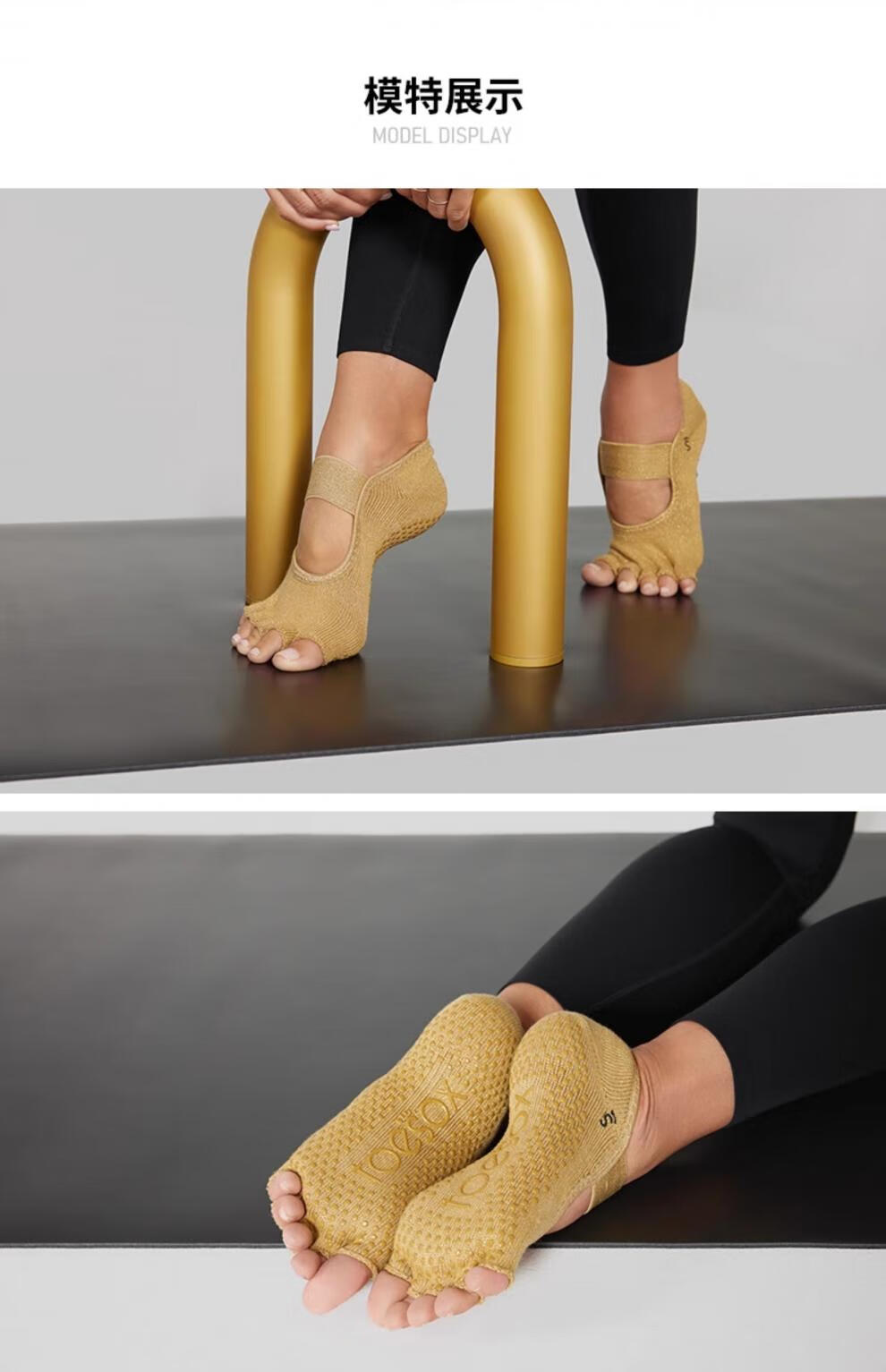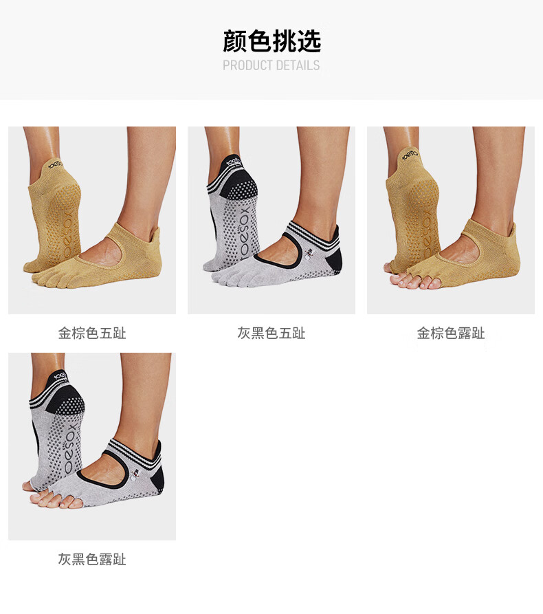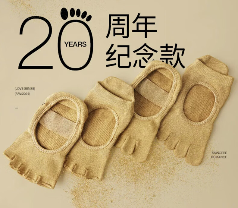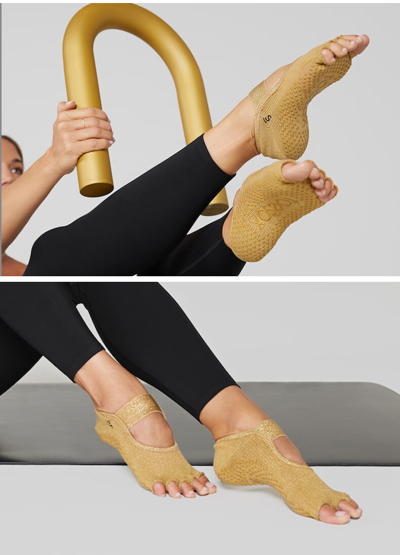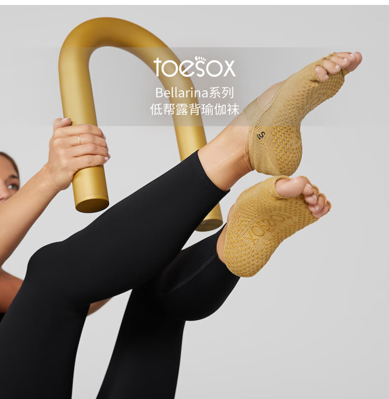 Toesox new yoga socks non-slip wear-resistant five-finger socks indoor Pilates socks 2025 Bellarina commemorative model golden brown full toe S size (34-38)