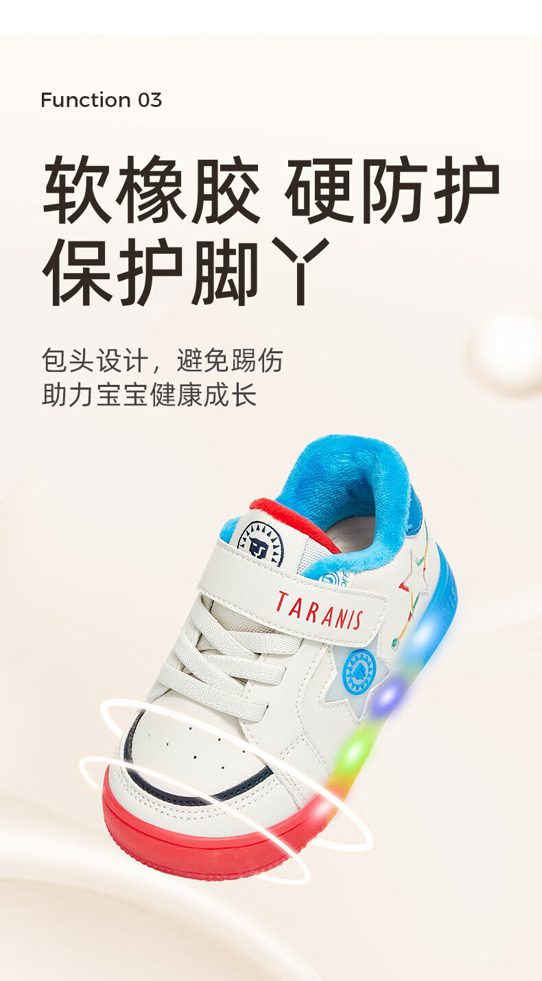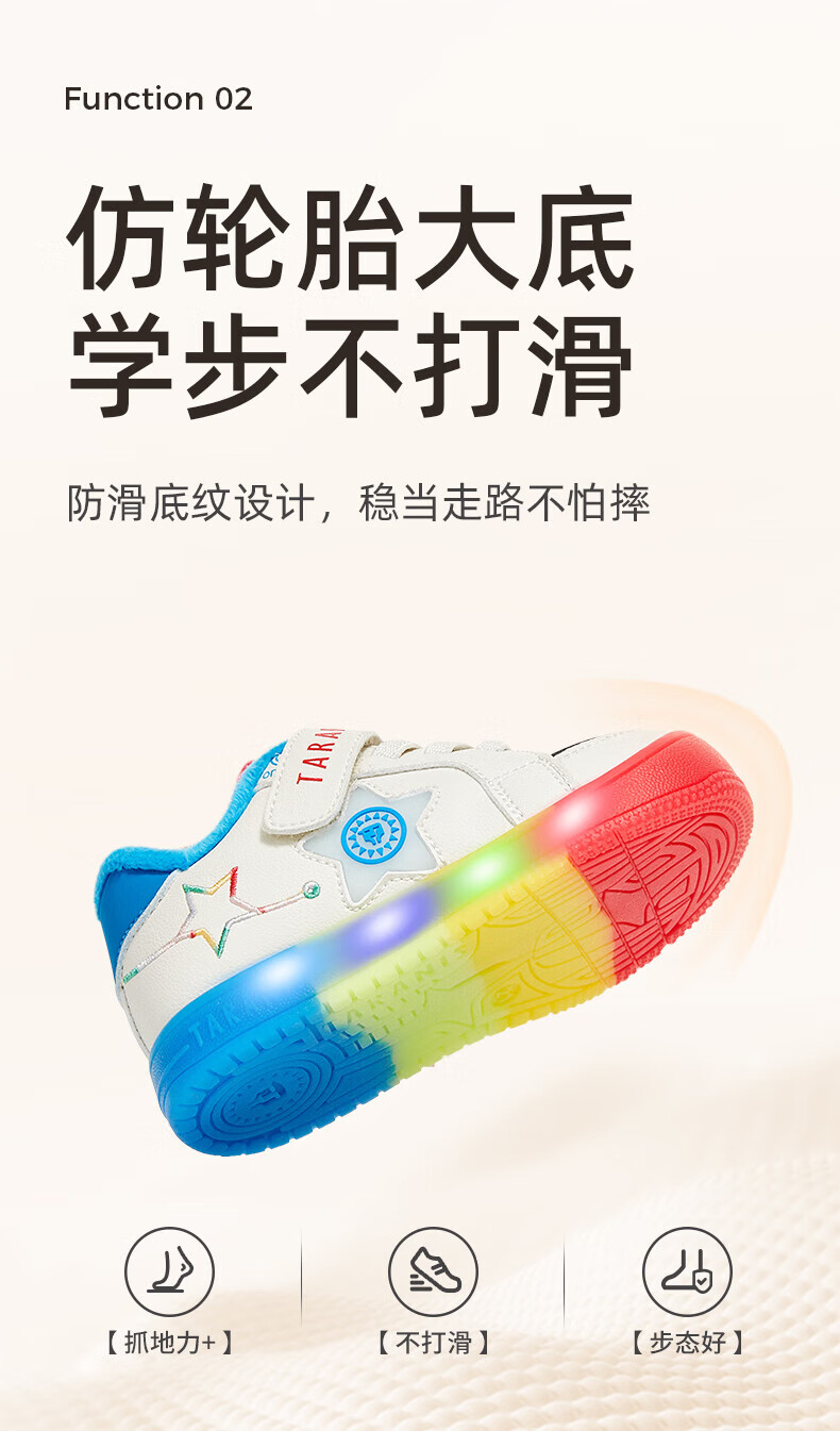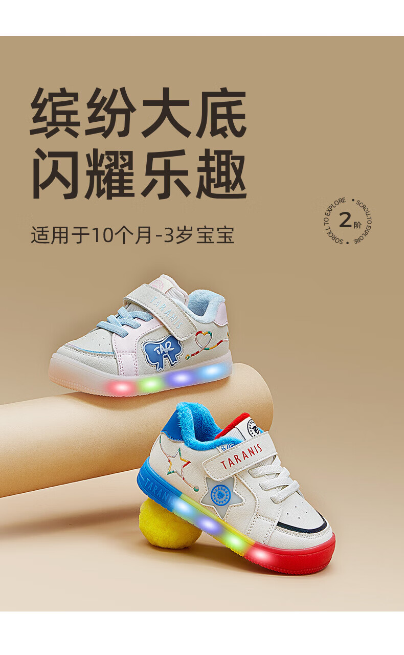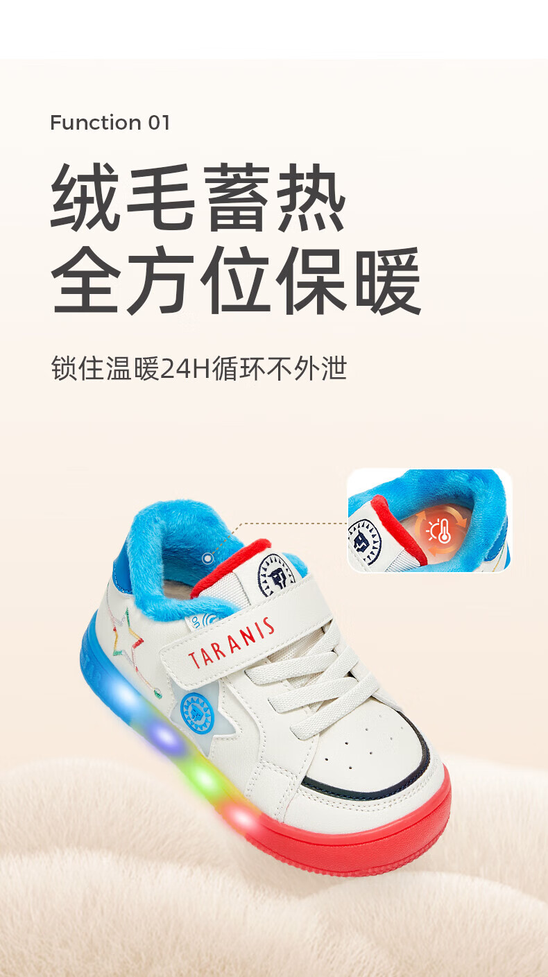 Tyranis winter new flashing shoes baby toddler shoes warm boys functional shoes plus velvet girls luminous shoes white/blue 25 inner length 16cm suitable for feet 14.3~14.7