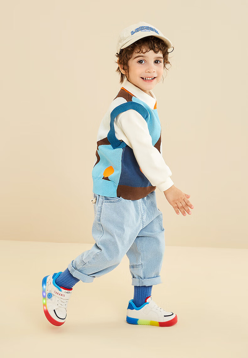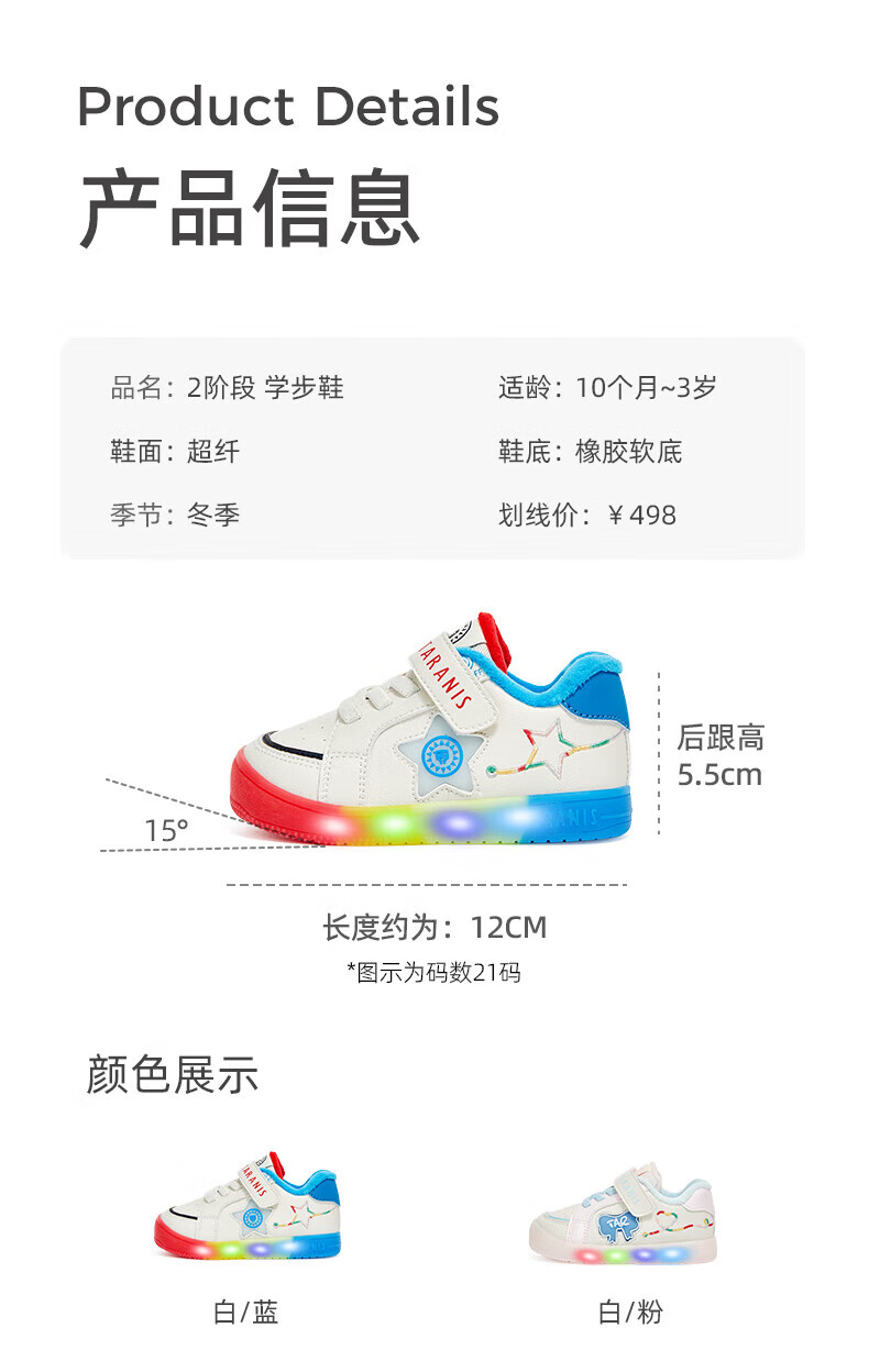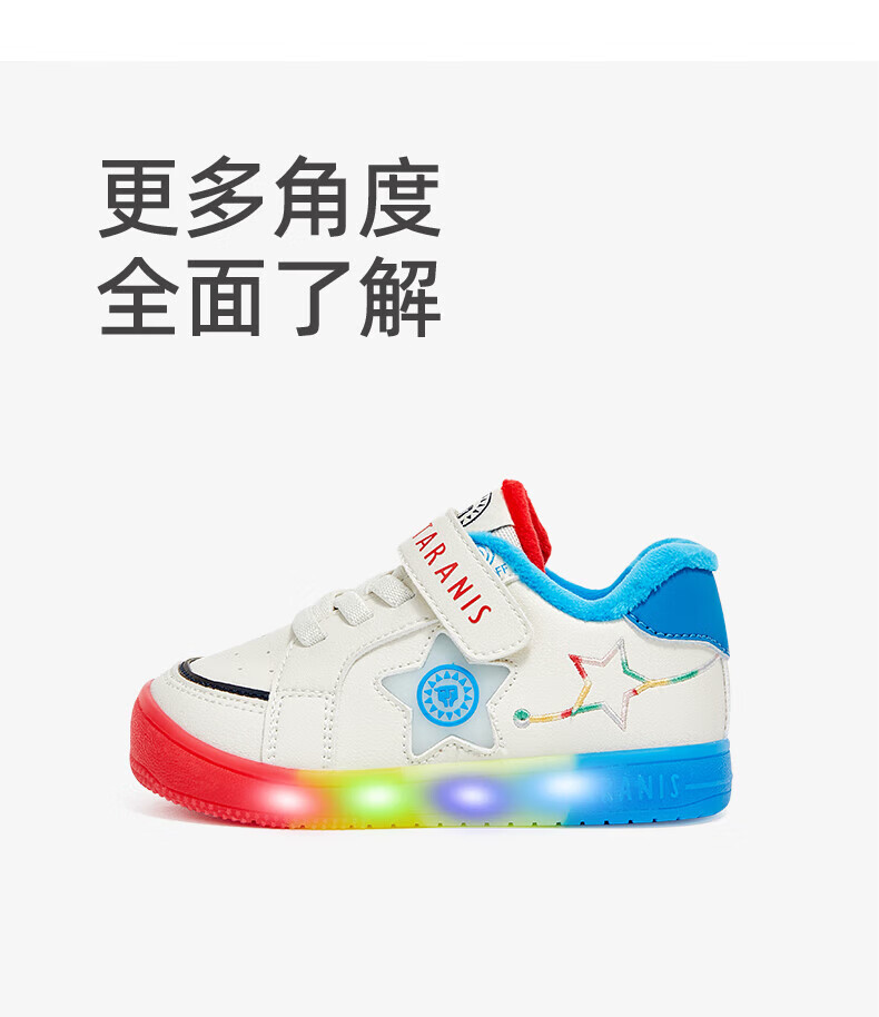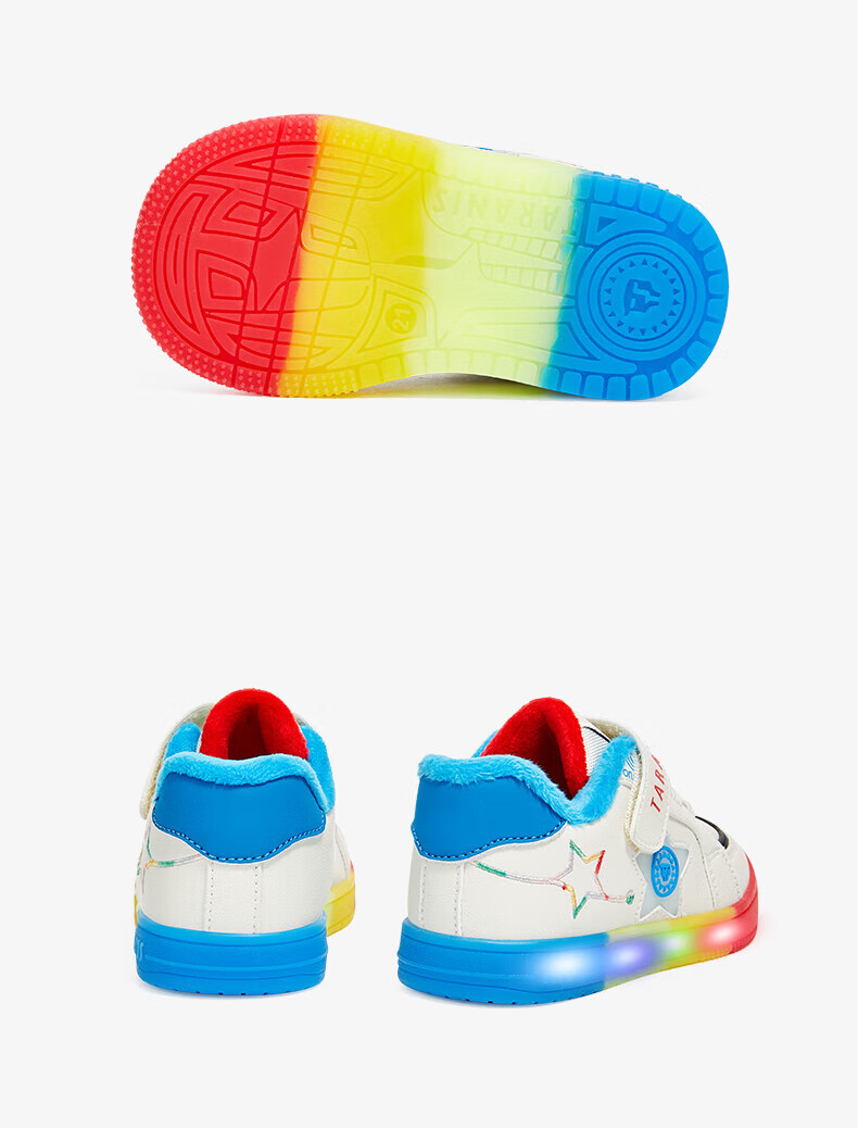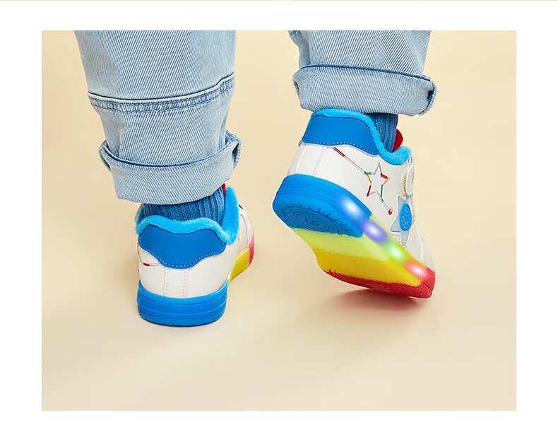 Tyranis winter new flashing shoes baby toddler shoes warm boys functional shoes plus velvet girls luminous shoes white/blue 25 inner length 16cm suitable for feet 14.3~14.7